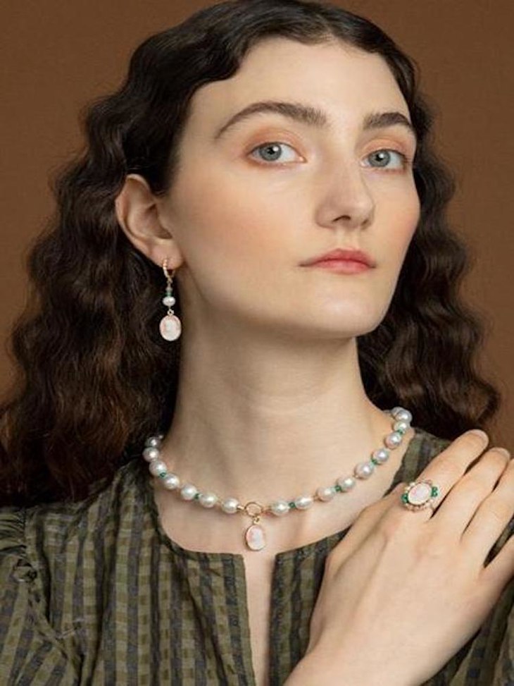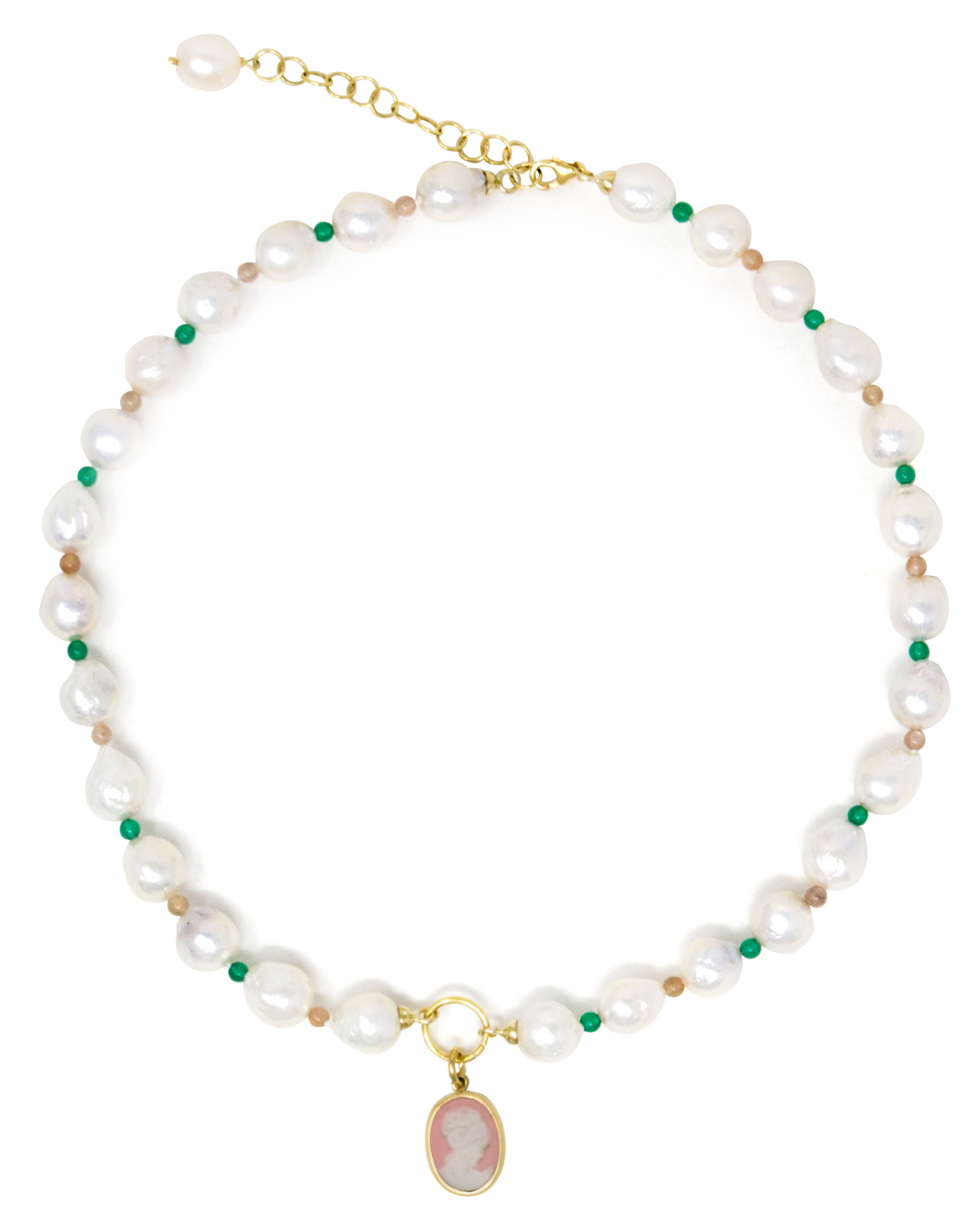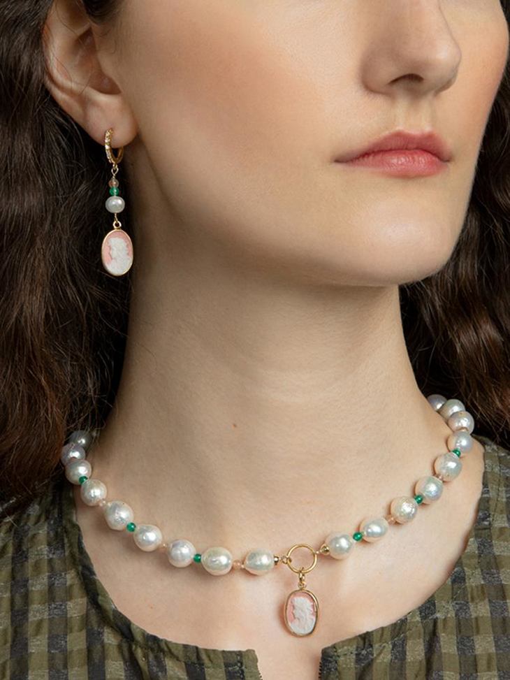 北京仓|Vintouch-Lovelies-粉色美人像 浮雕 串珠项链[意大利设计师]