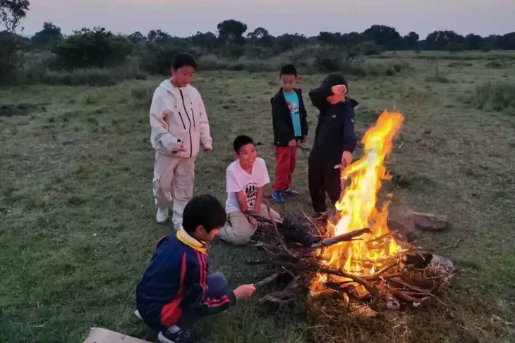 跟当地儿童一起踢足球、抛长矛、围着篝火唱歌跳舞
