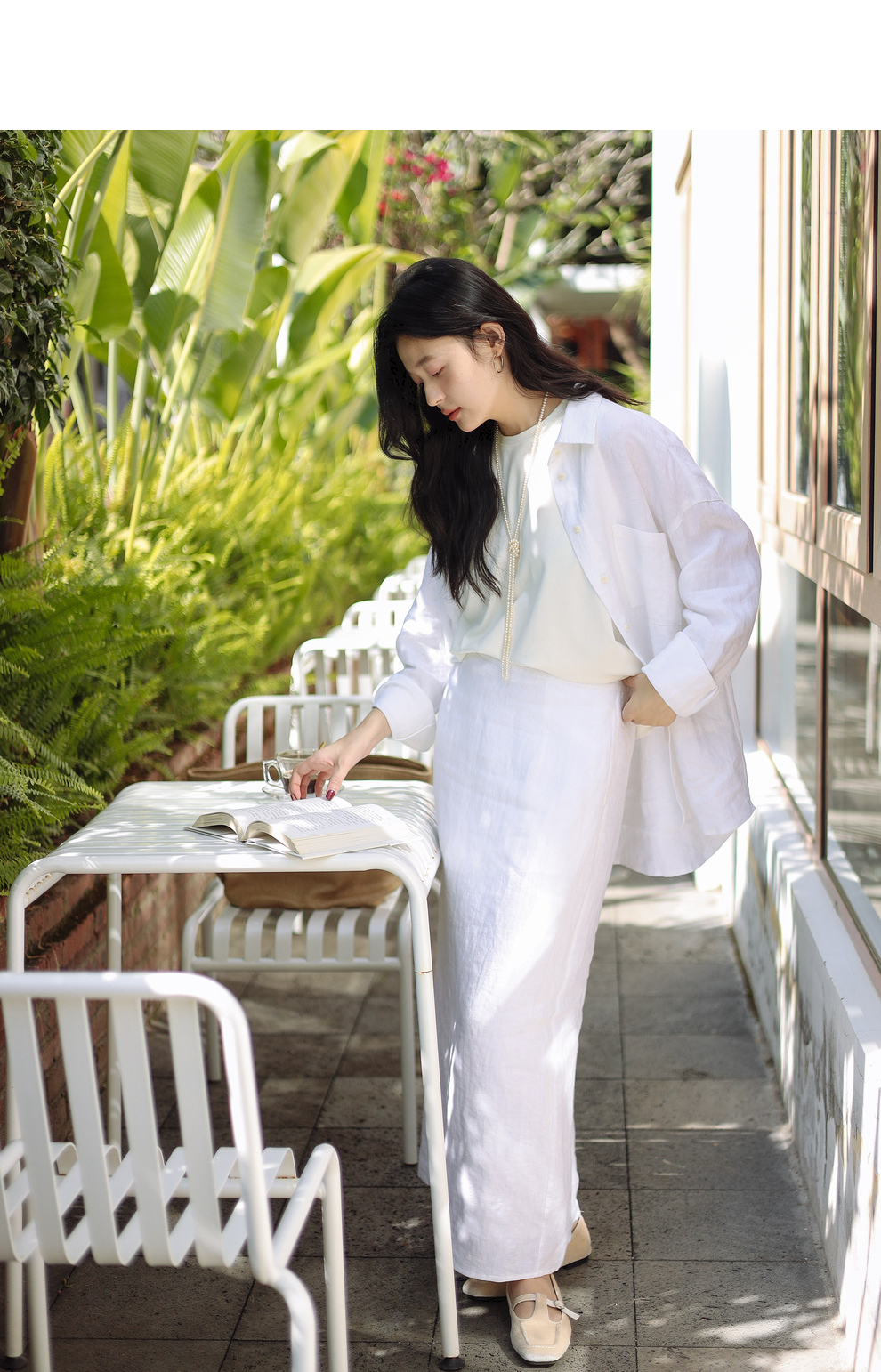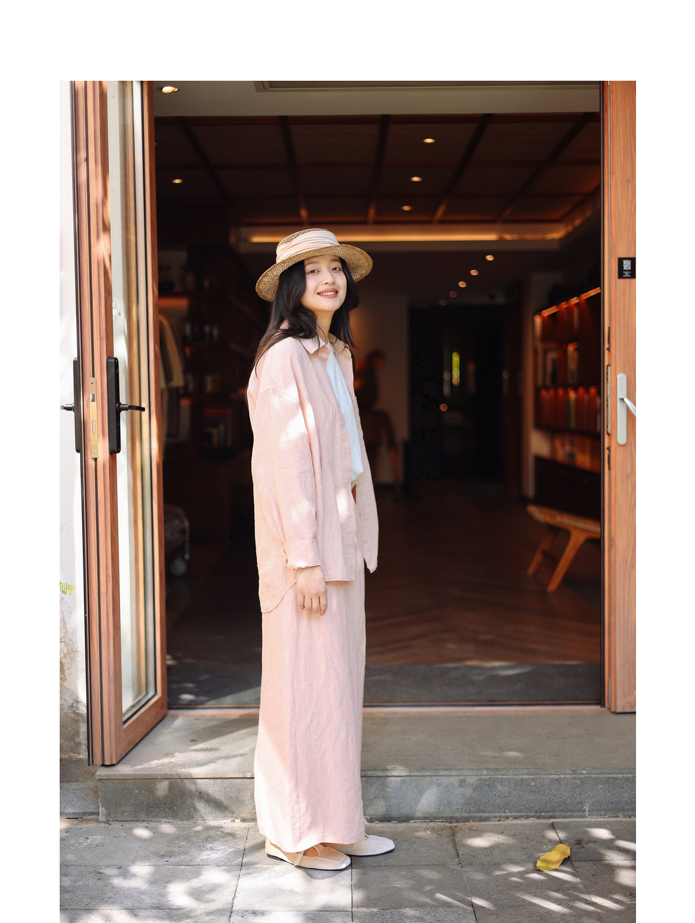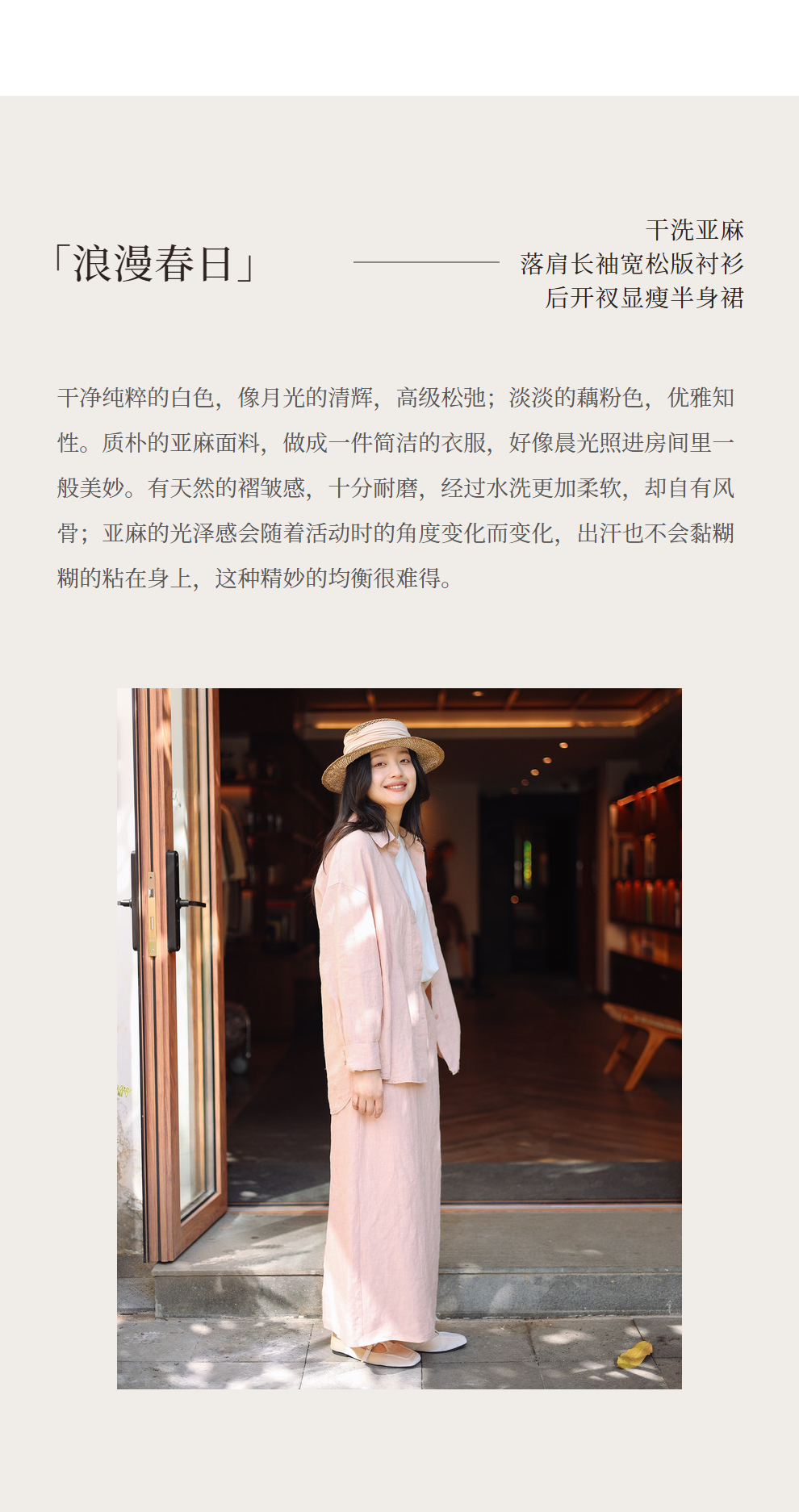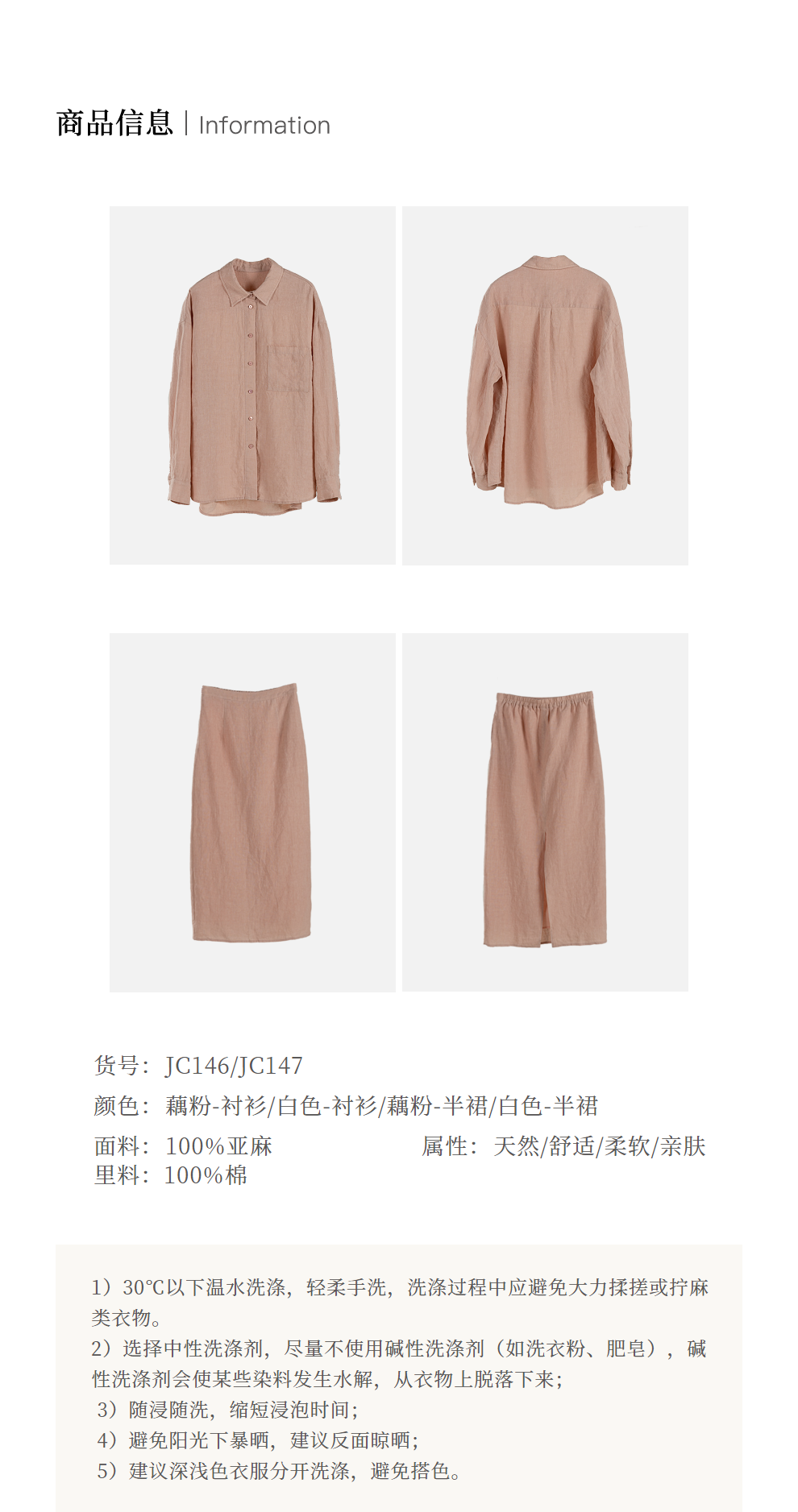 绽放146-147朵/2024春季高级感宽松文艺显瘦棉麻衬衫亚麻半裙套装
