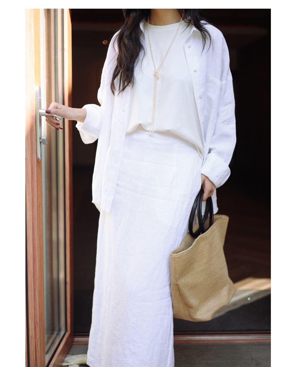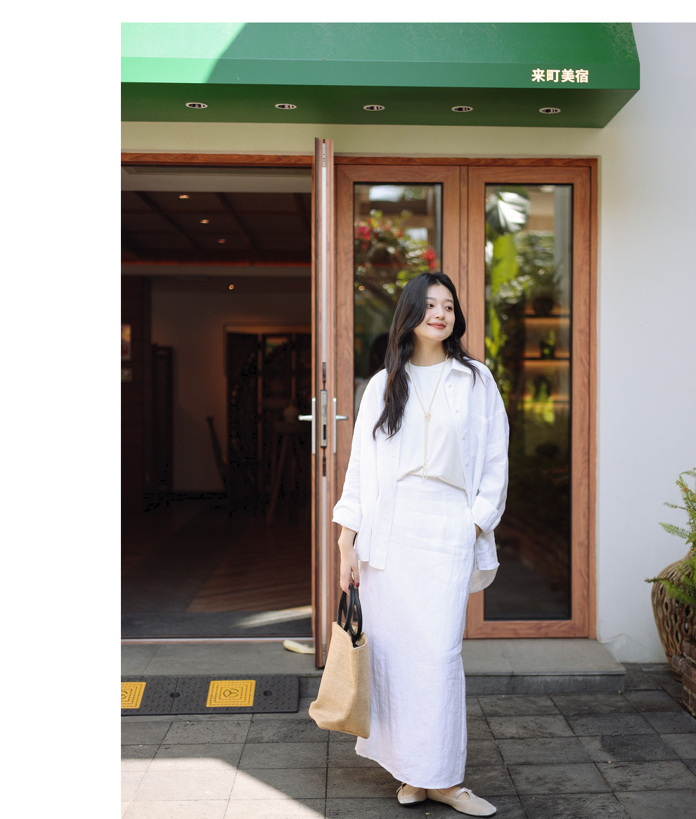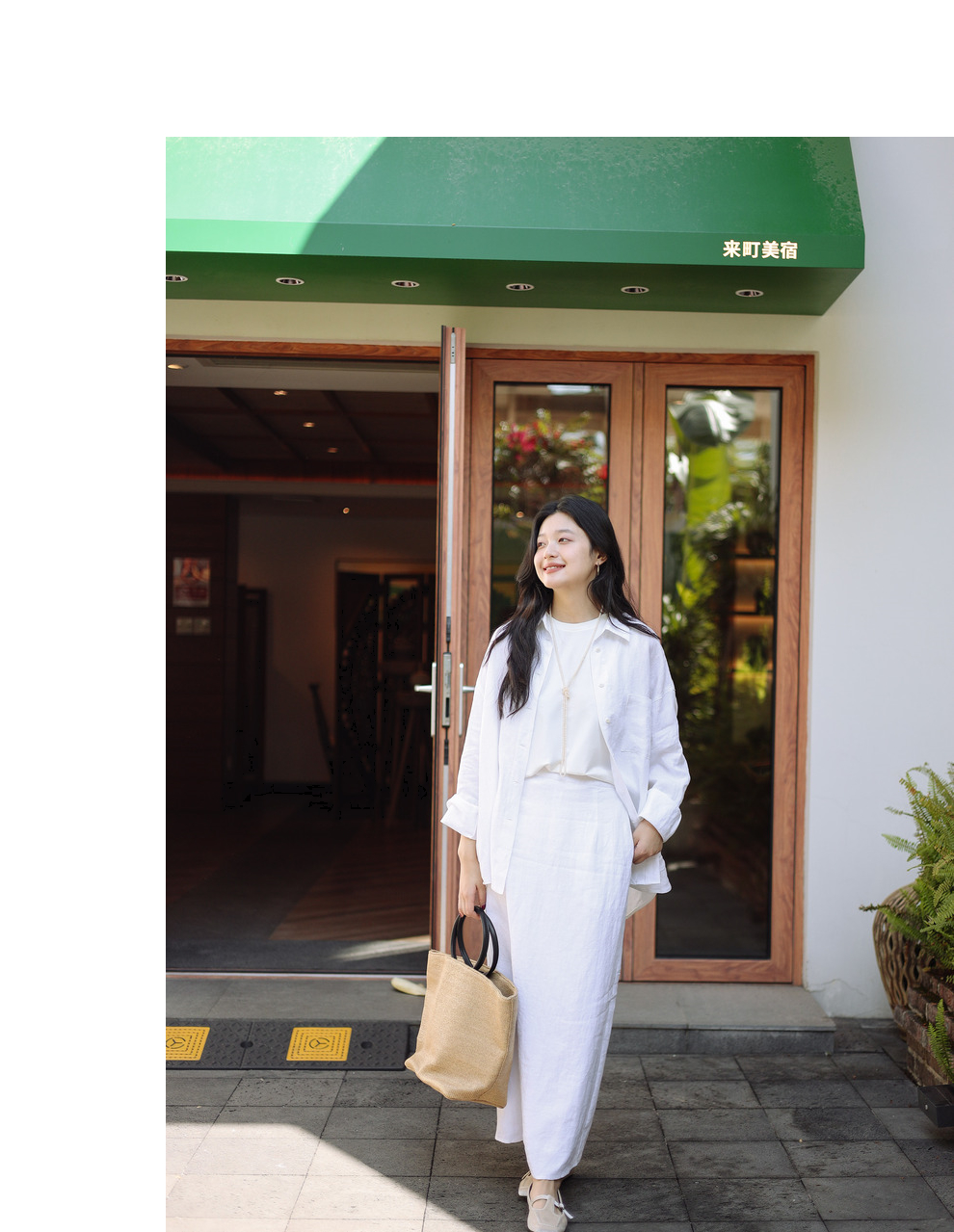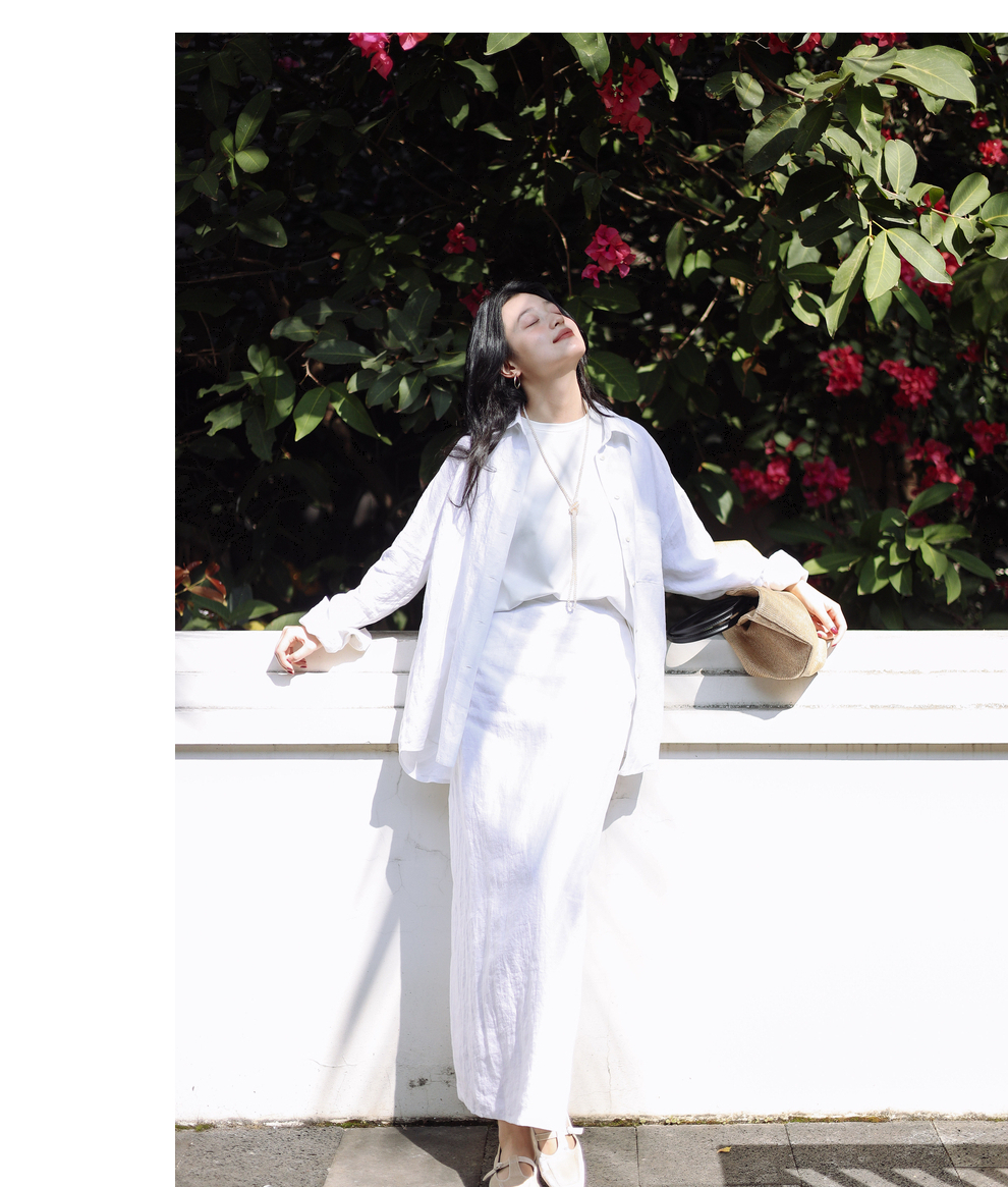 绽放146-147朵/2024春季高级感宽松文艺显瘦棉麻衬衫亚麻半裙套装