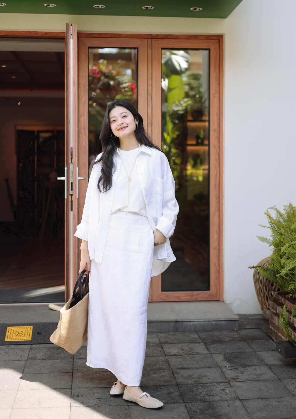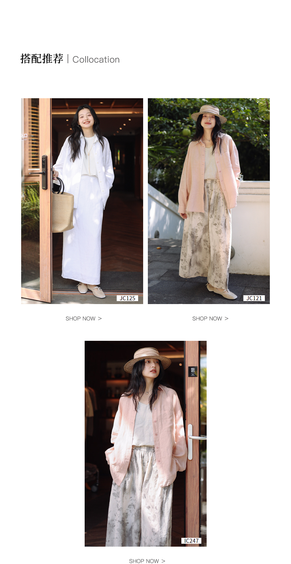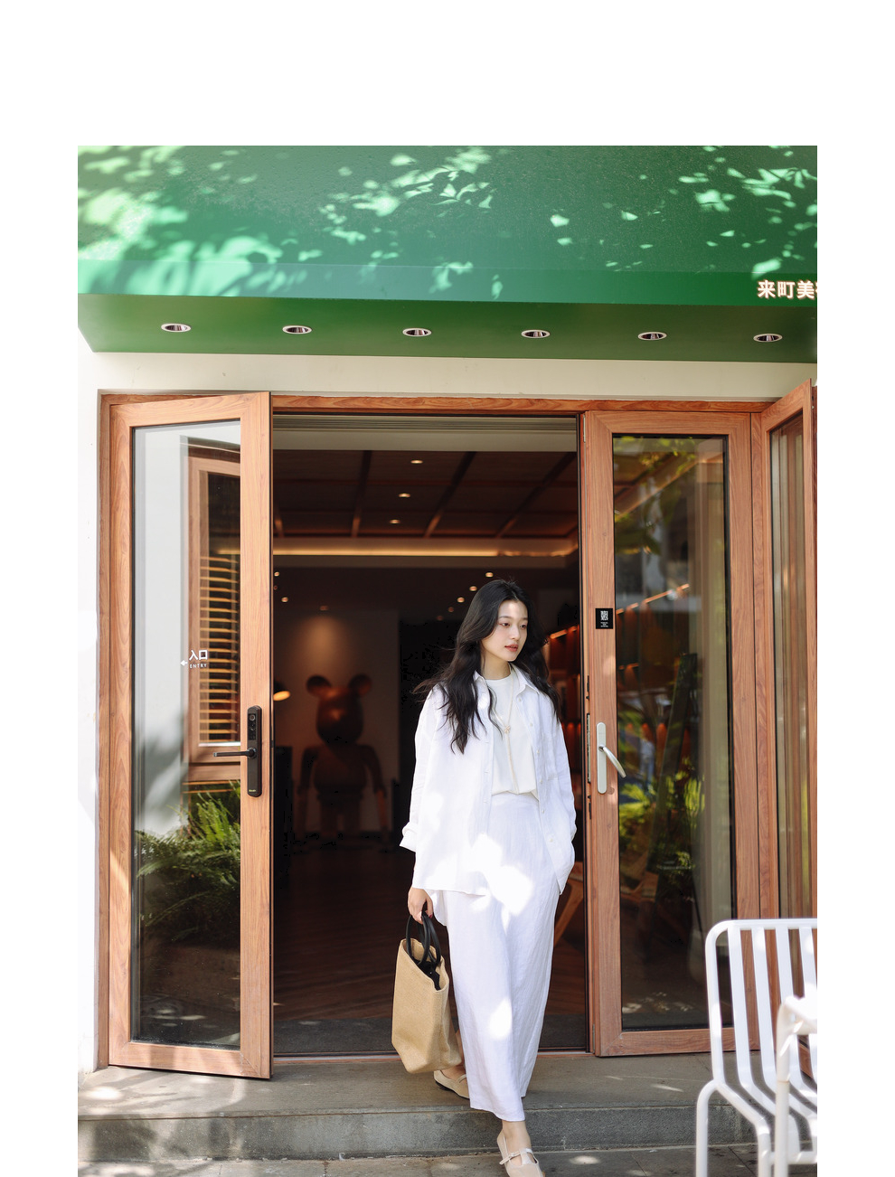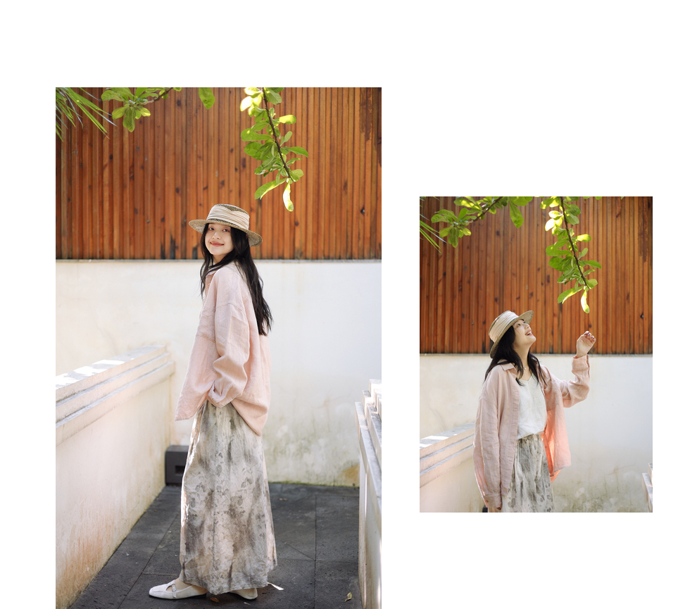 绽放146-147朵/2024春季高级感宽松文艺显瘦棉麻衬衫亚麻半裙套装