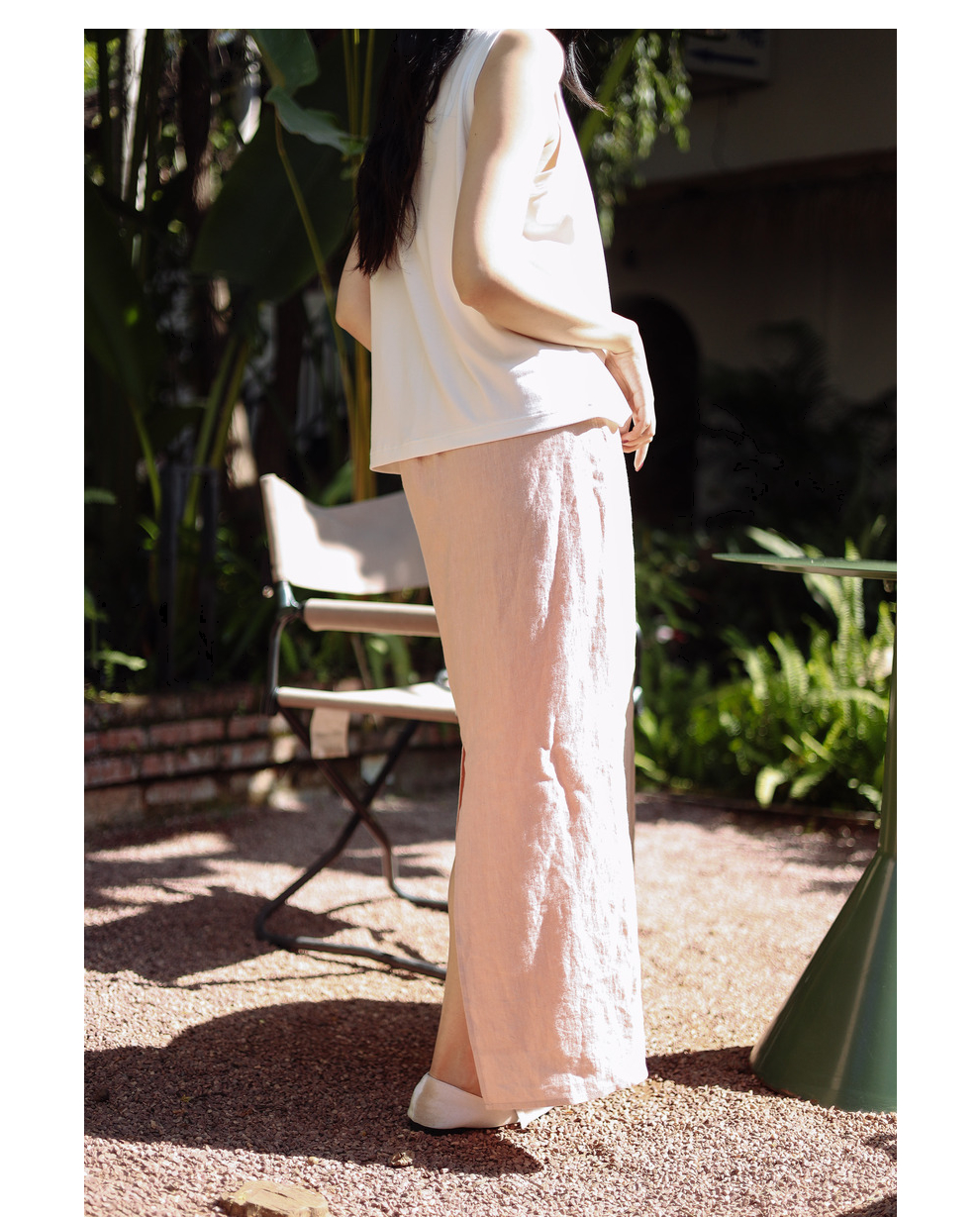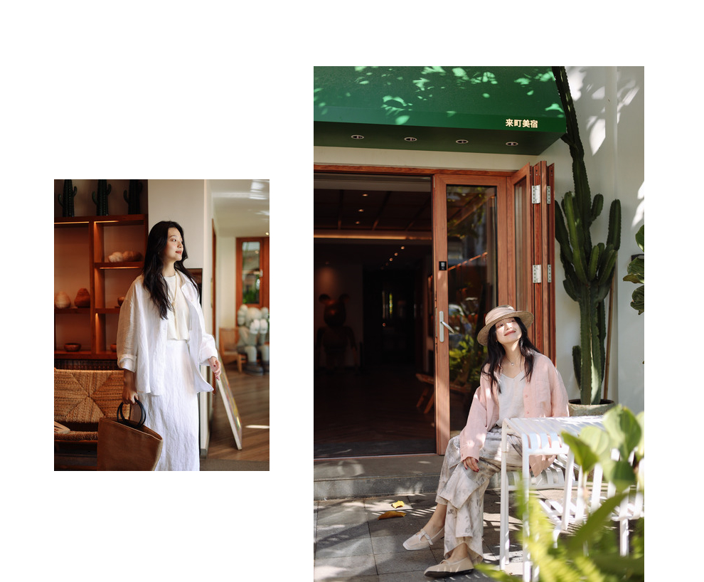 以天然亚麻为载体,融合热烈色彩与自在剪裁为身在城市、心怀远方的女性提供兼具美学与舒适的旅行着装