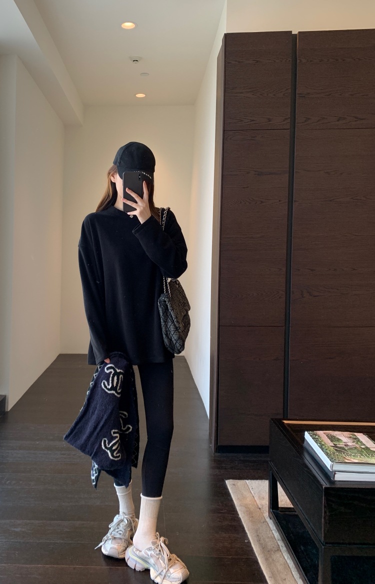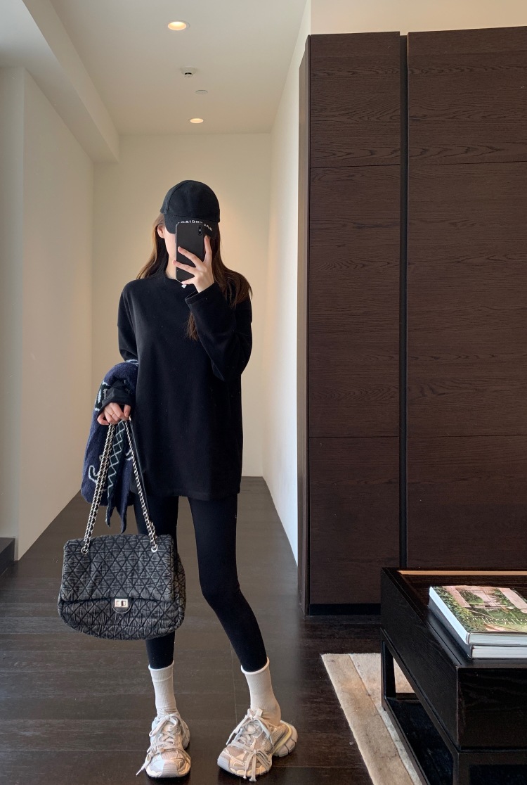 落肩长袖修身偏长 是增加时髦度的心机设计