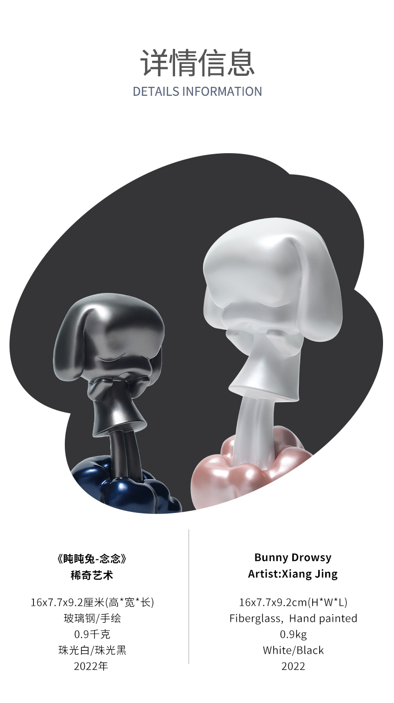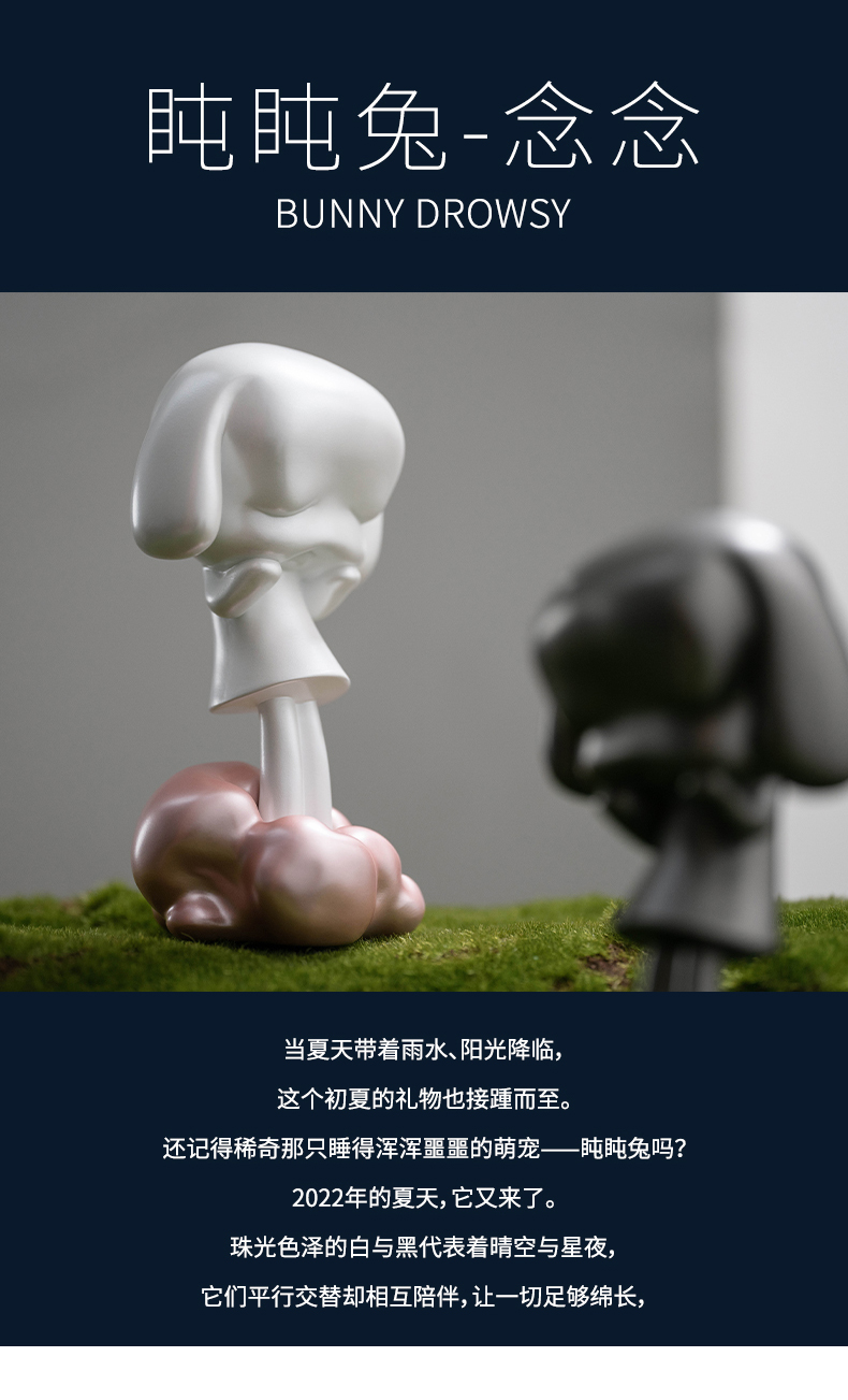 稀奇艺术《盹盹兔》夜晚白天可爱兔装饰摆件黑白装饰品新居礼物
