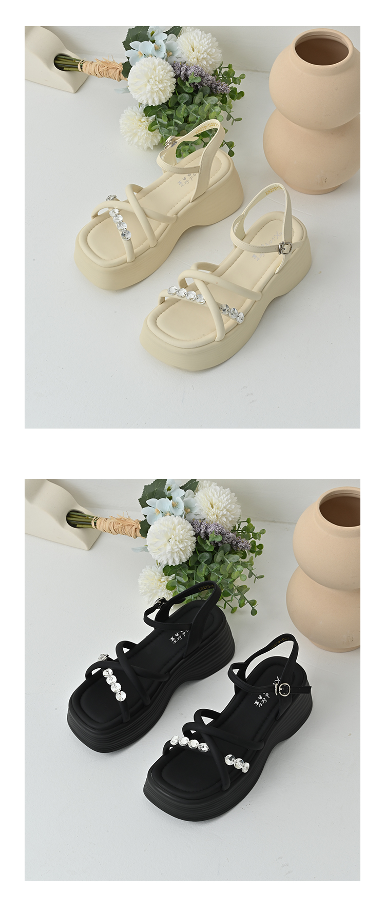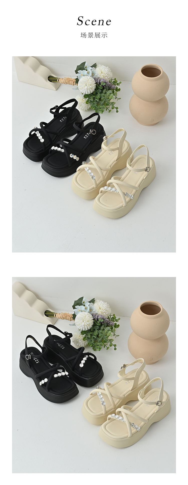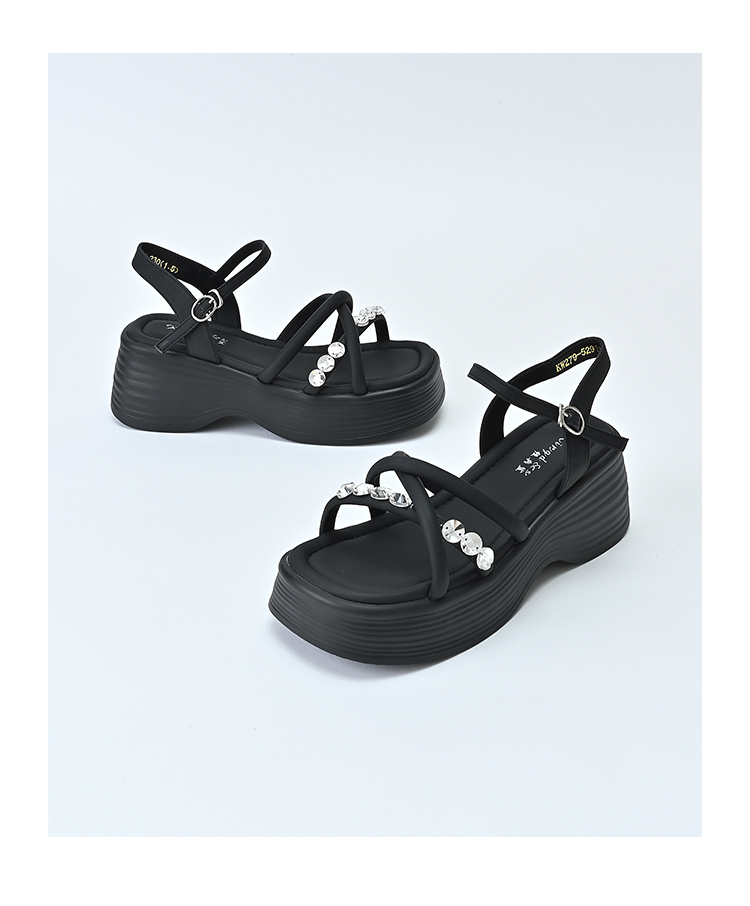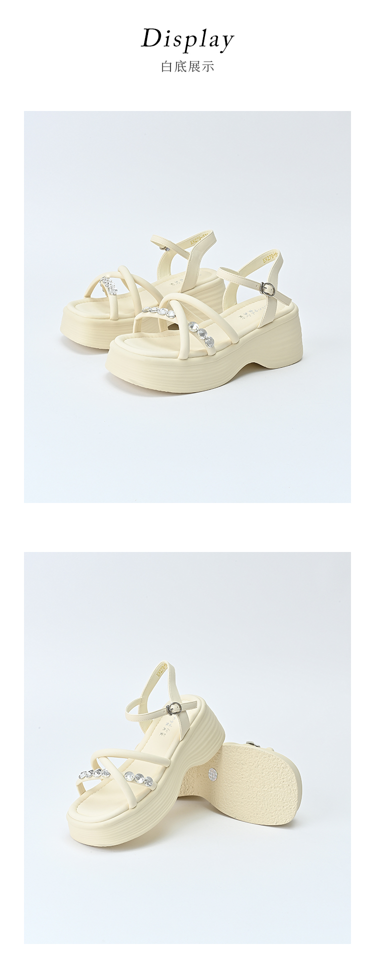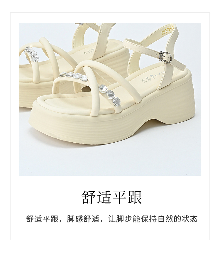 经典鲨2025夏季新品一字带厚底显高简约时尚露趾水钻凉鞋女KW279-529111