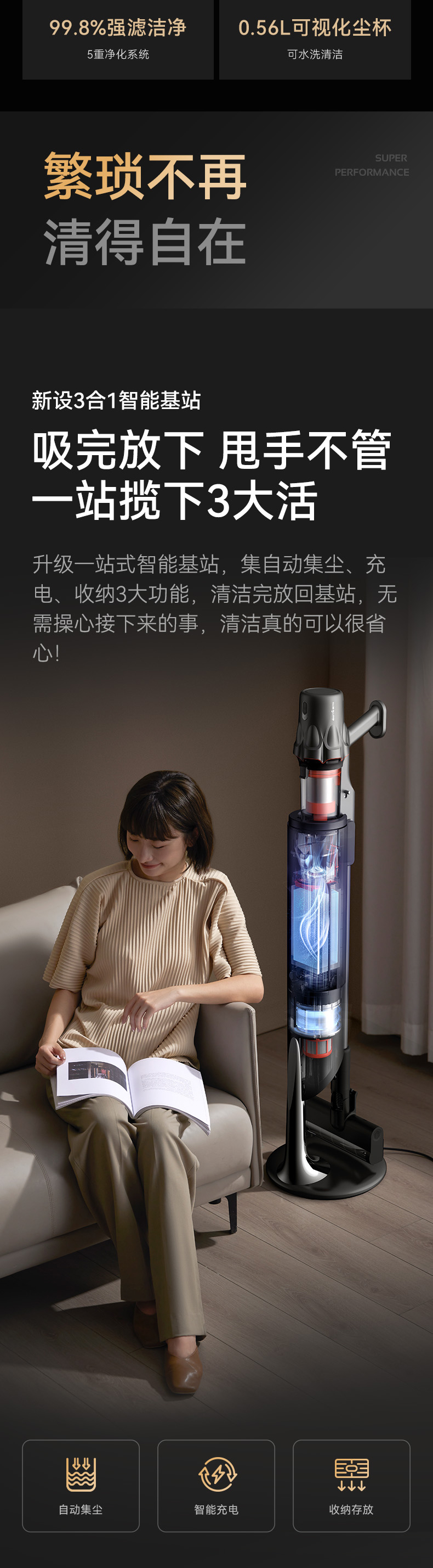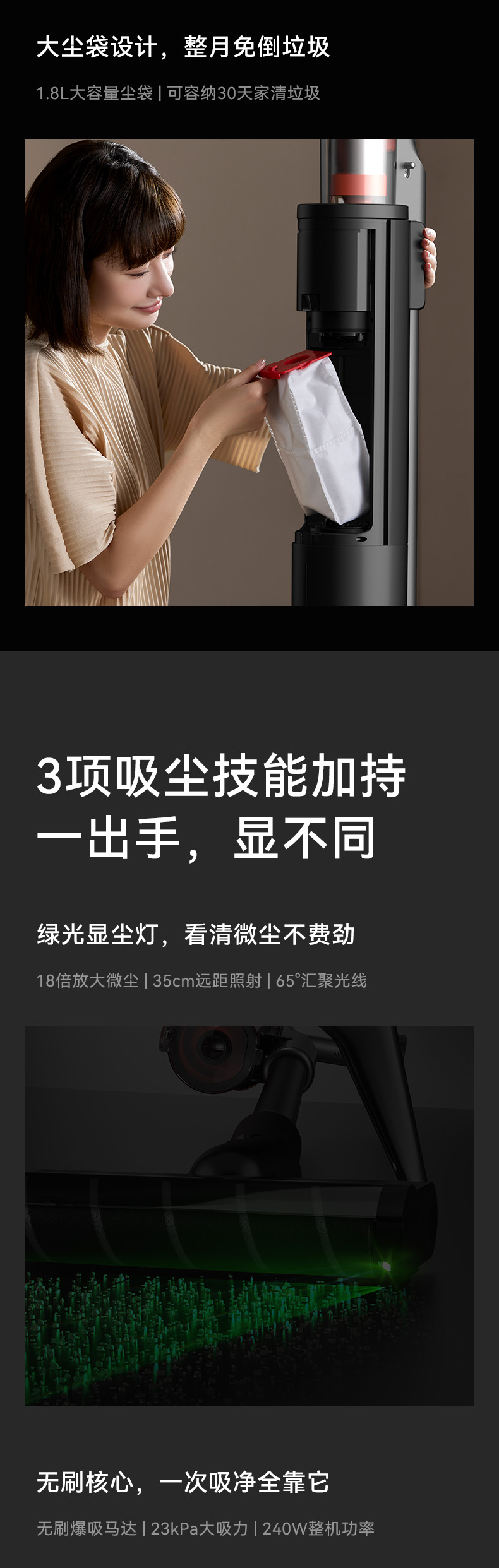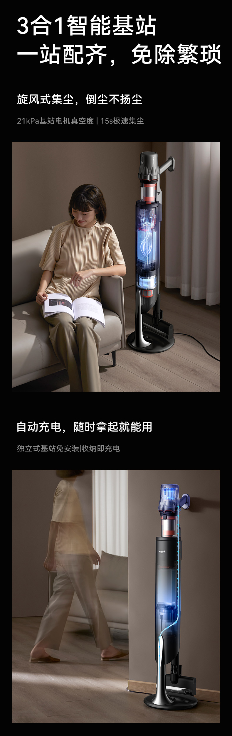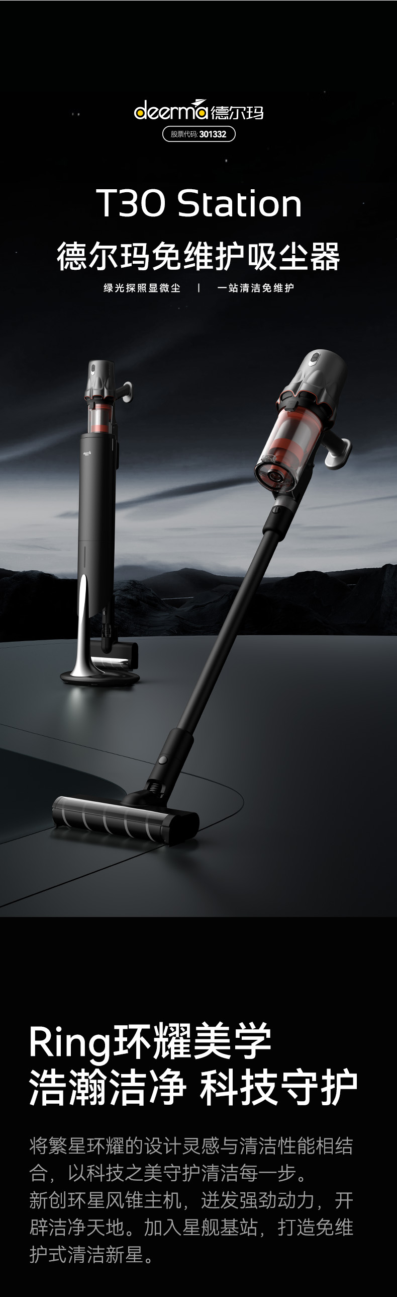 德尔玛T30Station绿光吸尘器家用大吸力无线全自动集尘懒人吸尘机