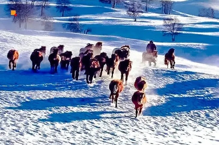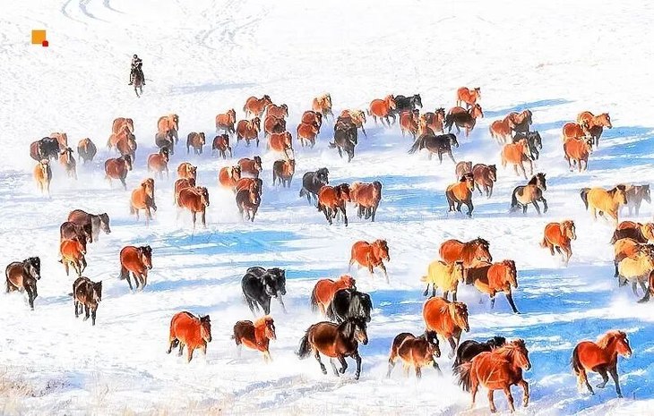 - 『马踏飞雪』前往拍摄雪地狂奔的马群(费用自理),马倌会根据大家的拍摄角度让追赶着马儿奔跑在辽阔的大草原之上。冬季拍摄雪地奔马场面远远好于夏秋季节奔马的场面,逆光和侧逆光拍摄马匹在雪地奔跑,鬃毛、马尾、溅雪、哈气的画面层次动感强烈,气势磅礴。草原最少不了的就是牛羊成群,马儿奔腾,在远处看着马群在皑皑白雪上奔跑,鬃毛、马尾、溅雪、哈气的画面气势磅礴,比夏季在草原看万马奔腾带来的视觉冲击更加强烈。