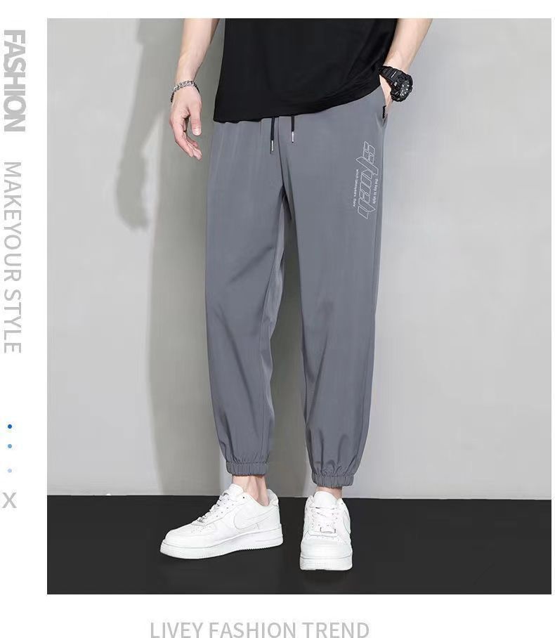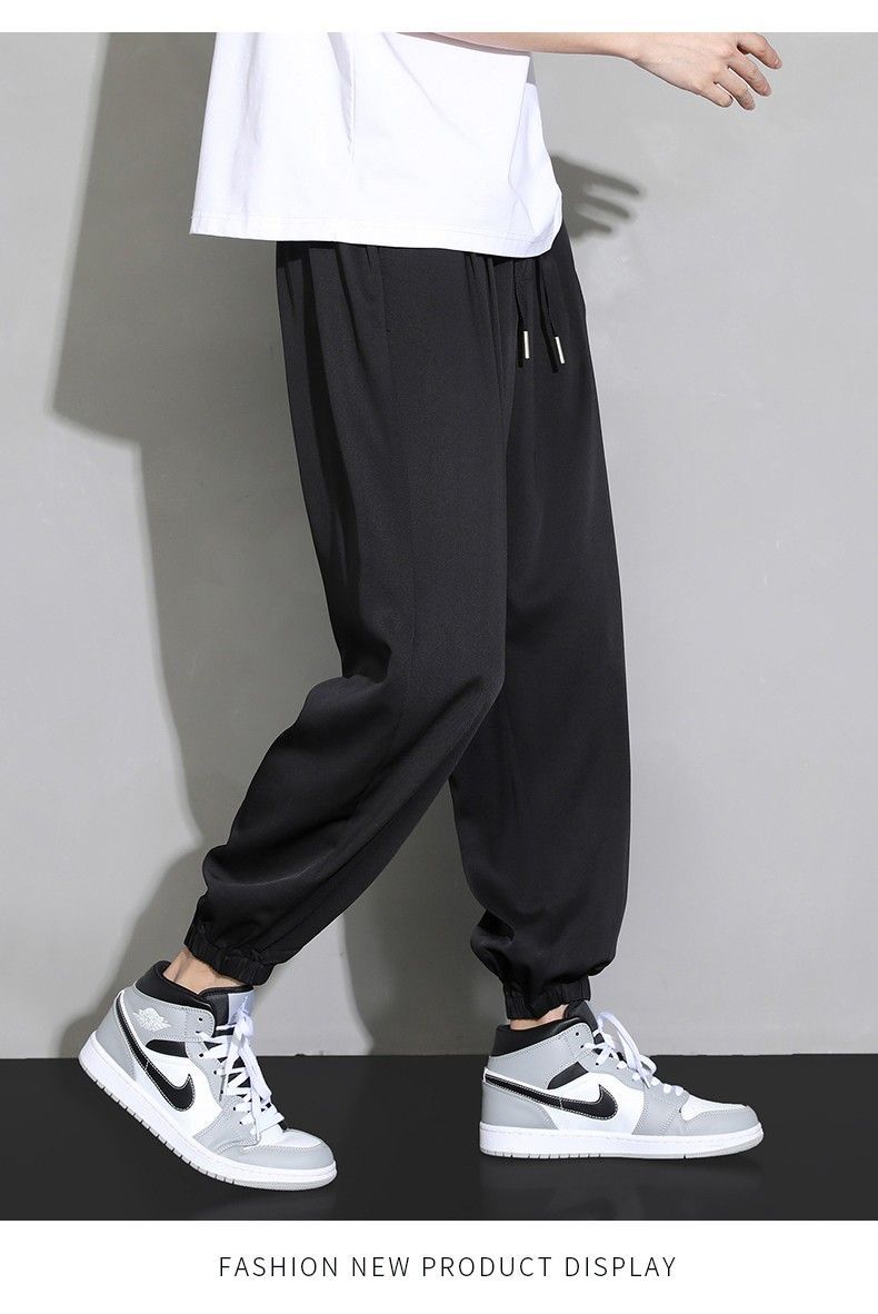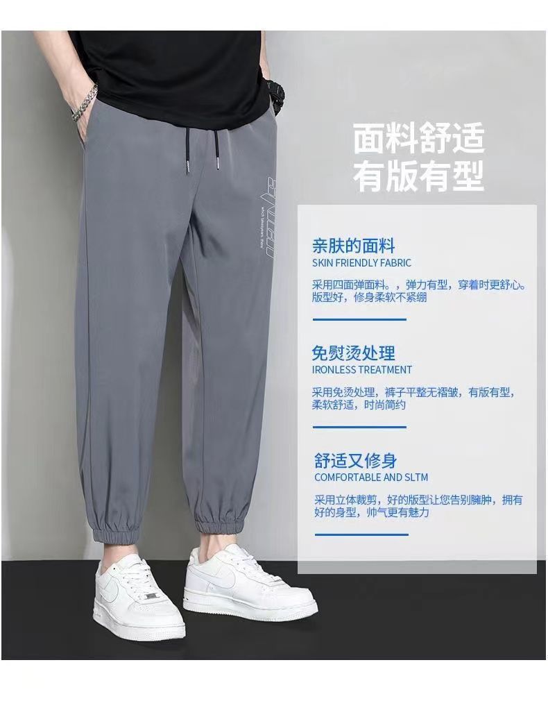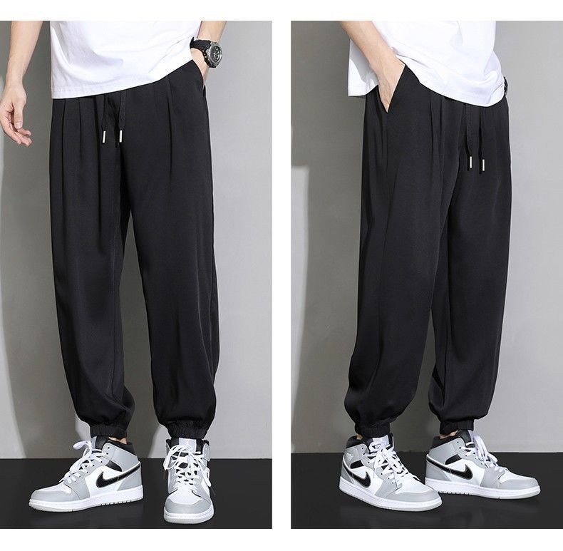 【速干透气❗️冰丝垂感休闲裤】冰感降温,轻薄透气,舒适柔软,夏季无感,男士薄款冰丝裤宽松长裤韩版潮流运动九分束脚裤子父亲节礼物新年礼盒年货礼盒