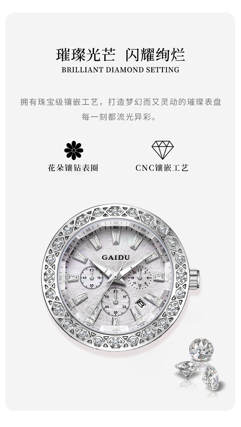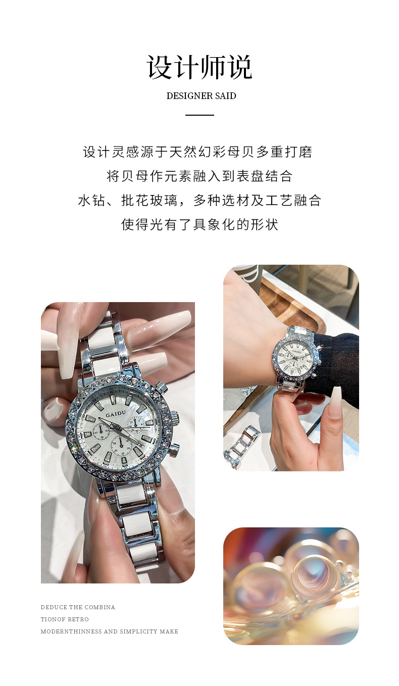【百搭轻奢❗️水钻环绕镶嵌手表】送给自己一个礼物,时尚女士手表防水夜光贝母石英女表圆形镶钻日历陶瓷腕表七夕情人节礼物新年年