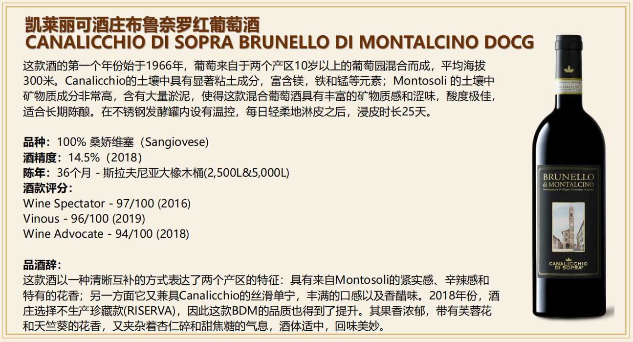 CANALICCHIO DI SOPRA BRUNELLO DI MONTALCINO DOCG 2018 750ML 凯莱丽可酒庄布鲁奈罗红葡萄酒