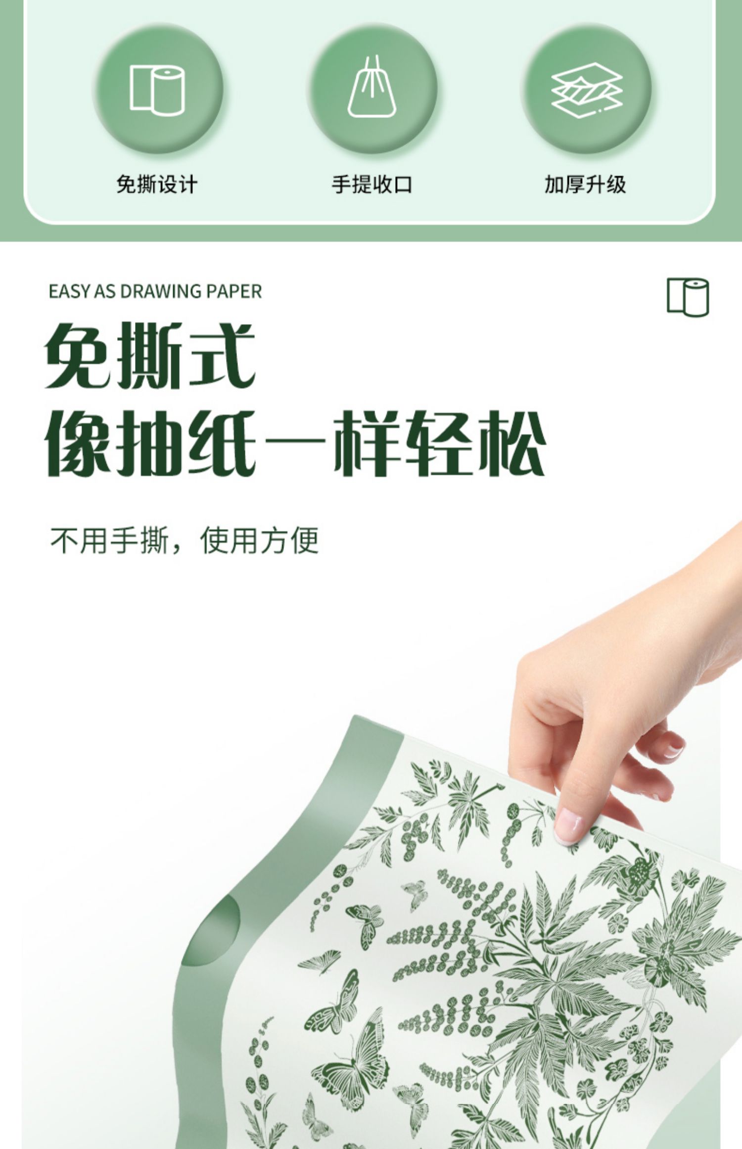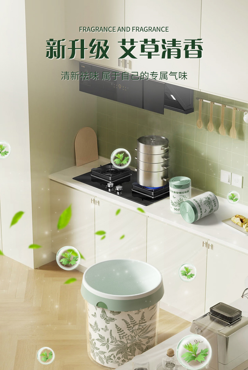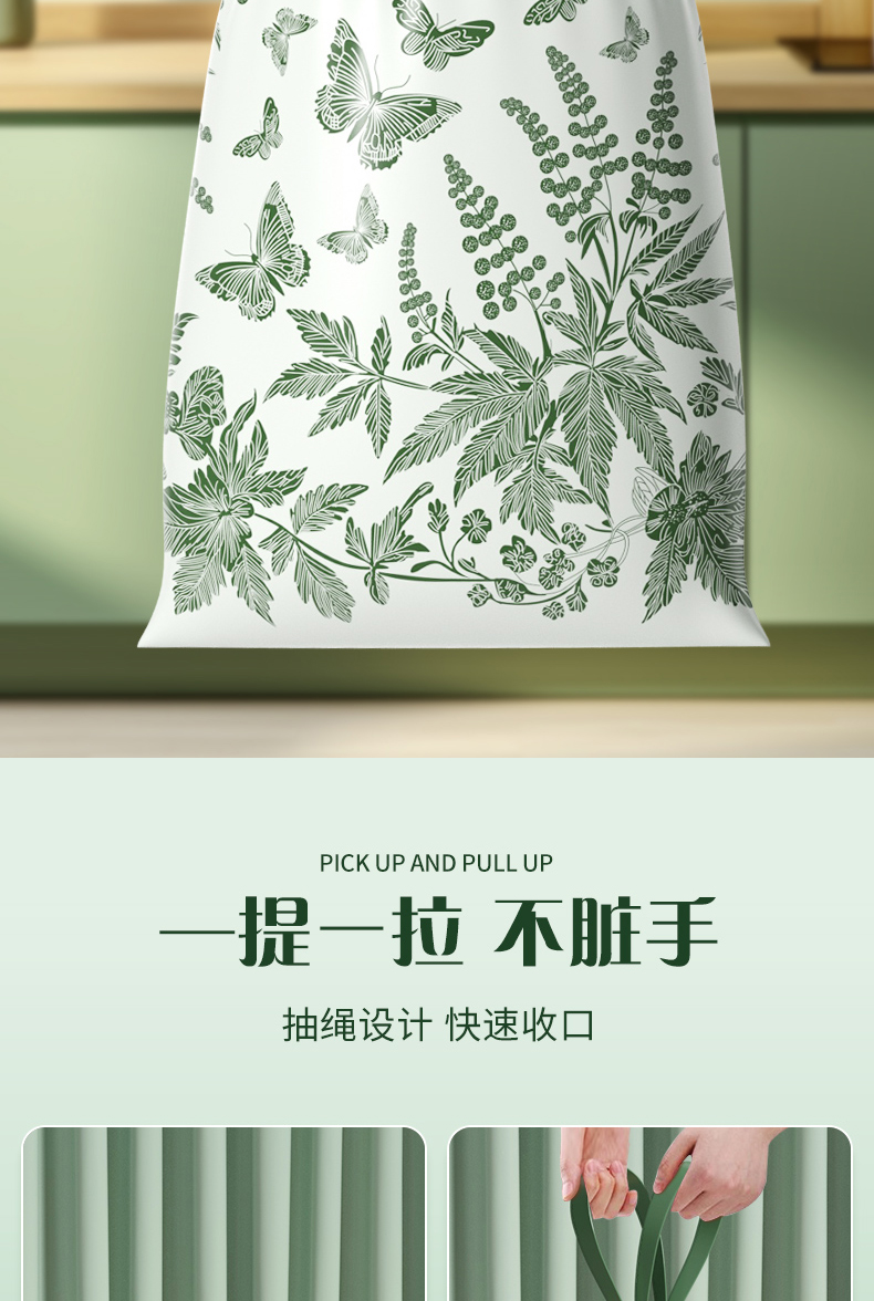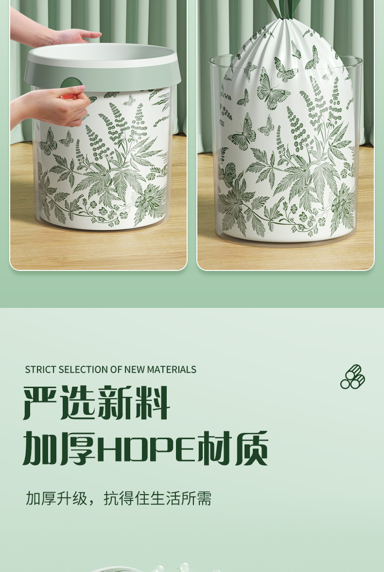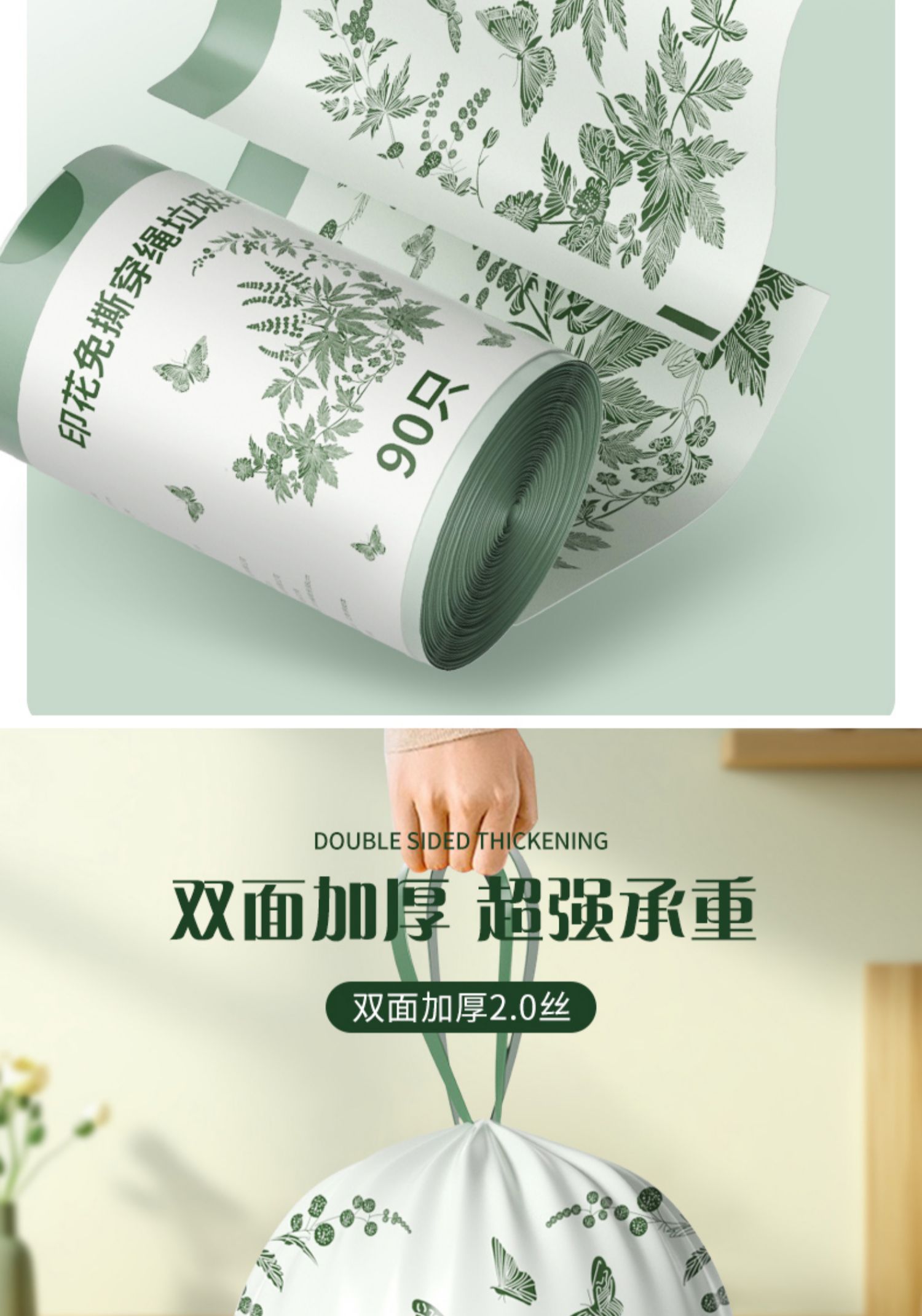 抽绳式艾草垃圾袋家用加厚手提式大号免撕塑料袋宿舍厨房特厚印花