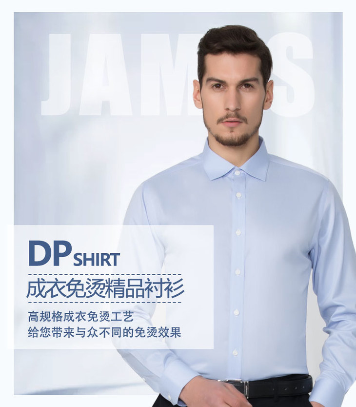 【DP 长袖断码清仓 浅蓝、浅紫】JAMES KINGDOM 男士DP免烫商务长袖衬衫
