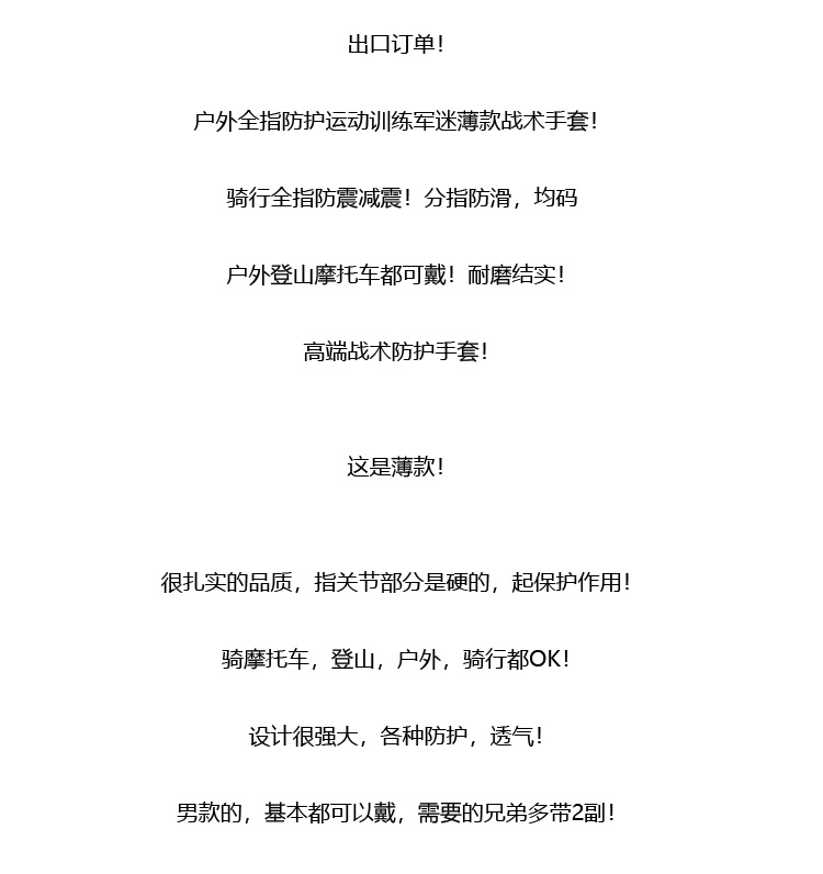 【ddz1】出口单!男子户外全指防护运动训练薄款战术手套!!