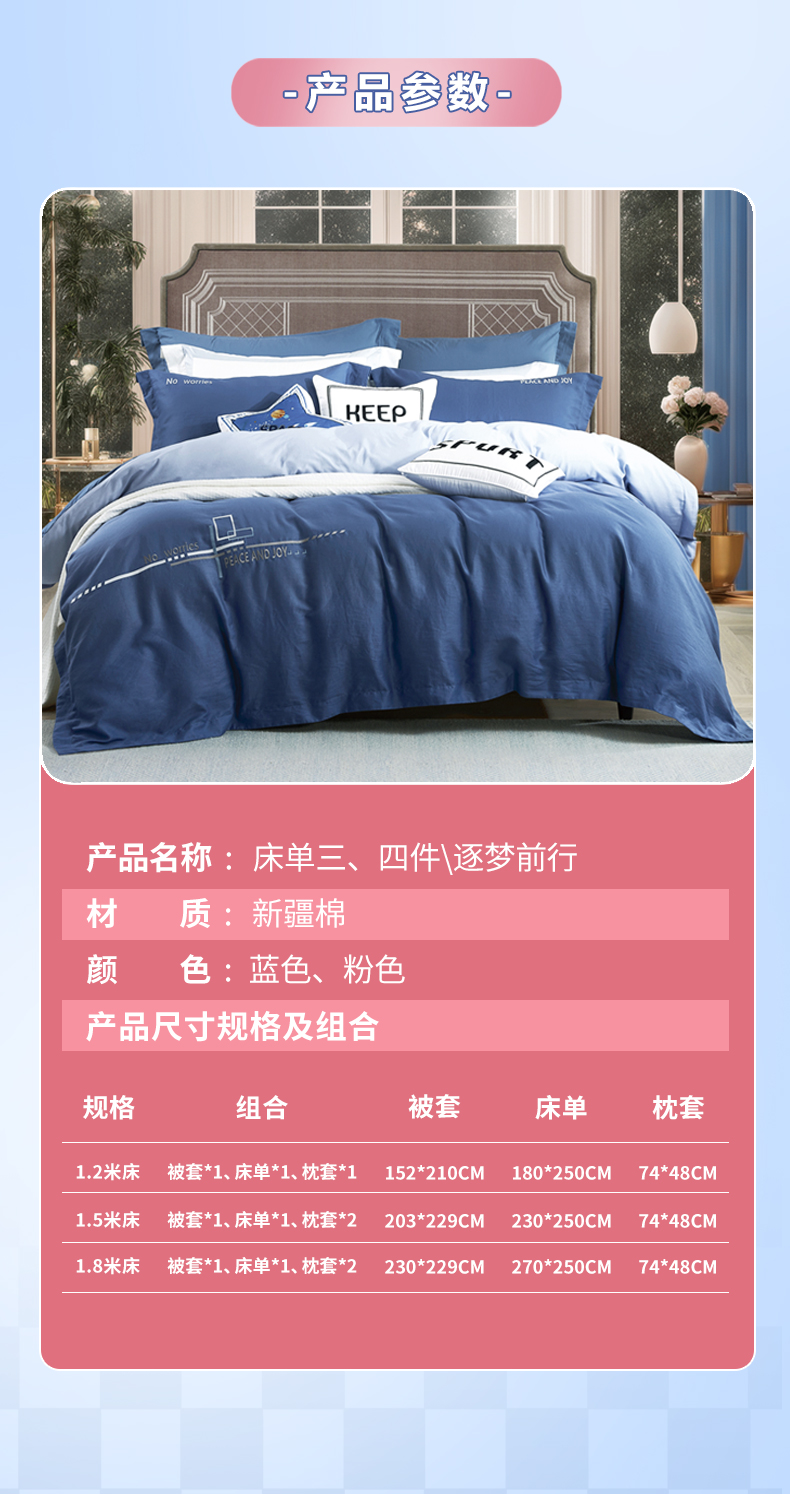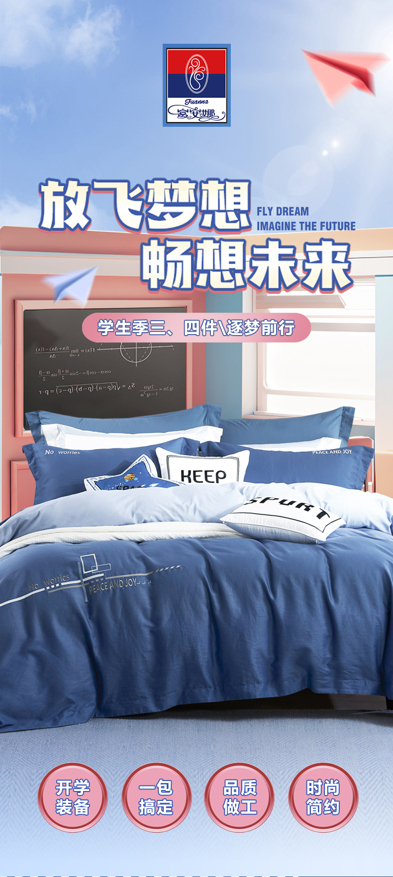 【7楼】富安娜床单四件\逐梦前行,蓝