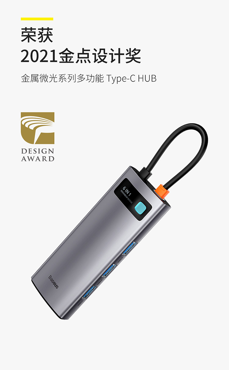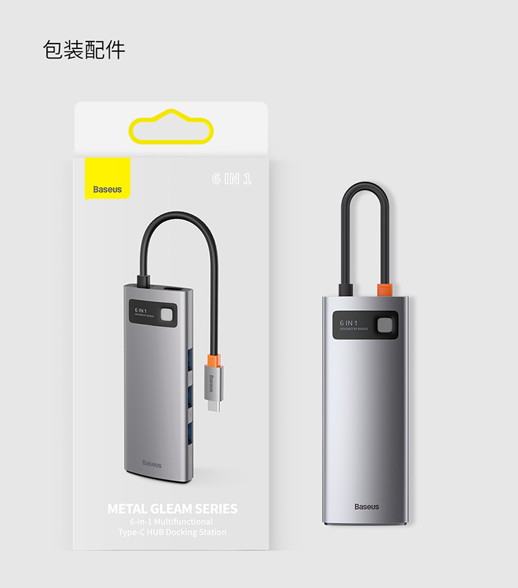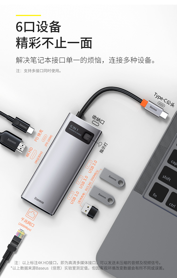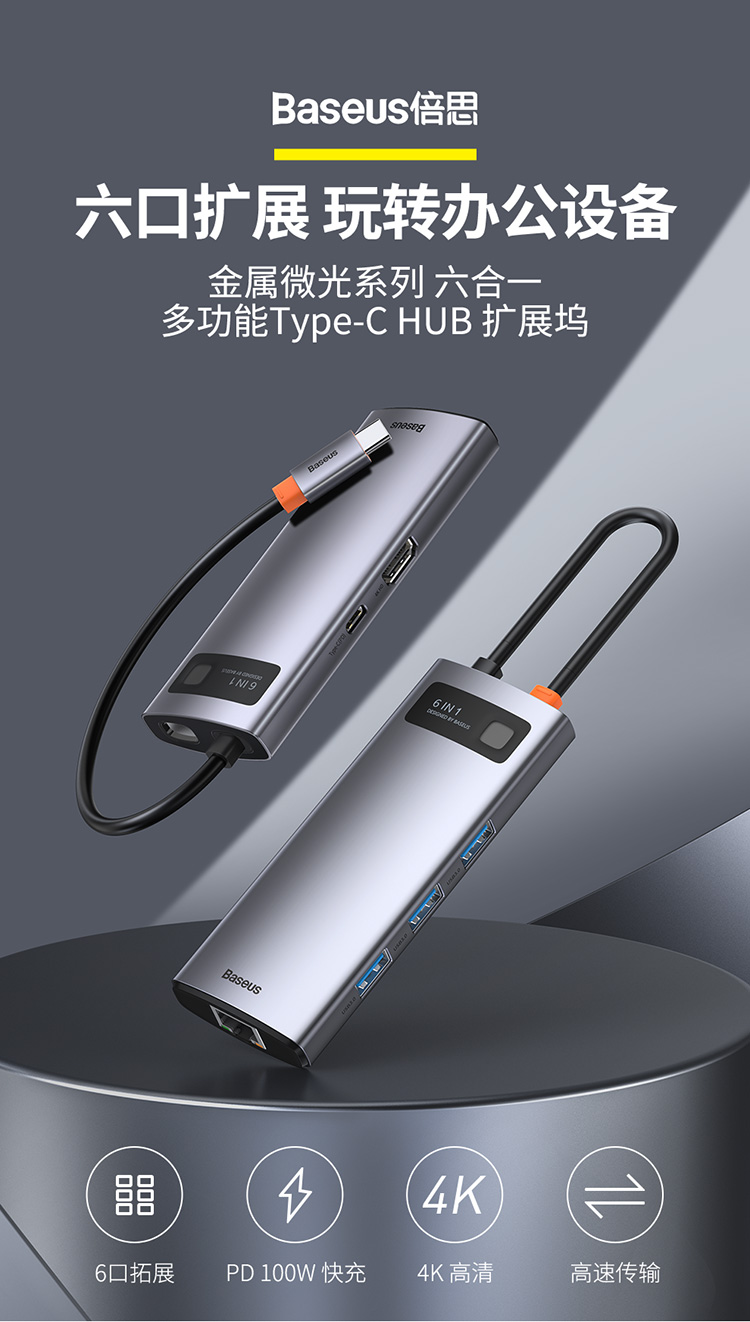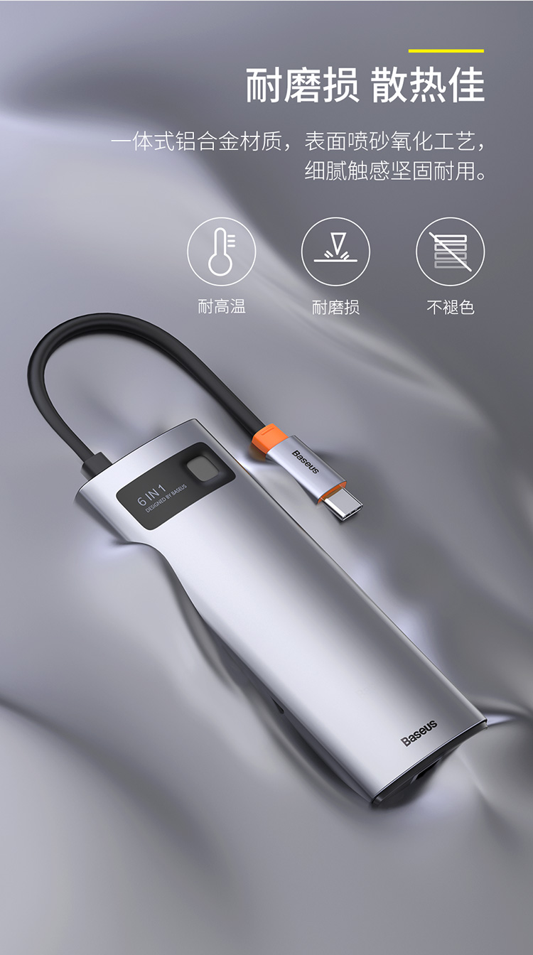 倍思 金属微光系列 六合一多功能Type-C HUB 扩展坞