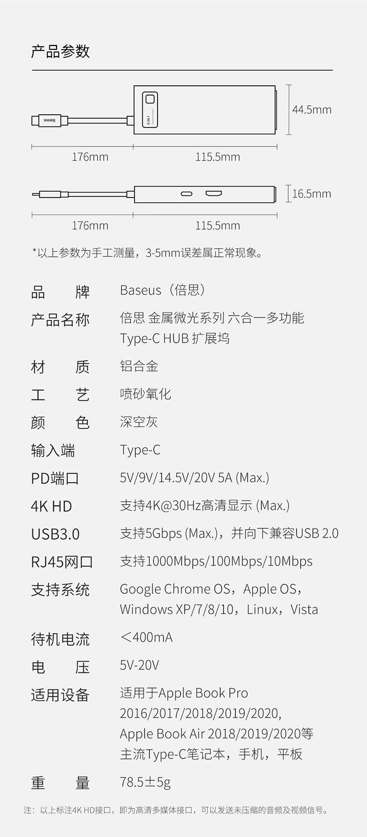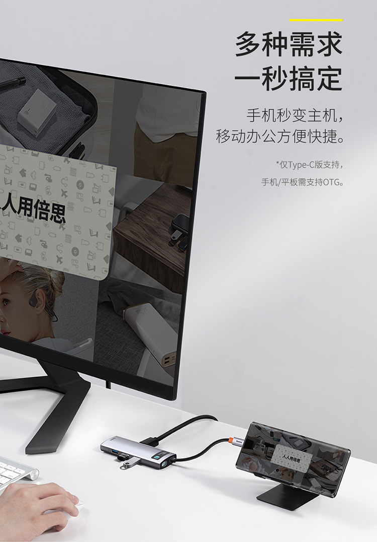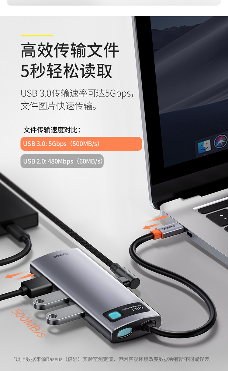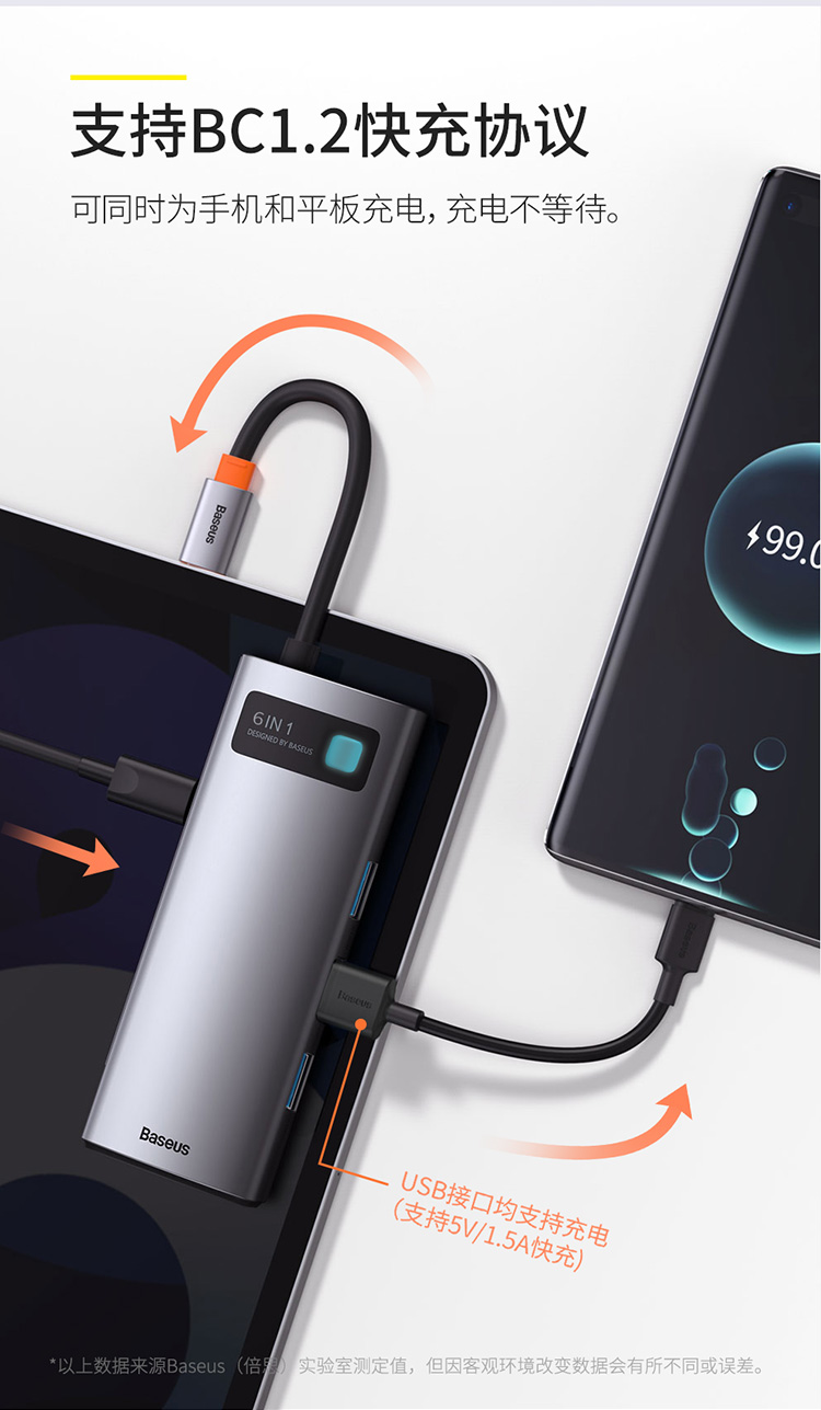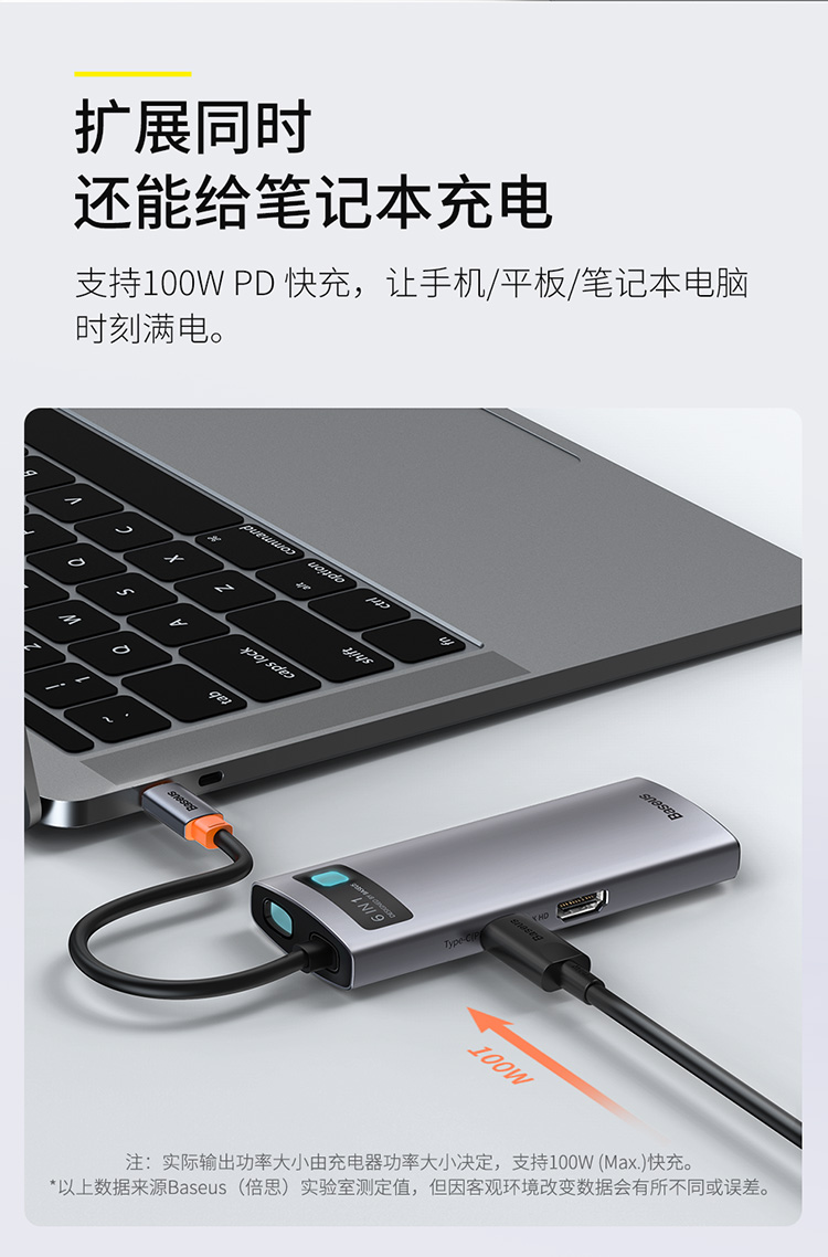 倍思 金属微光系列 六合一多功能Type-C HUB 扩展坞