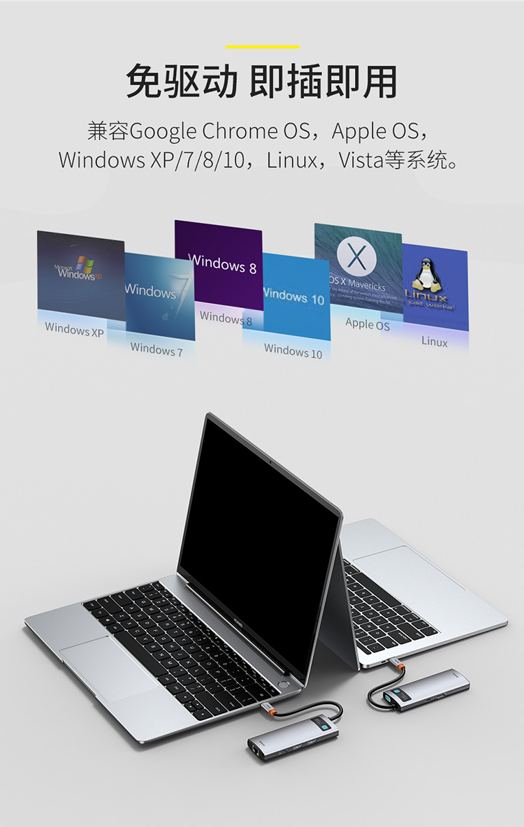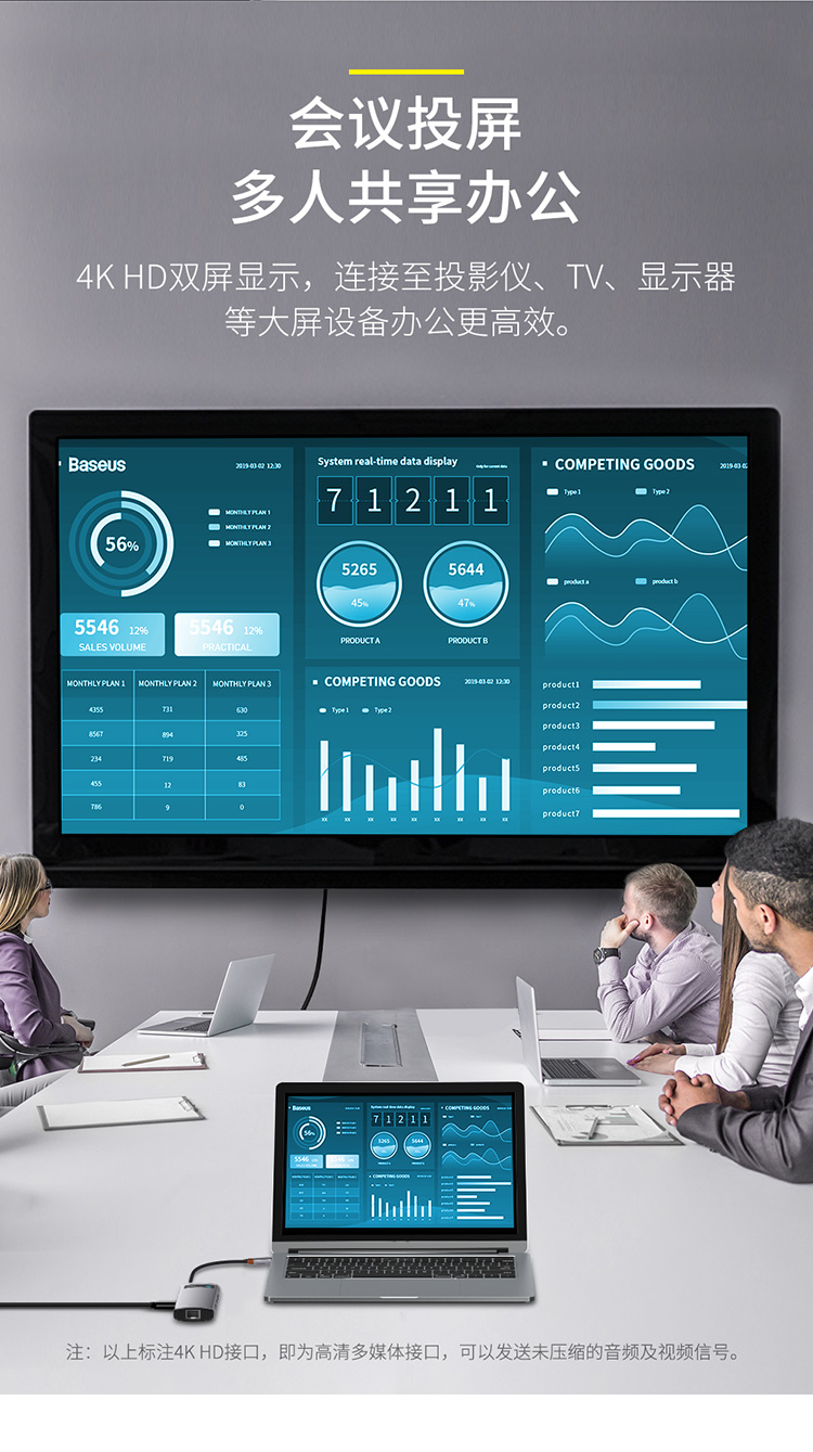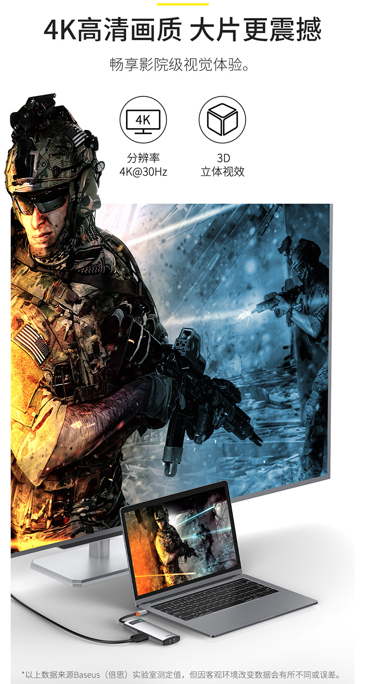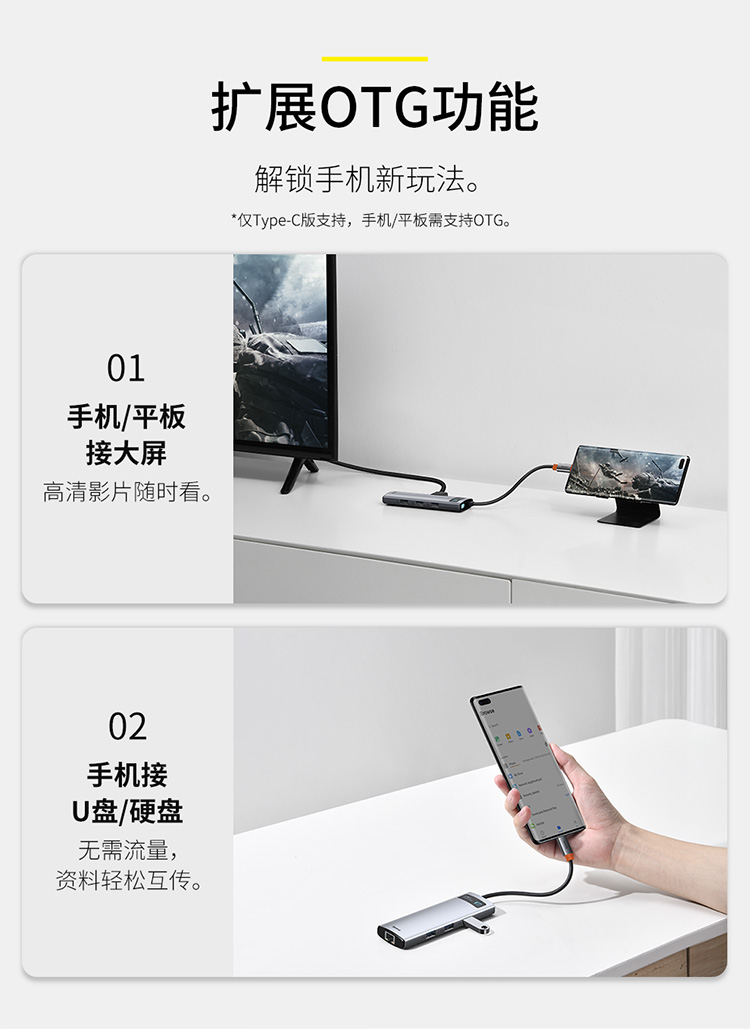 倍思 金属微光系列 六合一多功能Type-C HUB 扩展坞