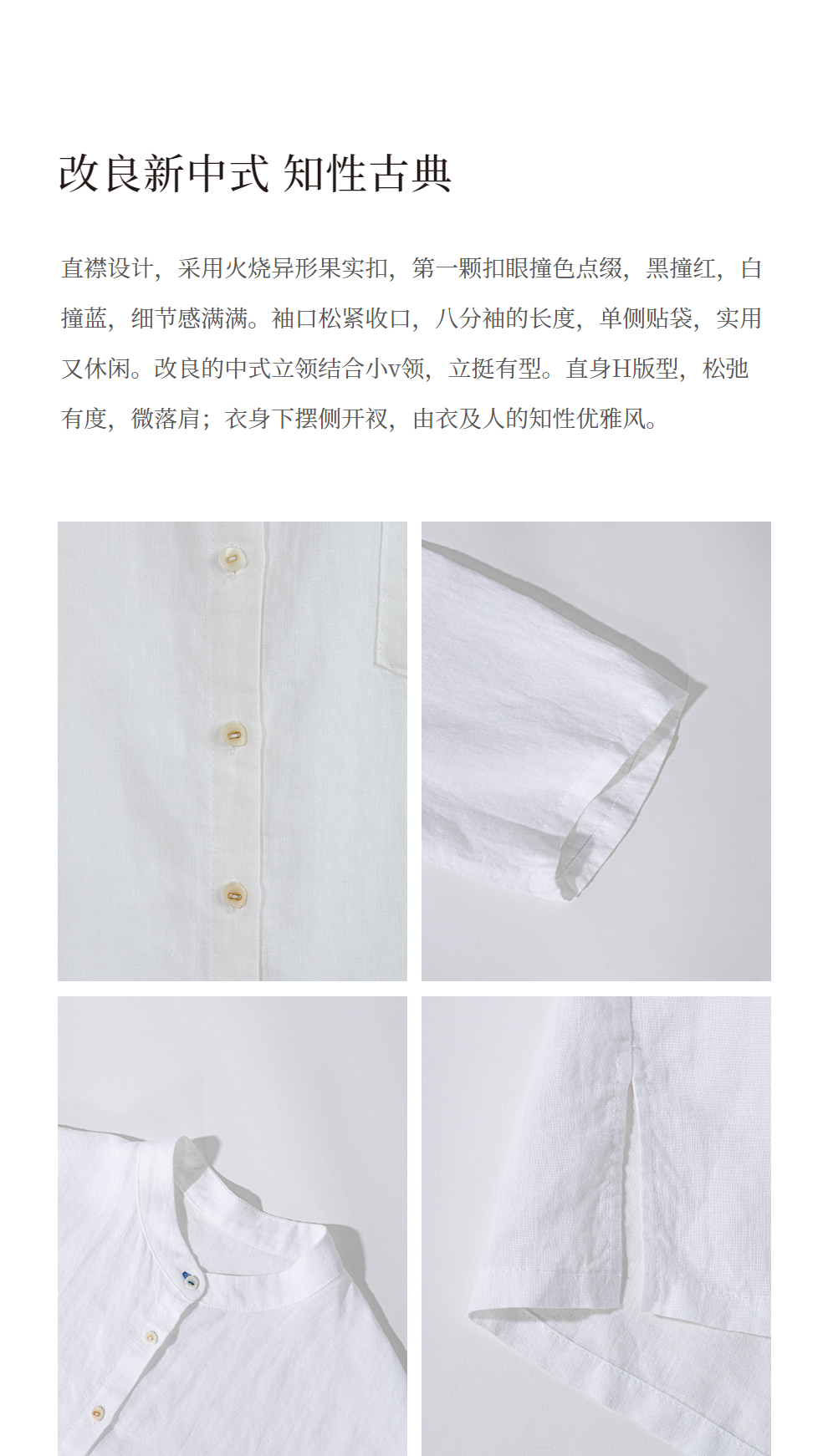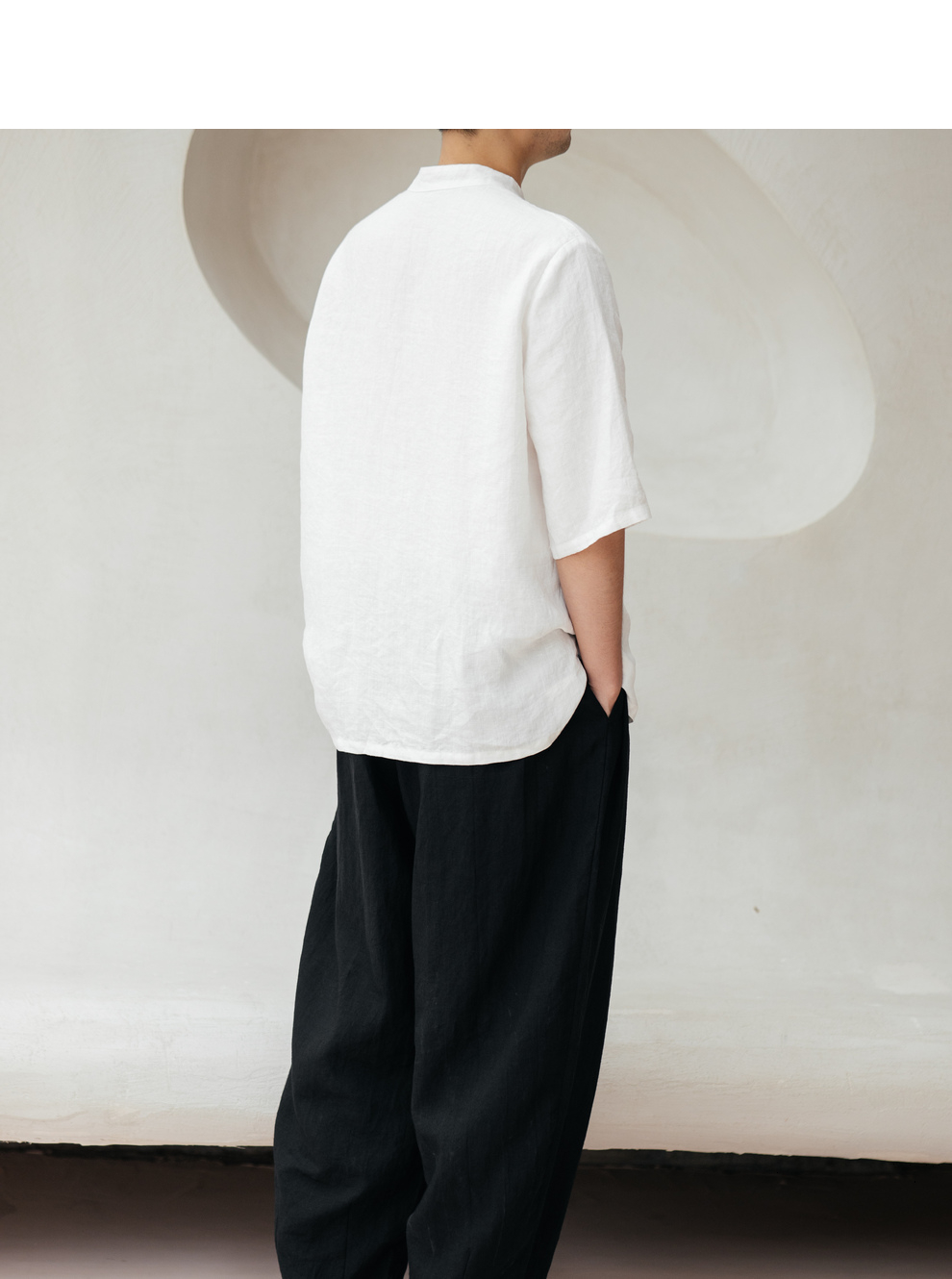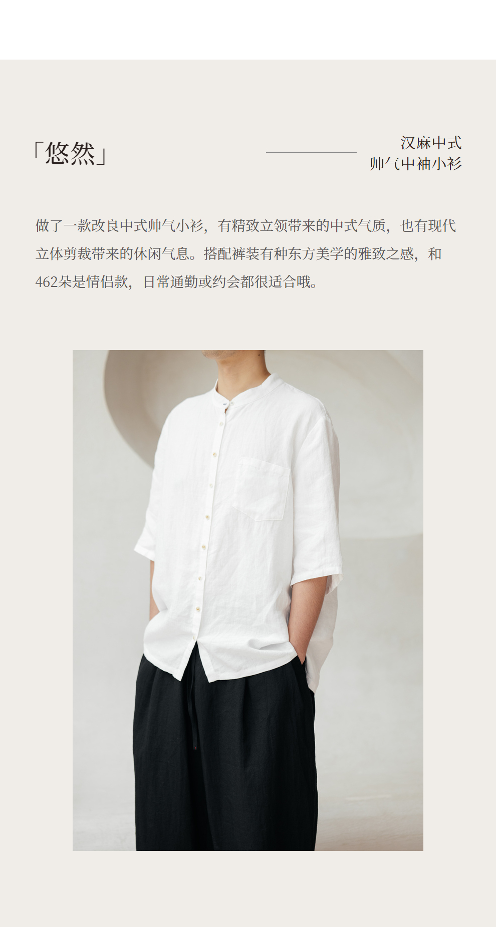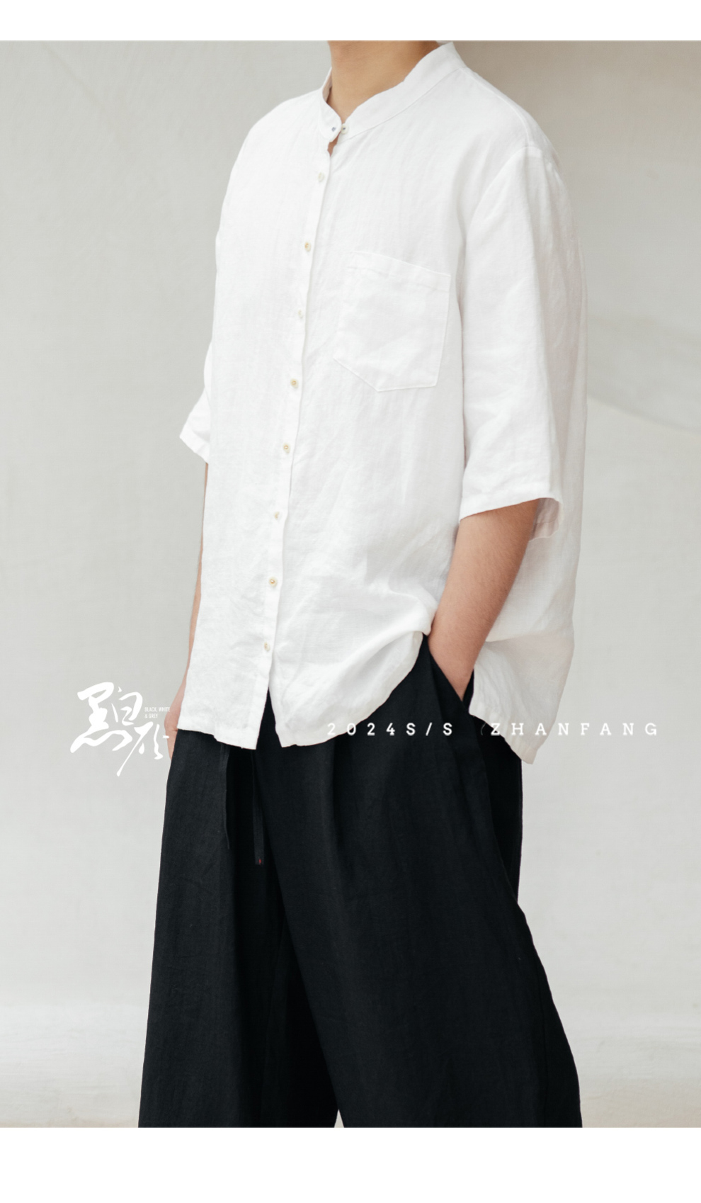 绽放606朵【黑白灰】2025男装汉麻中式精致立领白色中袖直襟小衫
