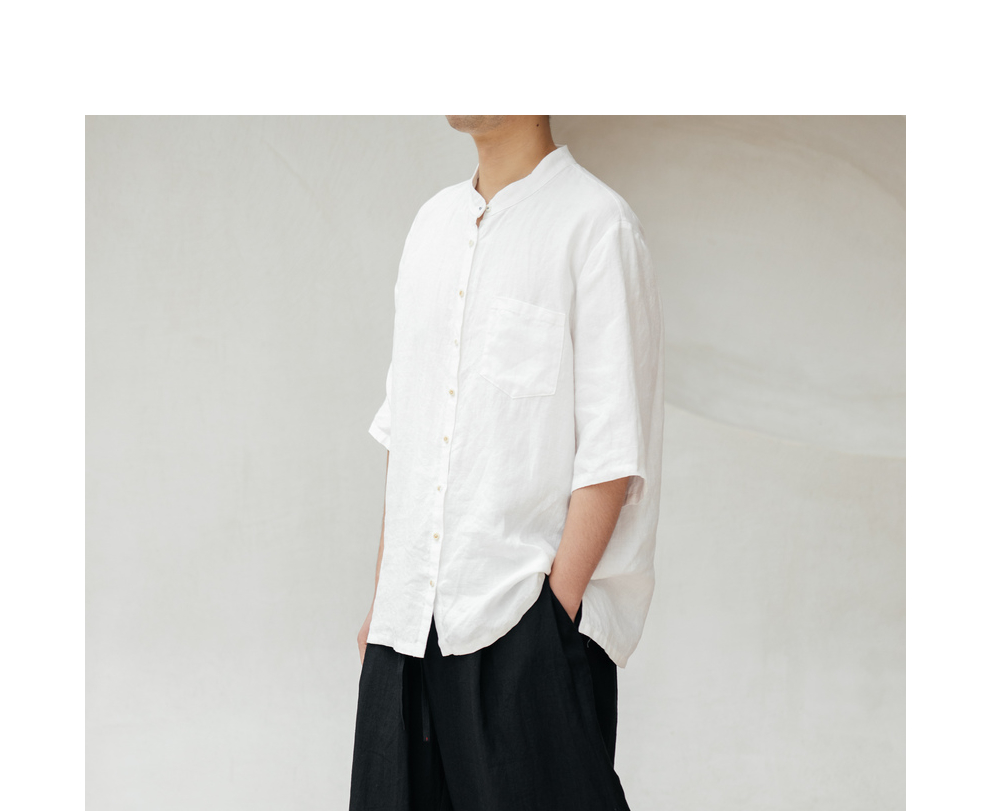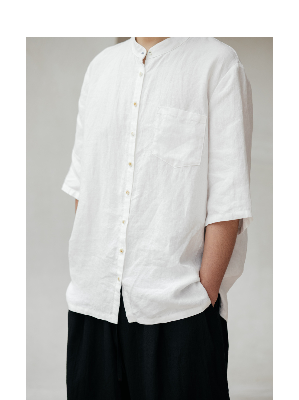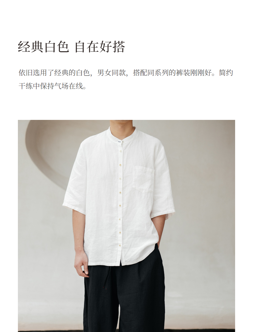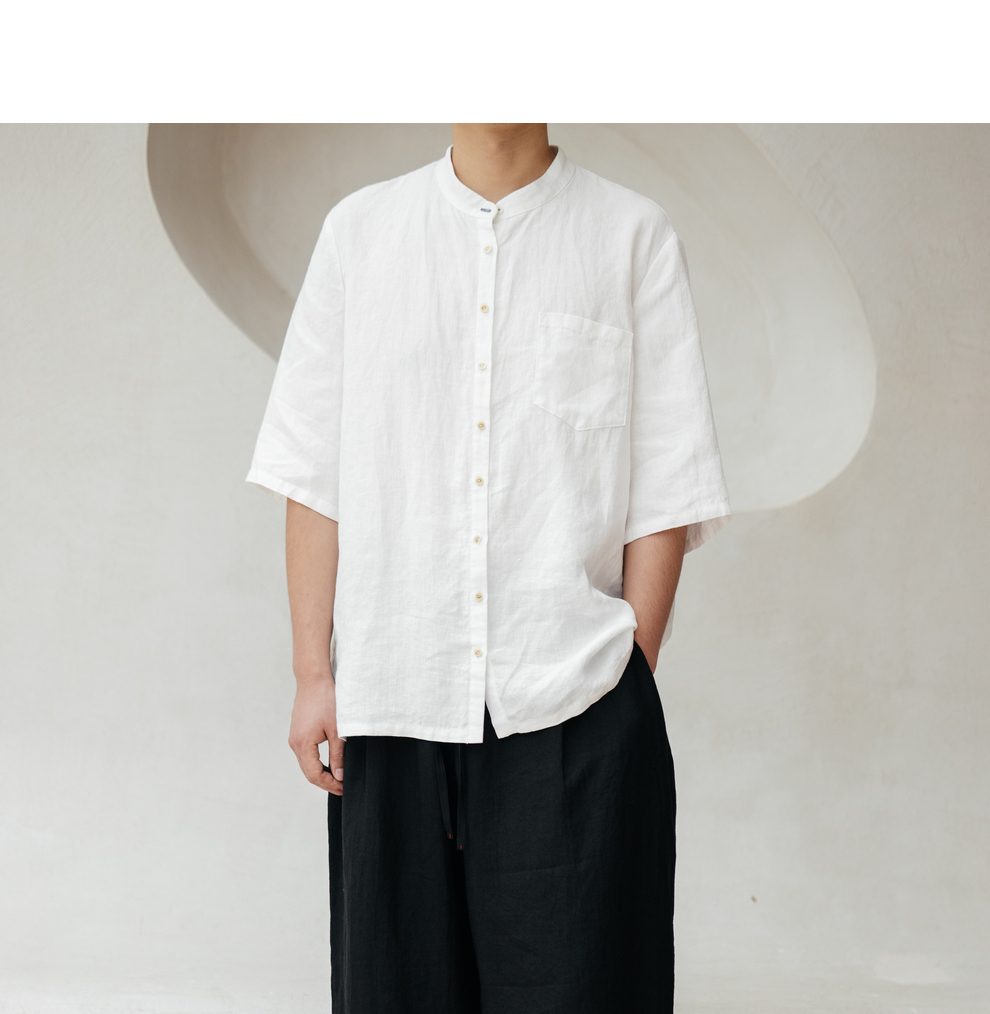 绽放606朵【黑白灰】2025男装汉麻中式精致立领白色中袖直襟小衫