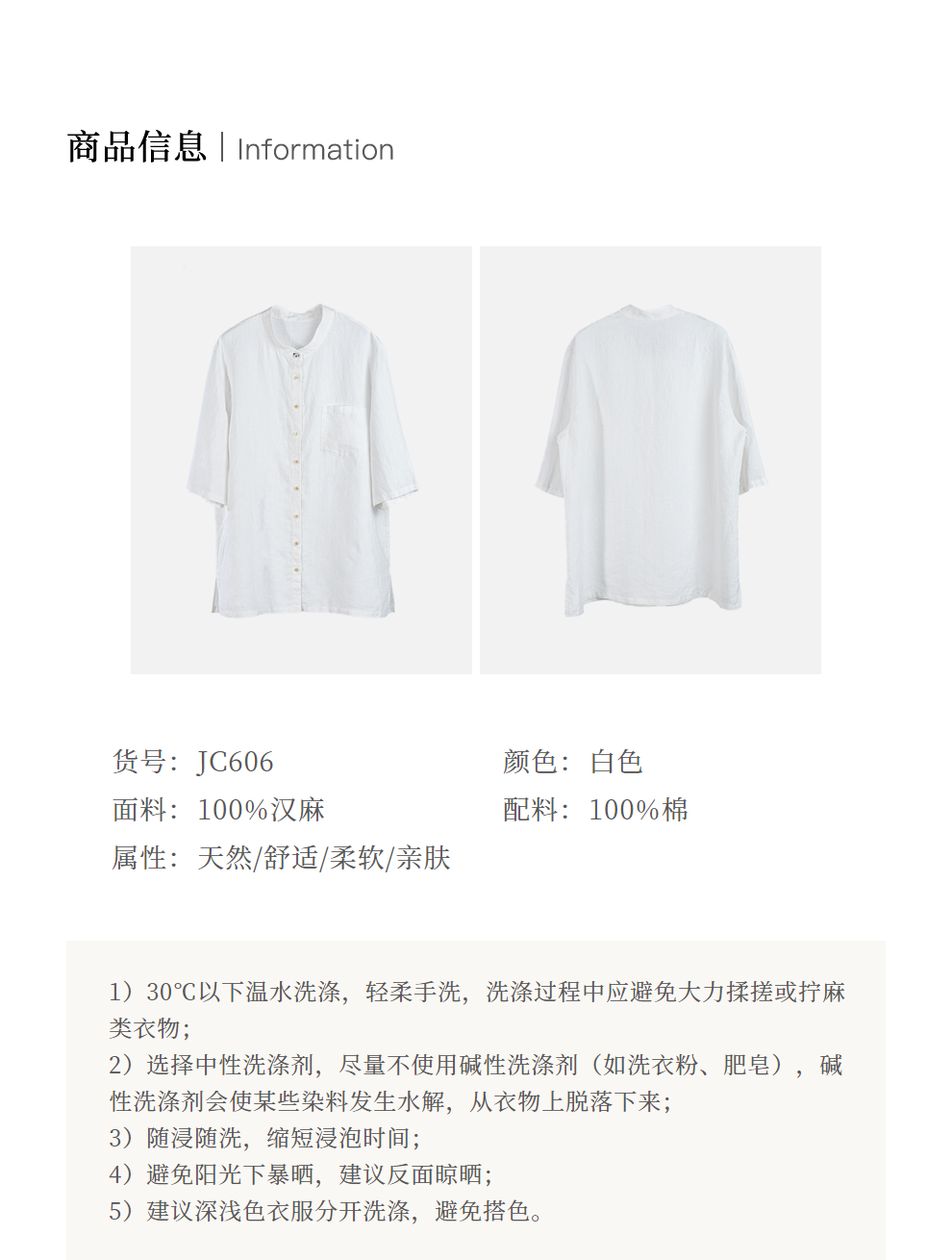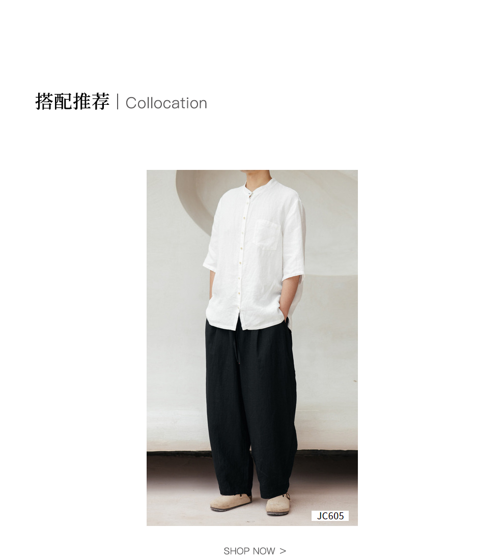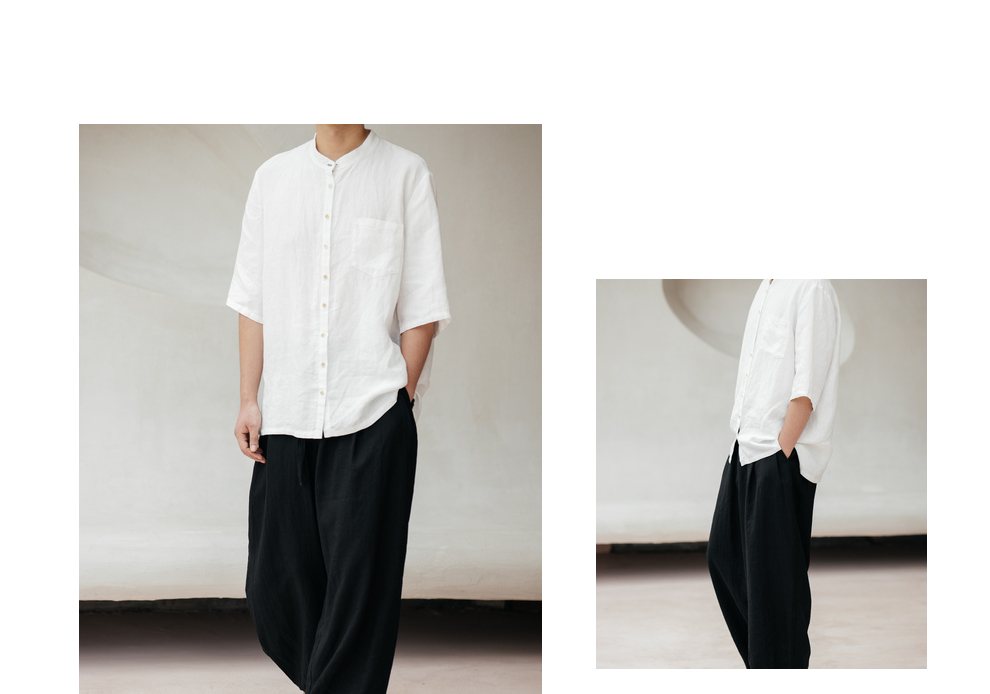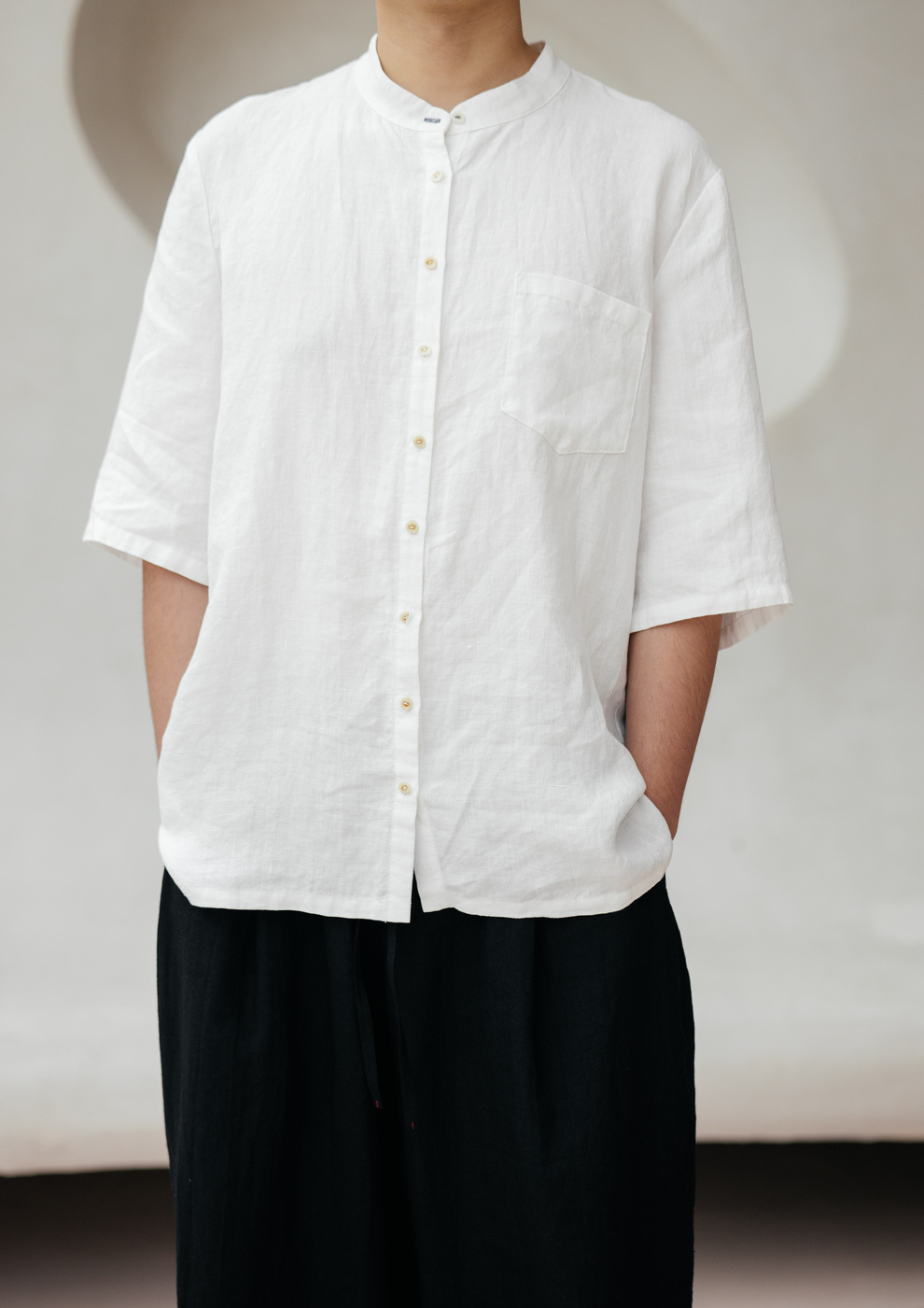 绽放606朵【黑白灰】2025男装汉麻中式精致立领白色中袖直襟小衫