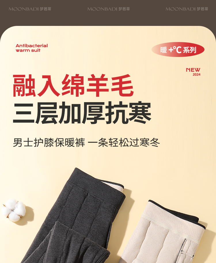 【100%绵羊毛】加厚500g男士保暖裤蓄热锁温护腰护膝裤男士绗缝轻柔保暖裤
