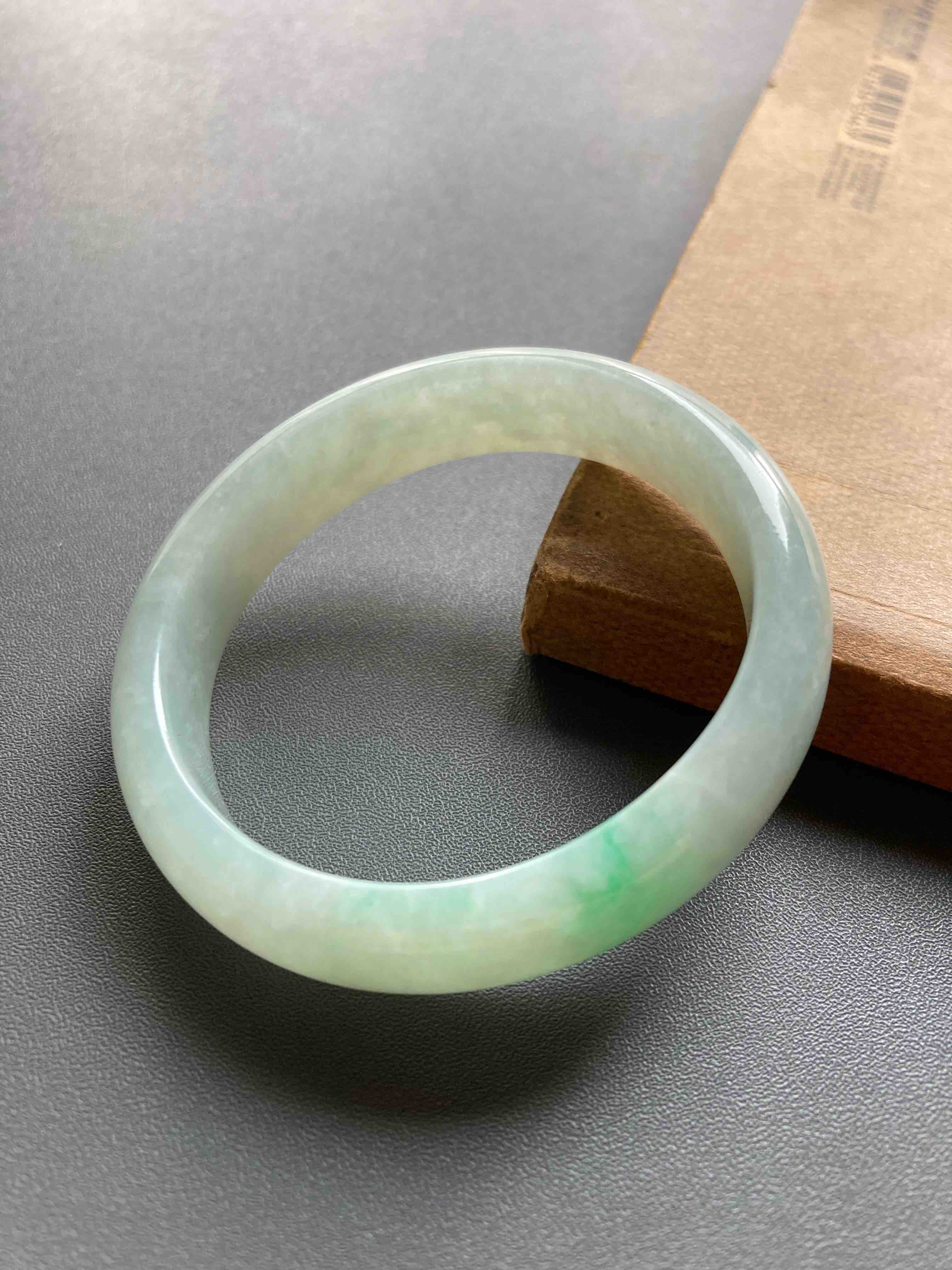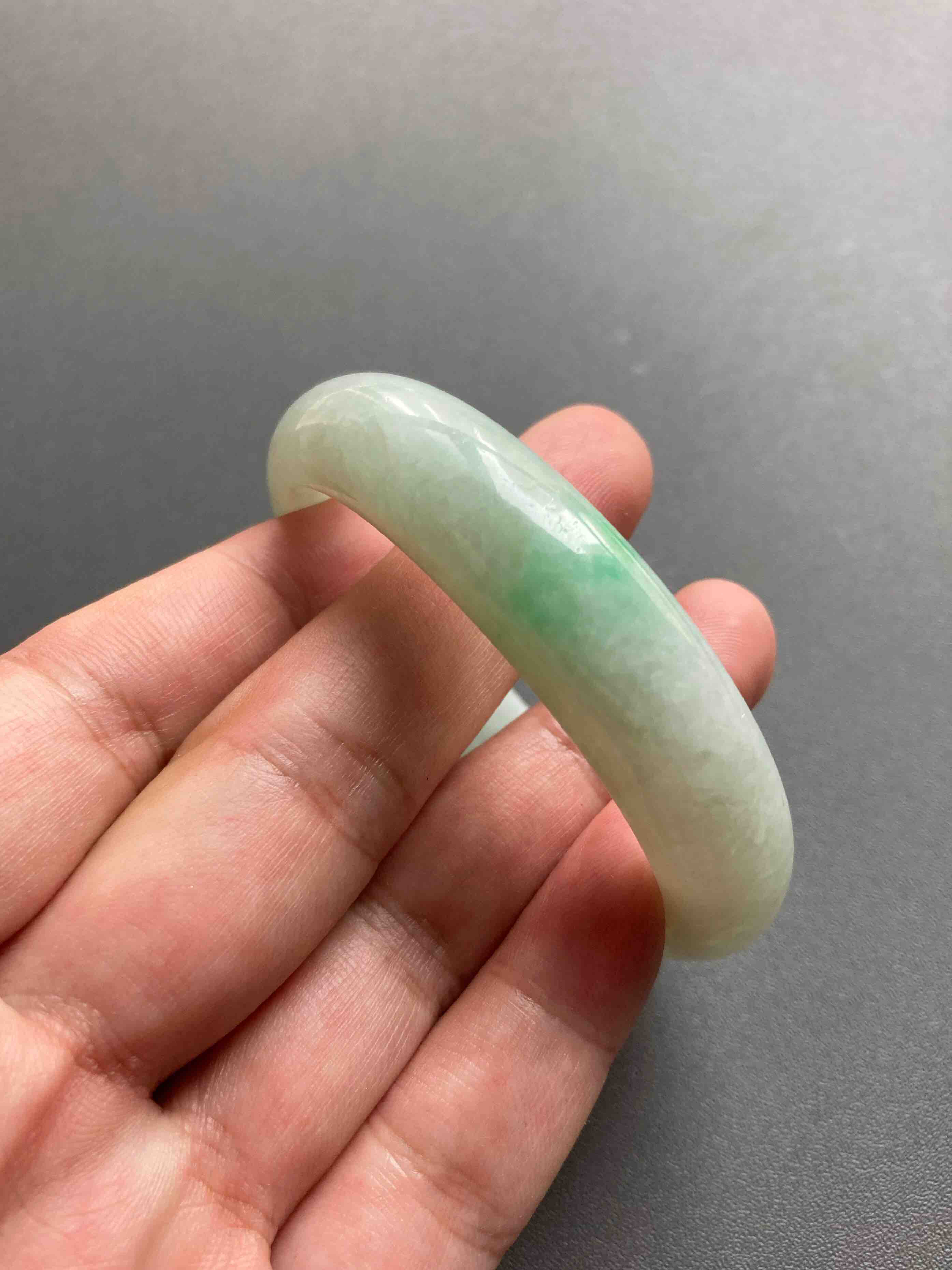 糯冰种晴水绿飘花翡翠细圆条手镯53