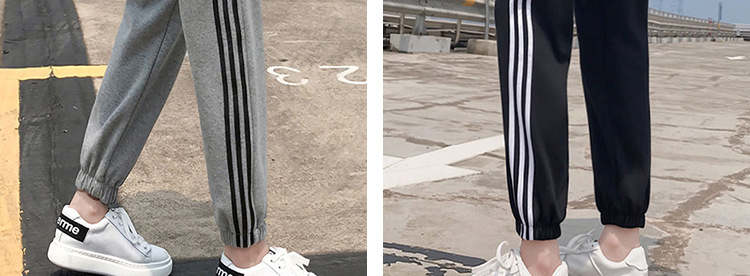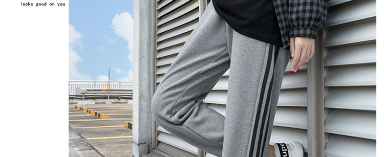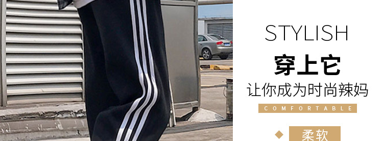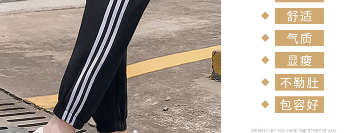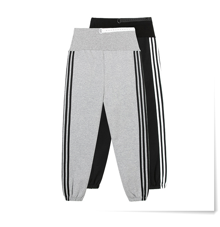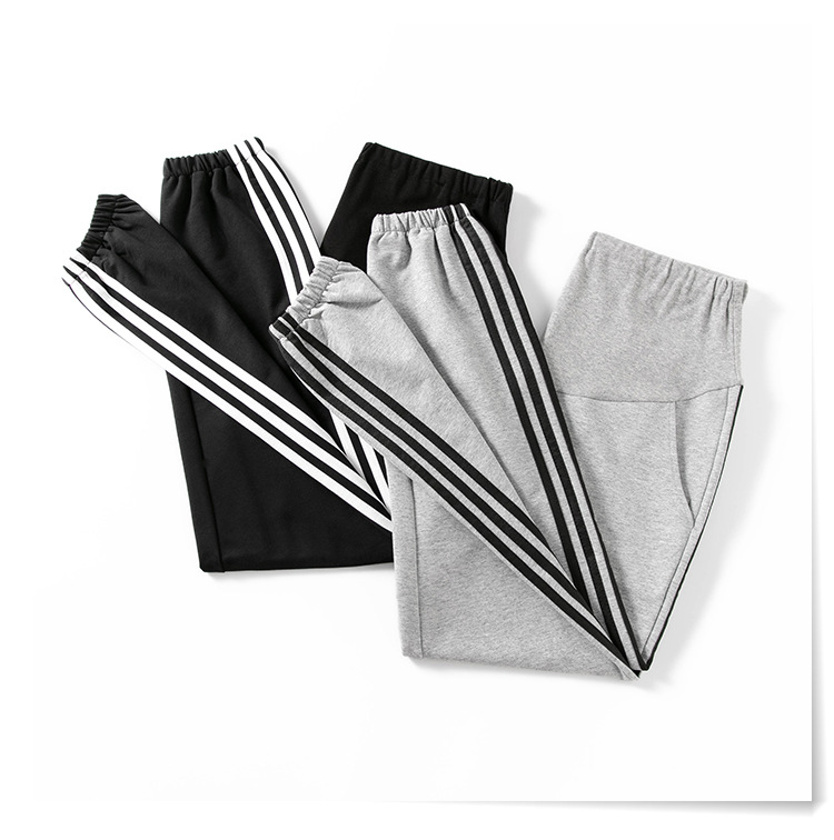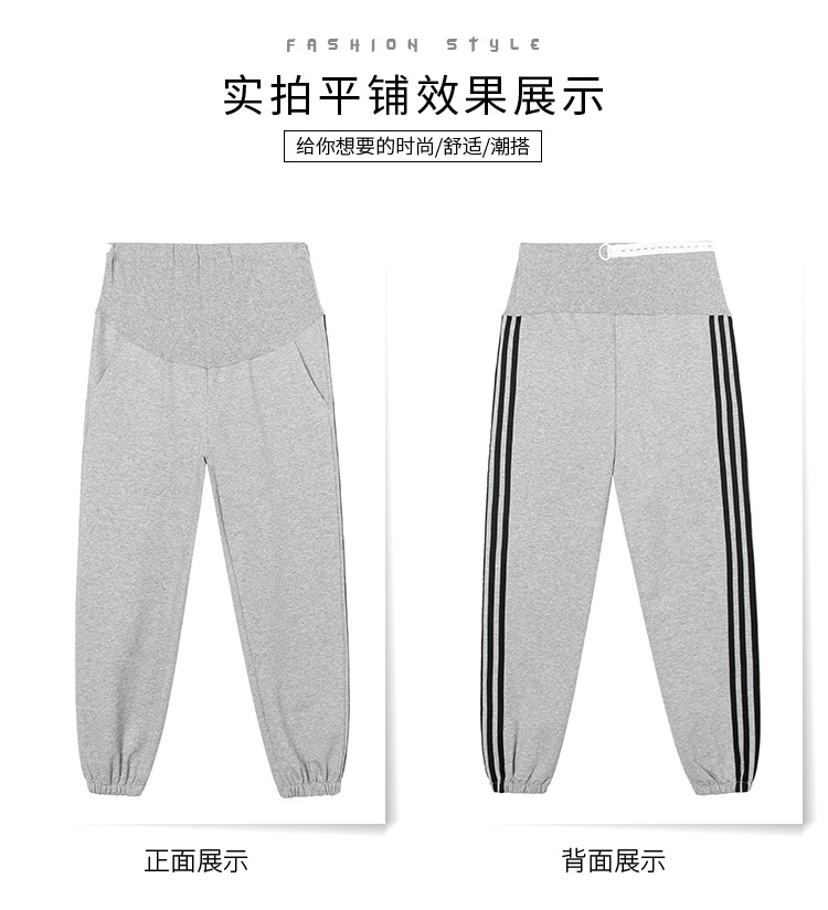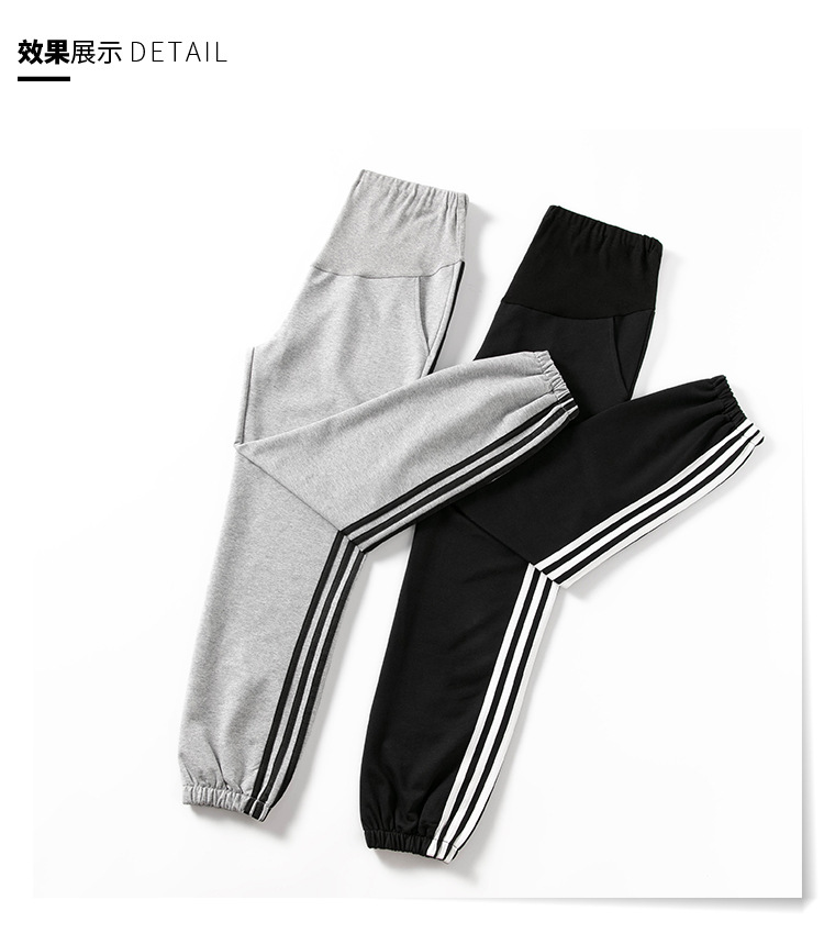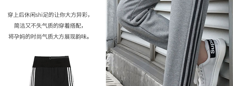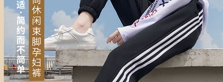 【时尚休闲 舒适显瘦】春秋季孕妇裤纯棉托腹条纹阔腿束脚裤长裤网红运动裤九分裤子