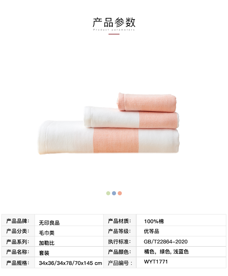 加勒比方巾面巾浴巾 无印良品