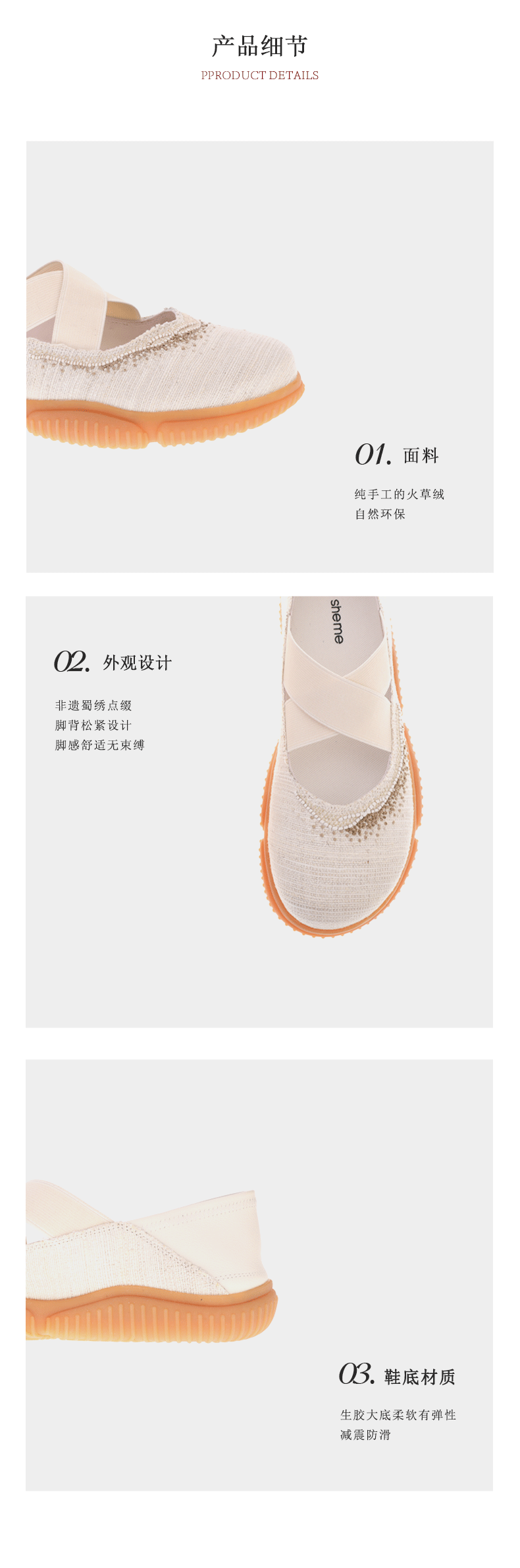 sheme原创设计羽翼鎏光系列刺绣点缀火草绒环保舒适柔软女士单鞋可定制