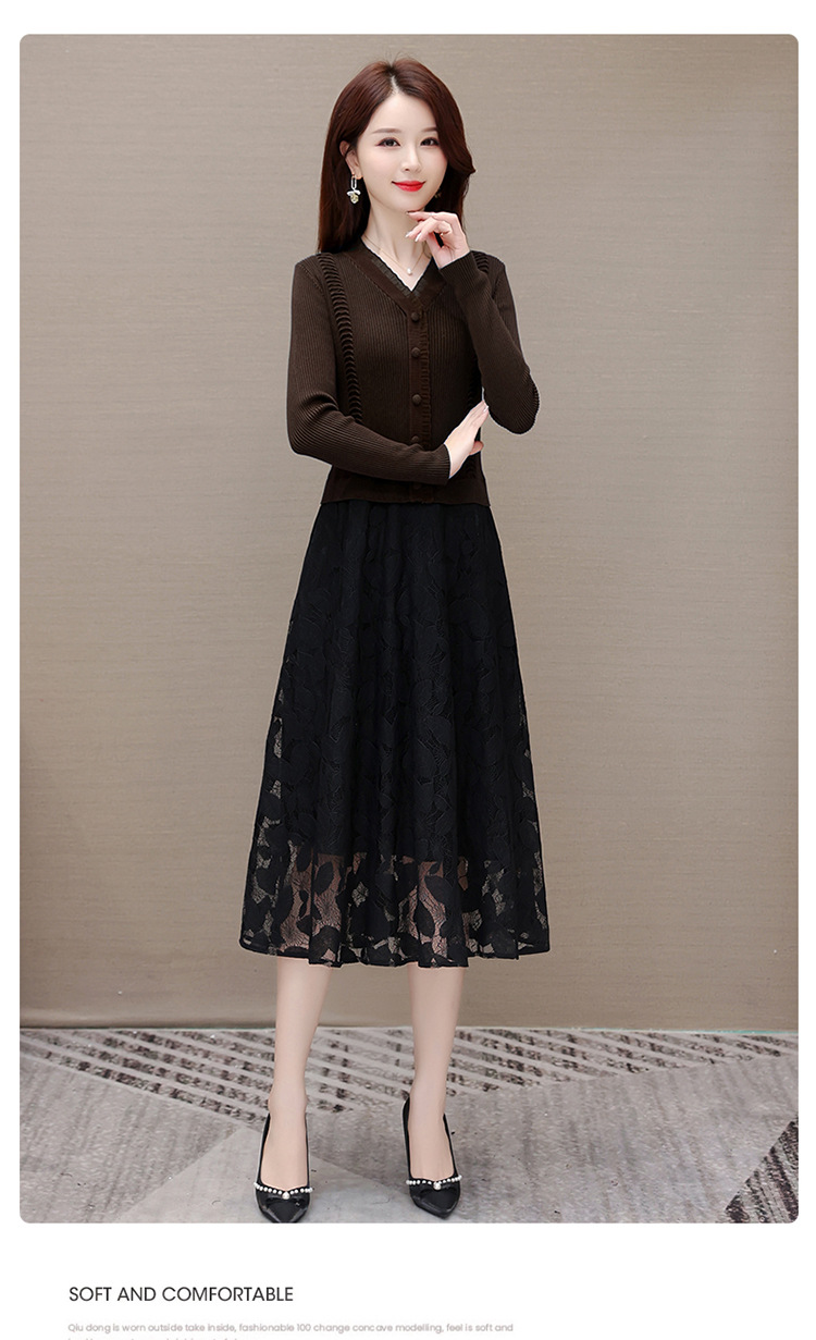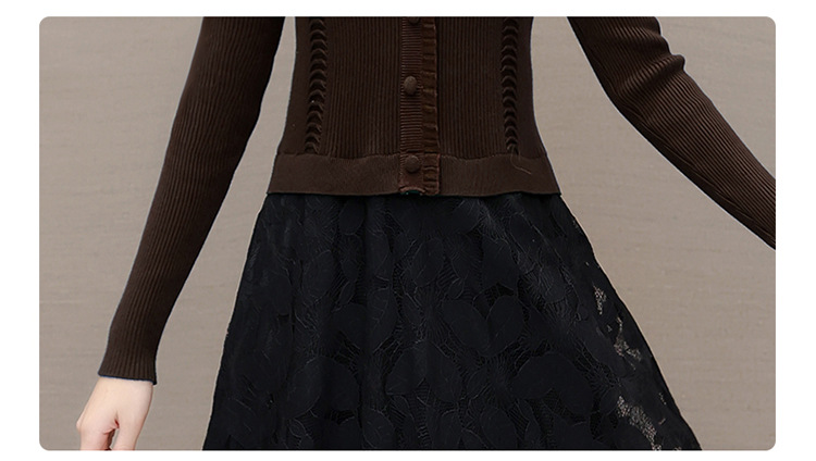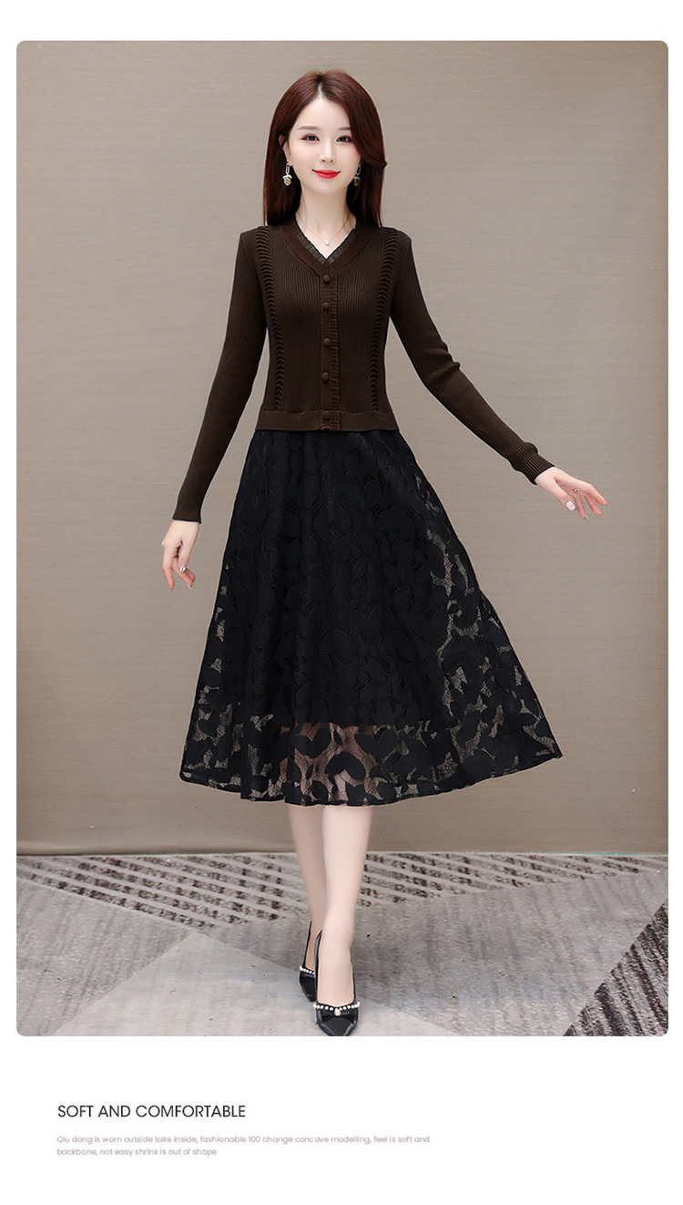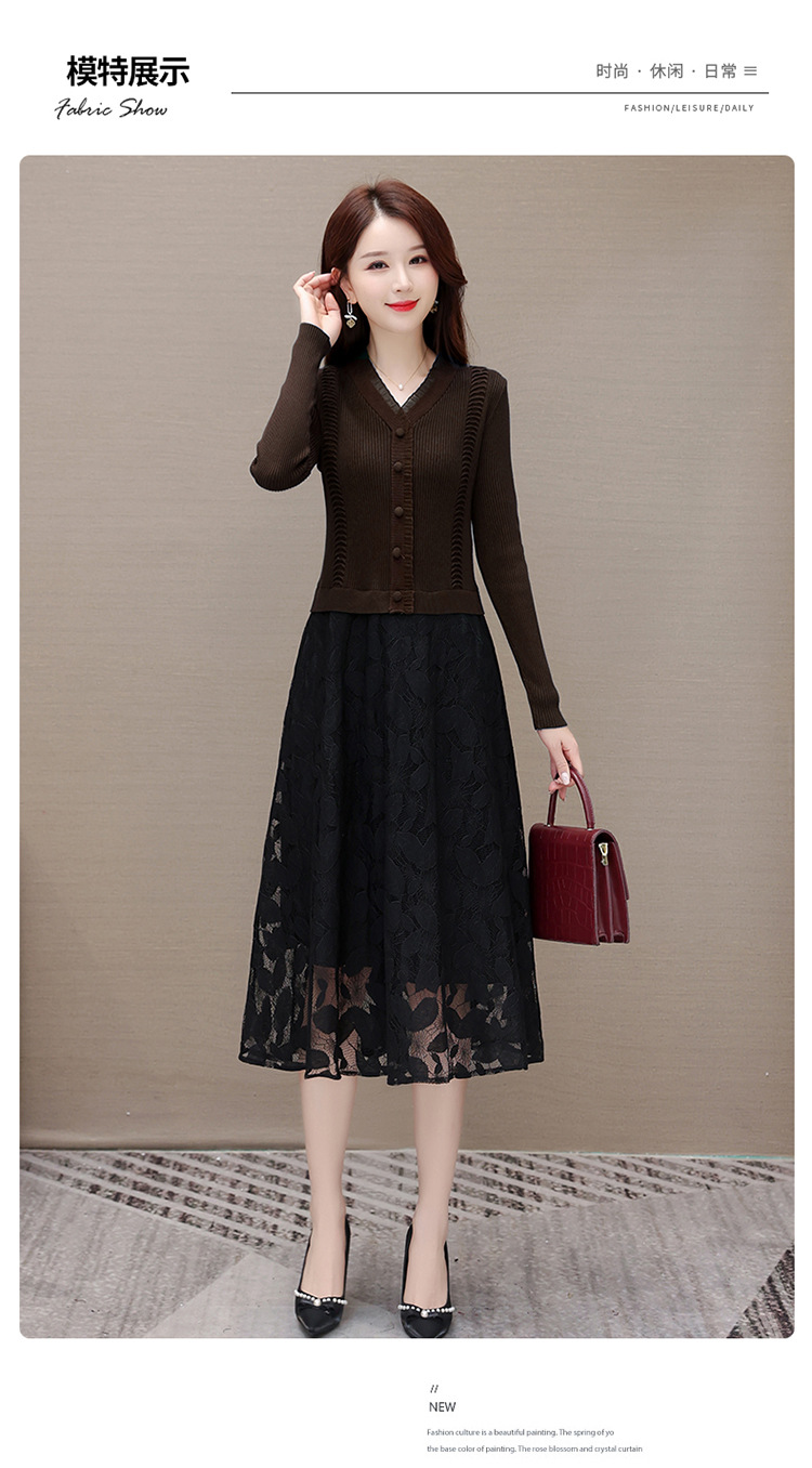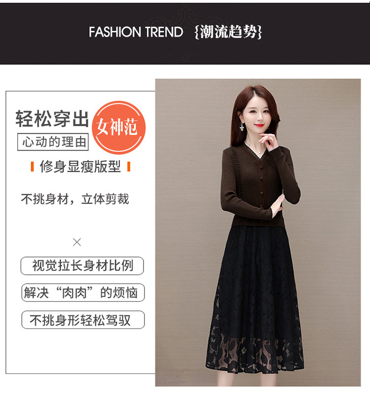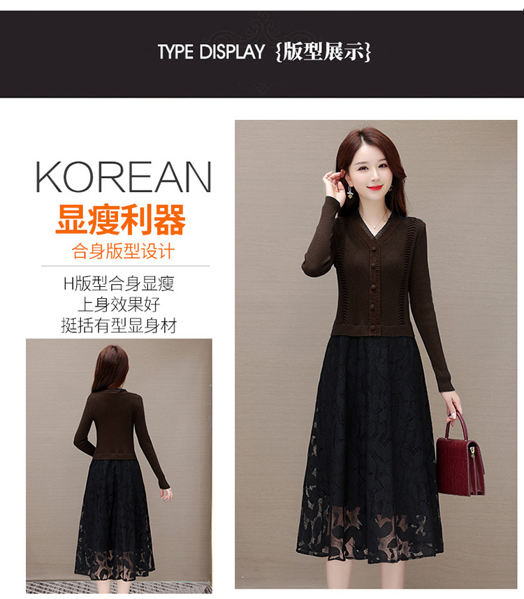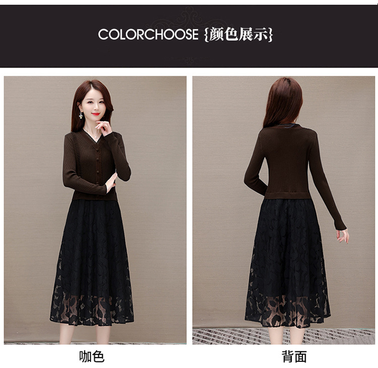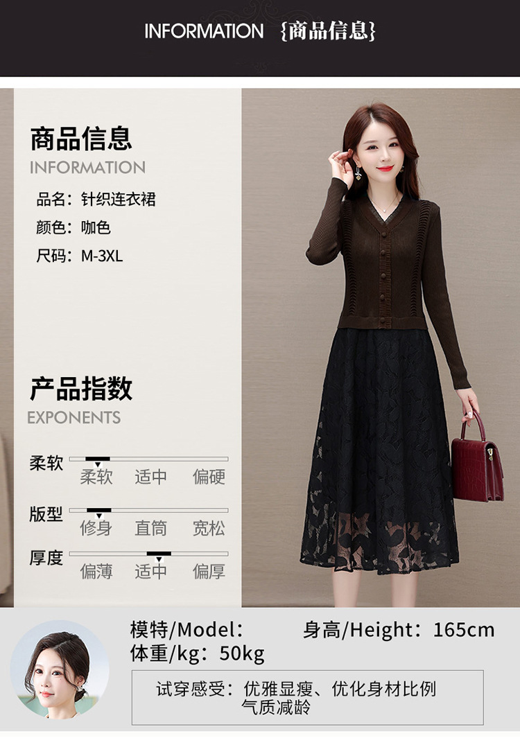 QYM A2303-1-Y假两件针织连衣裙毛线裙拼结蕾丝纱网裙