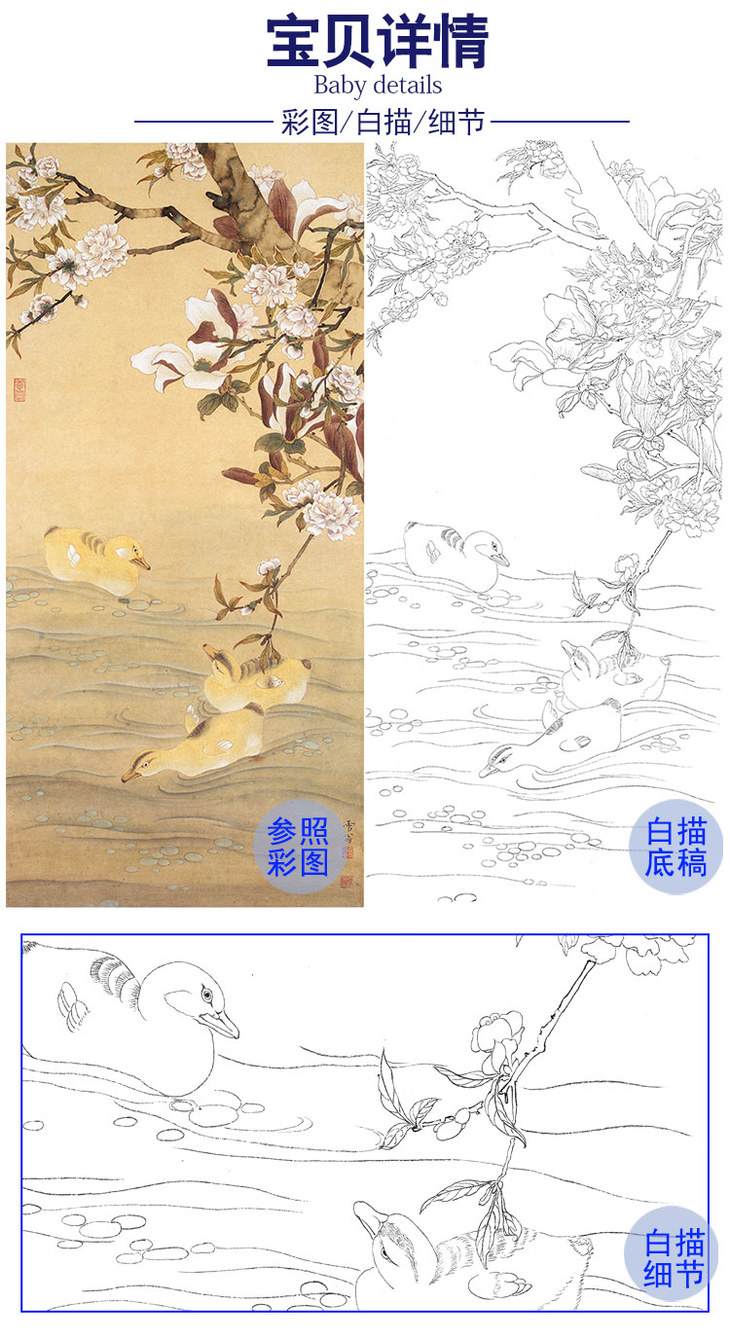陈之佛竖幅工笔花鸟白描底稿-《春堂乳鸭》-多种白描尺寸可选-QA65