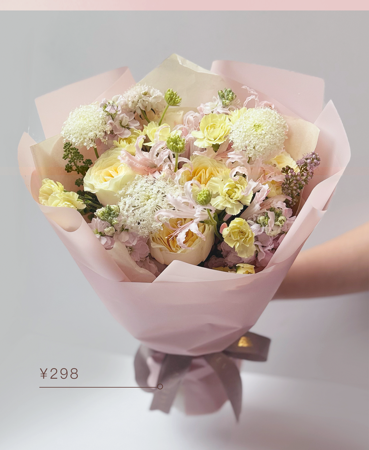 温馨提示:因季节不同会对花材进行调整,整体按图片色系进行搭配。