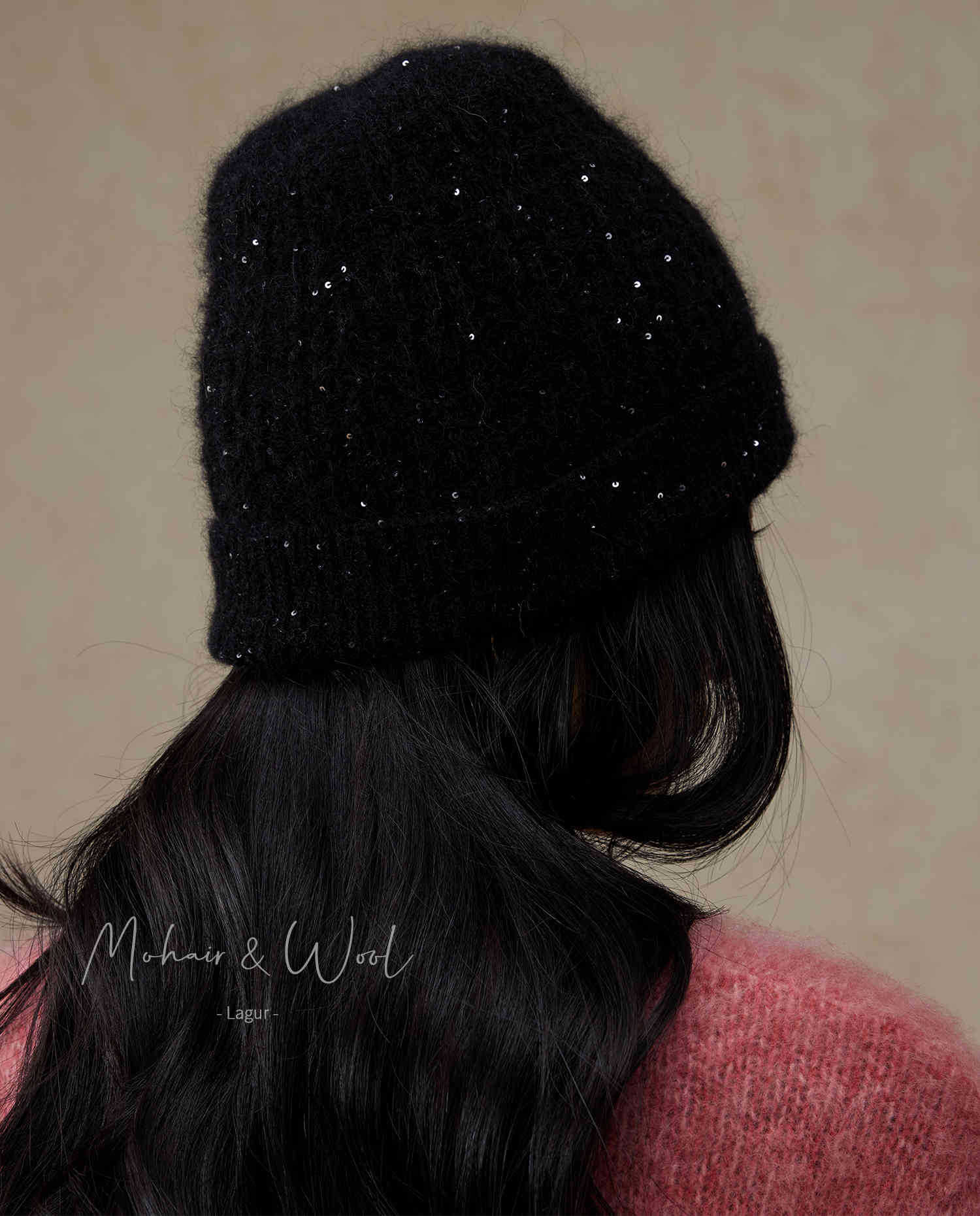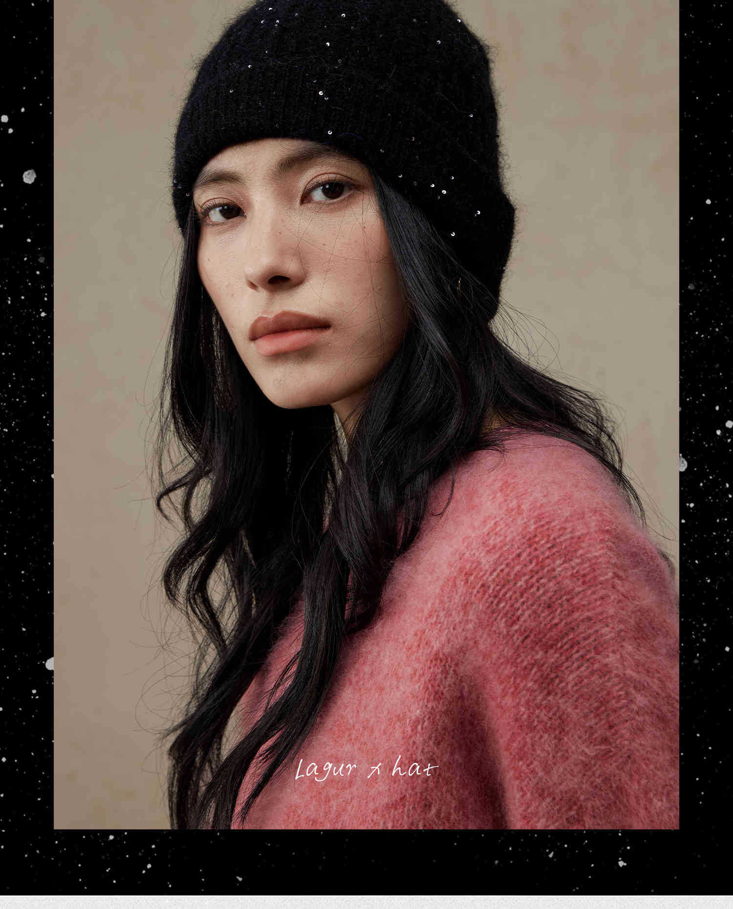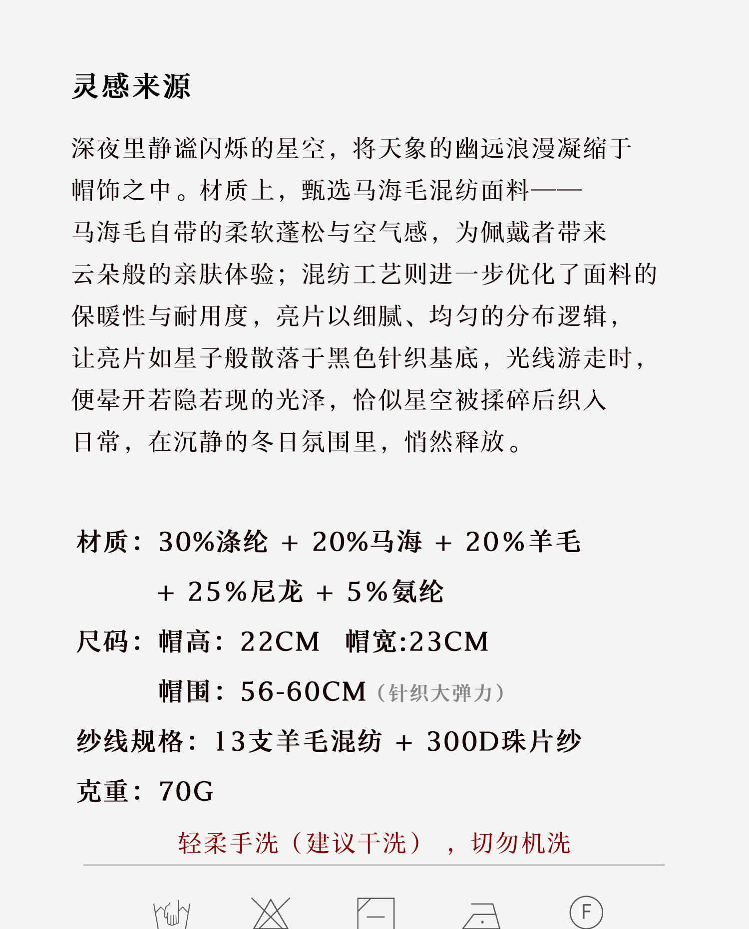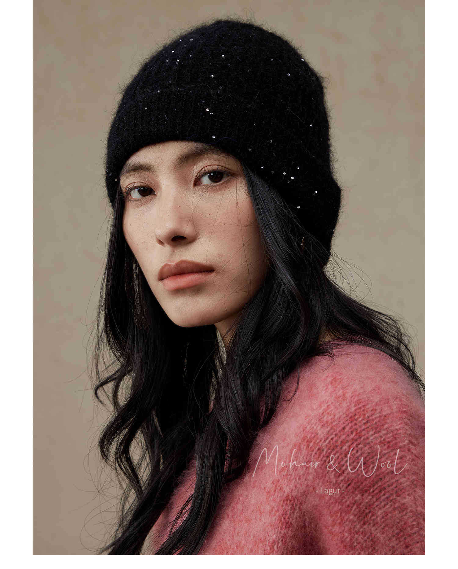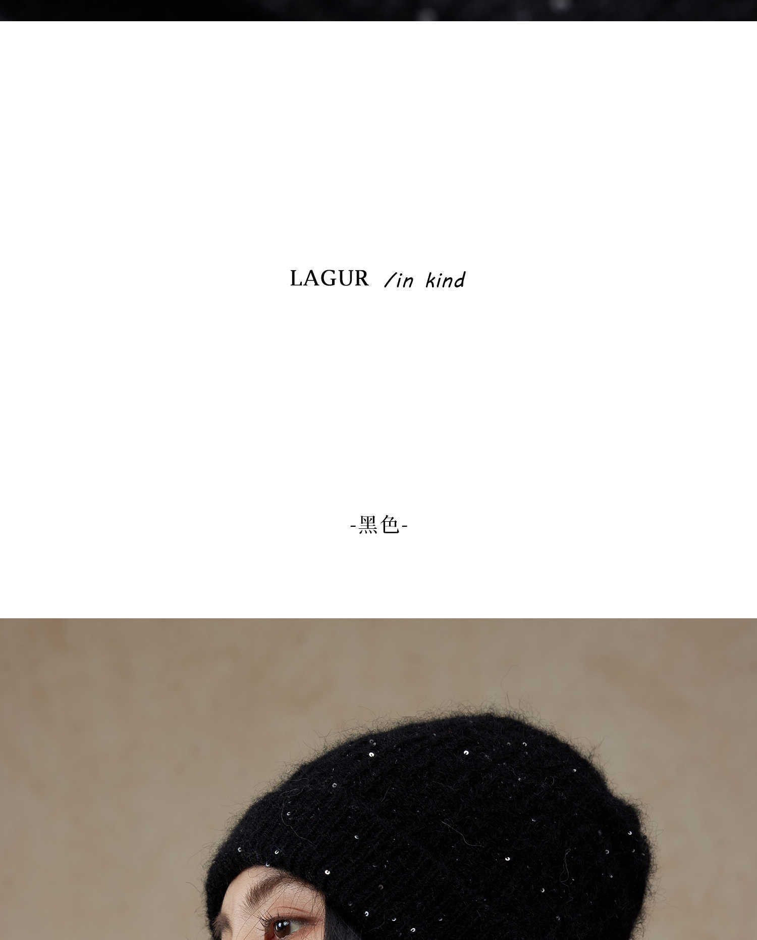 Lagur(沉静星空)亮片编织马海毛混纺加厚针织帽保暖包头帽女冬