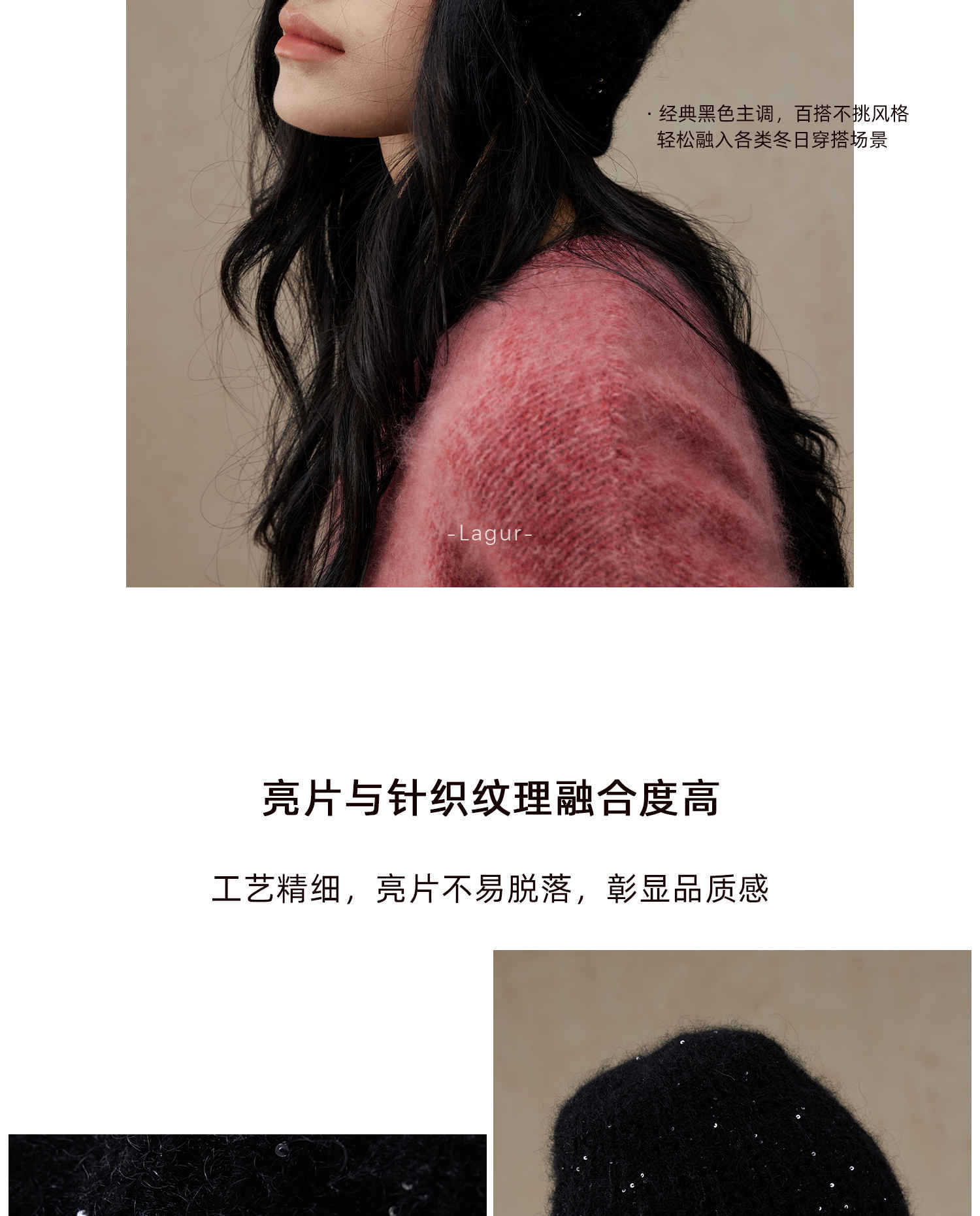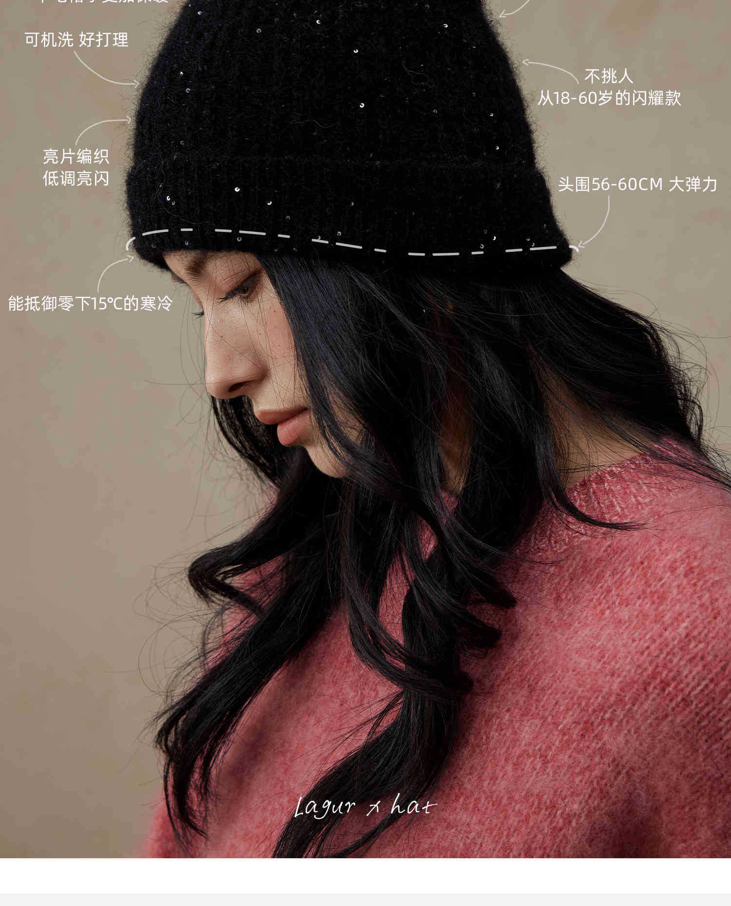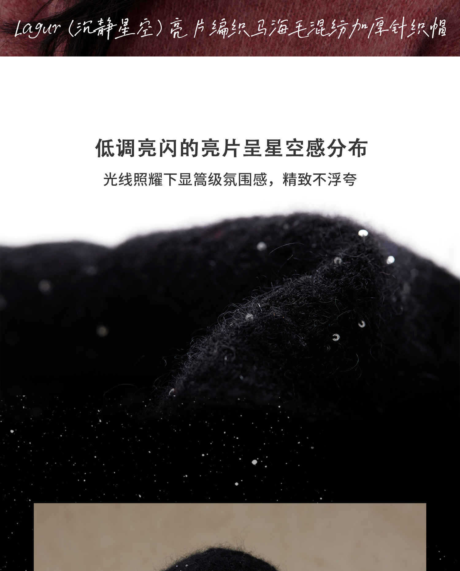 Lagur(沉静星空)亮片编织马海毛混纺加厚针织帽保暖包头帽女冬 商品图4