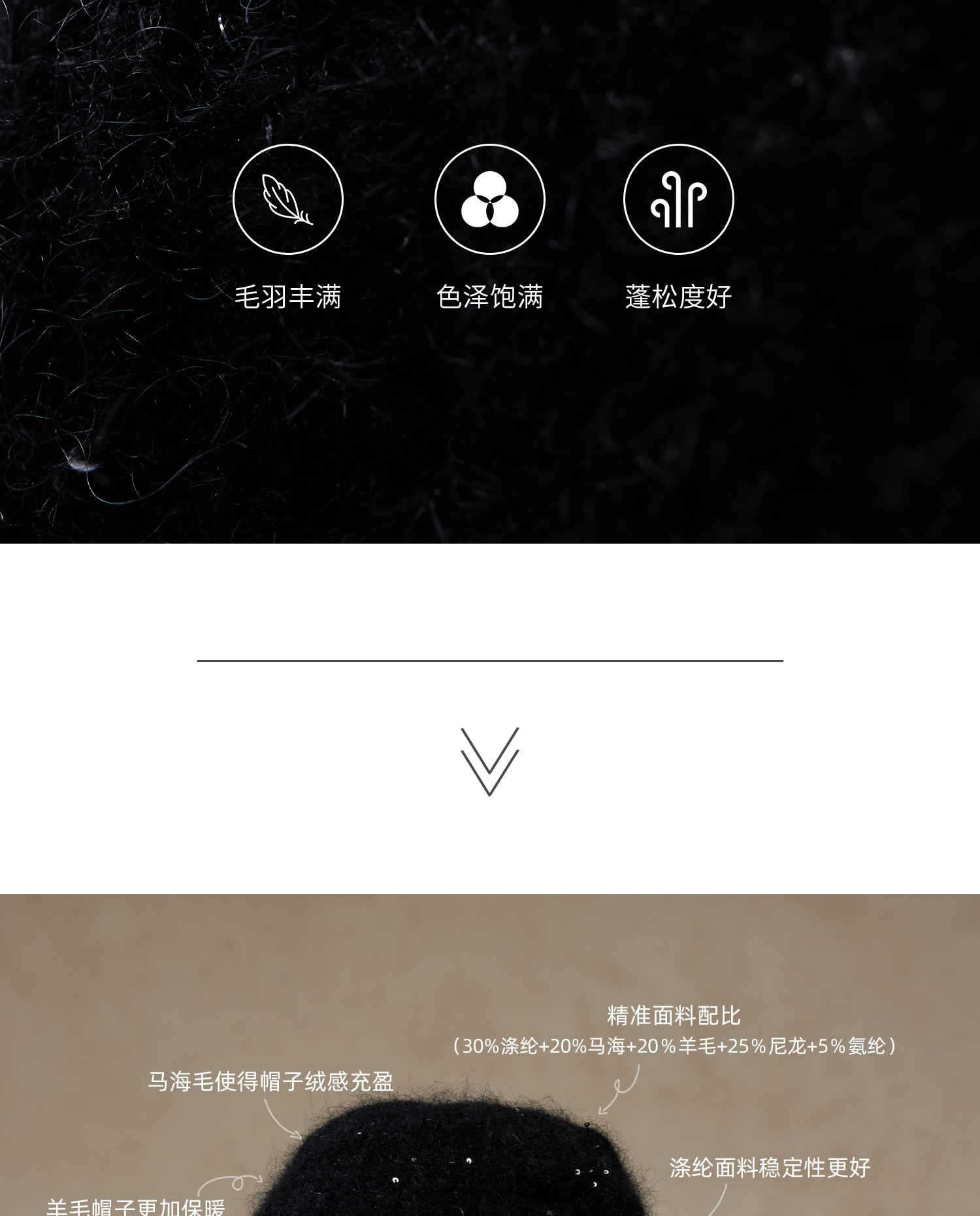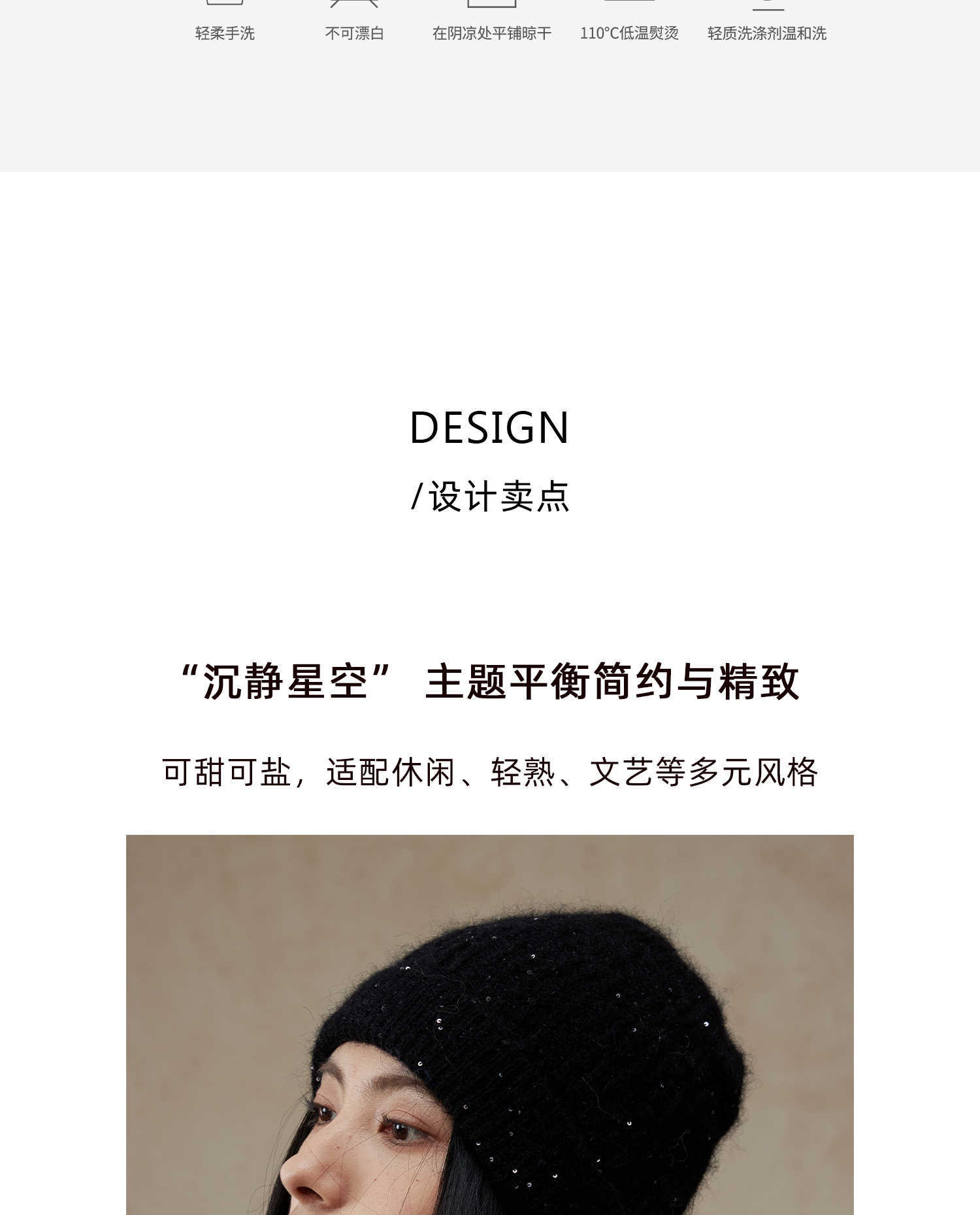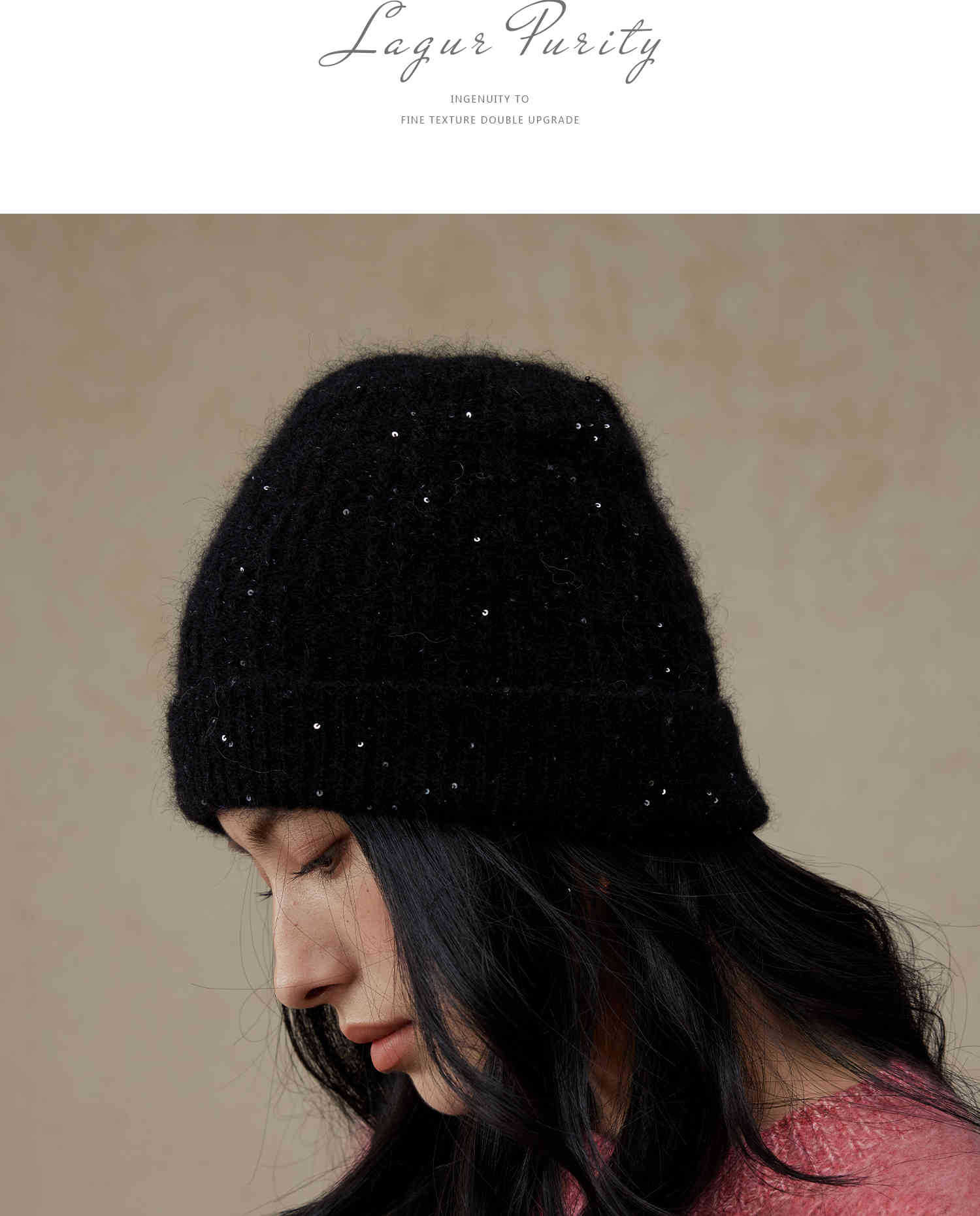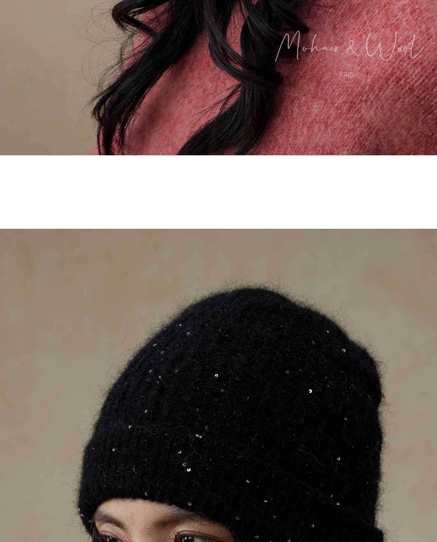 Lagur(沉静星空)亮片编织马海毛混纺加厚针织帽保暖包头帽女冬 商品图4