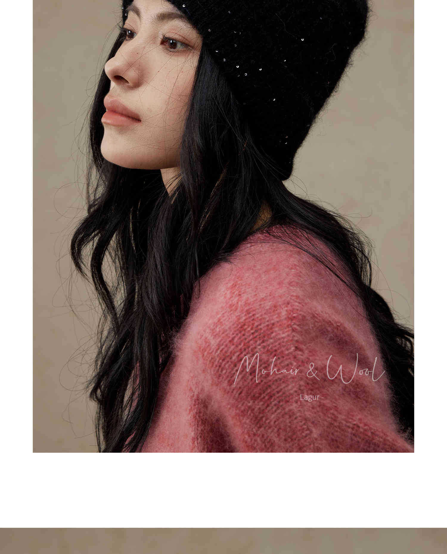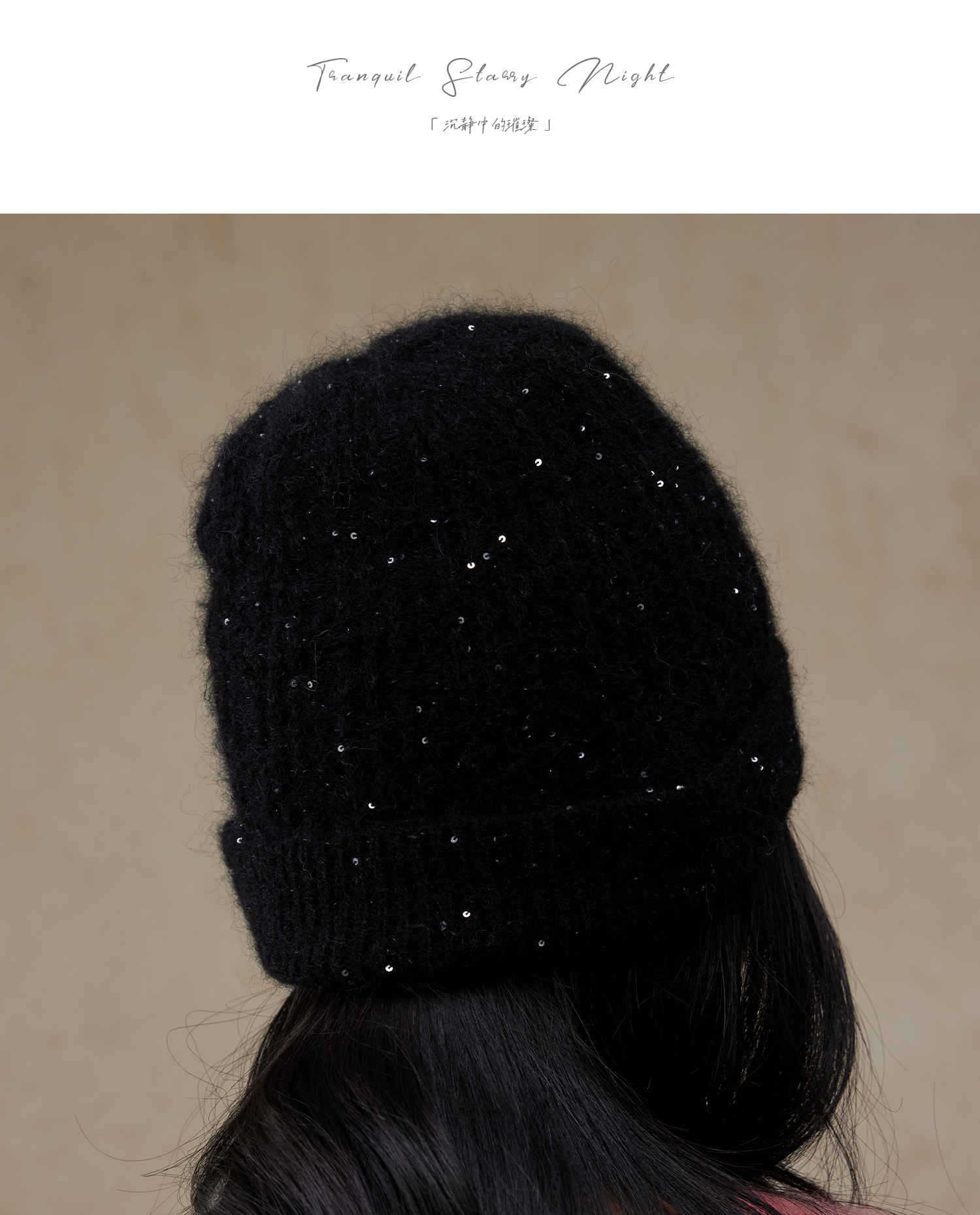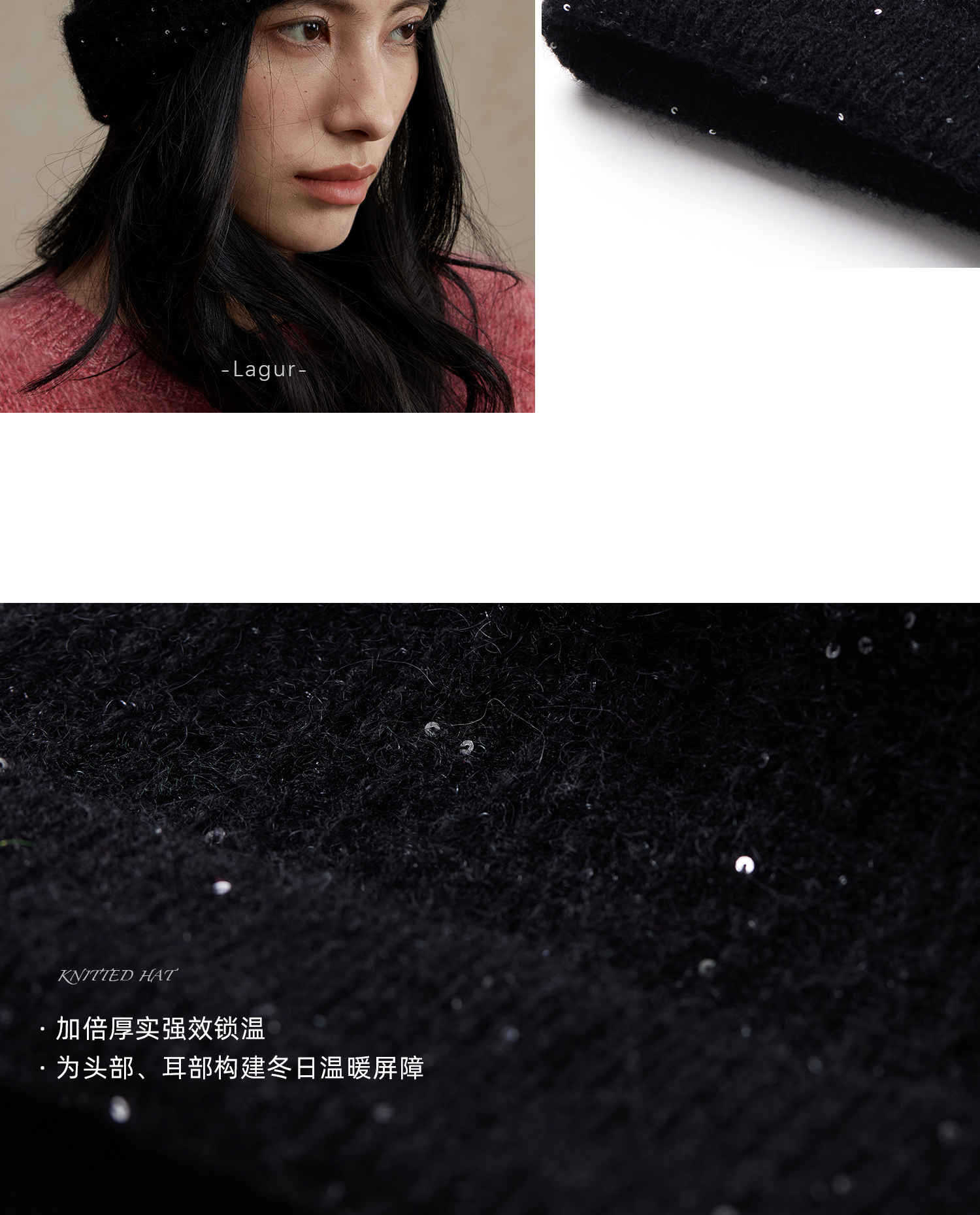 Lagur(沉静星空)亮片编织马海毛混纺加厚针织帽保暖包头帽女冬 商品图0