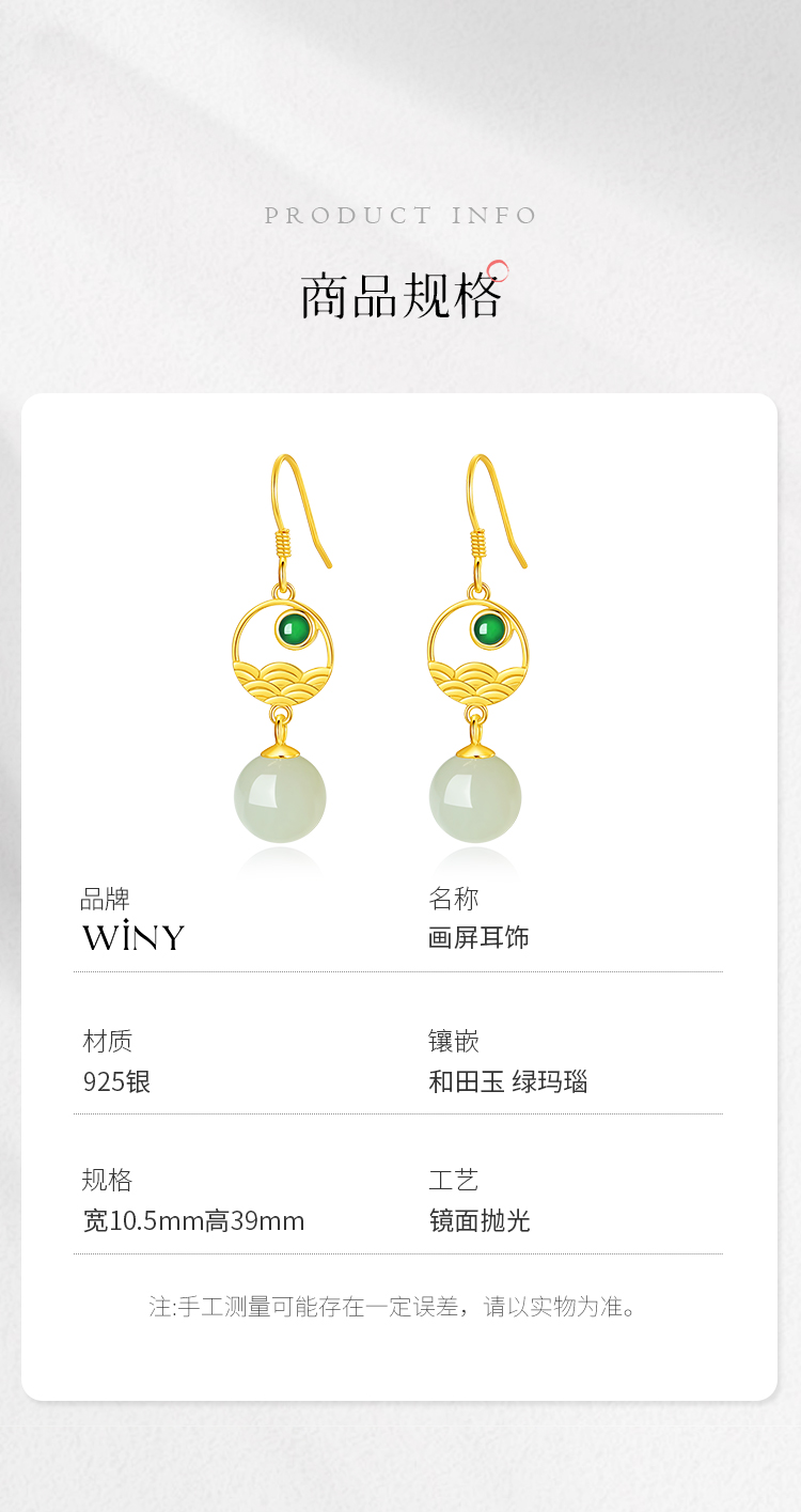 Winy925纯银画屏耳饰送女友闺蜜节日生日礼物