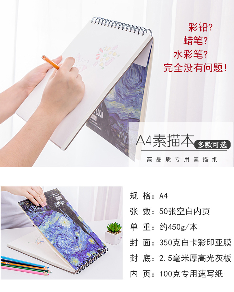 【一套四本】a4素描本美术绘画本 素描速写本儿童涂鸦图画本画纸画画手绘本子