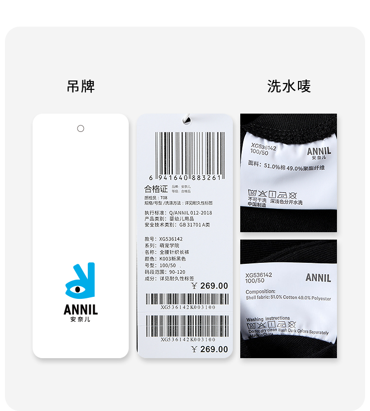 【实体店同款】女童全腰针织长裤秋季新款安奈儿童装XG536142