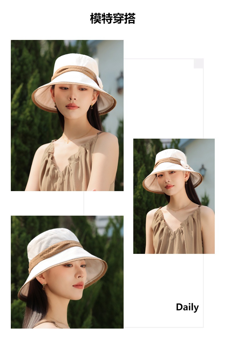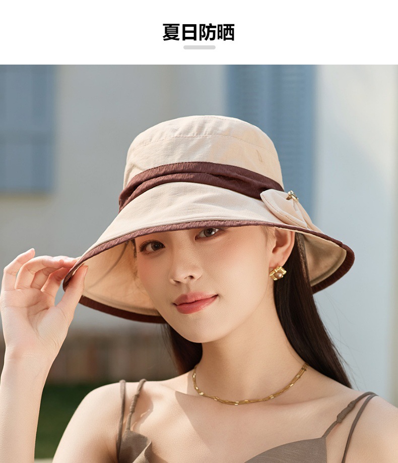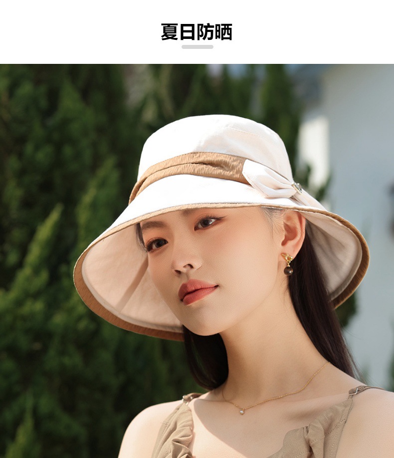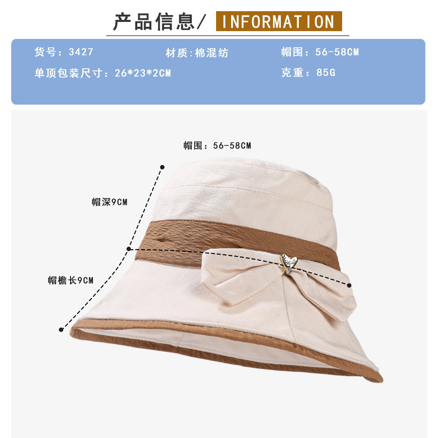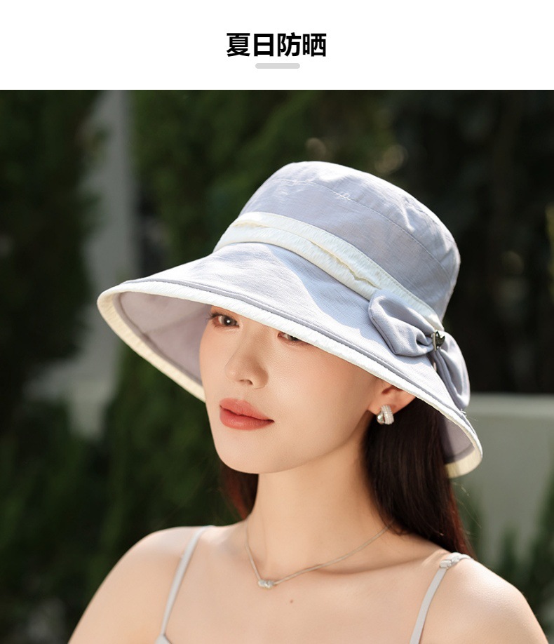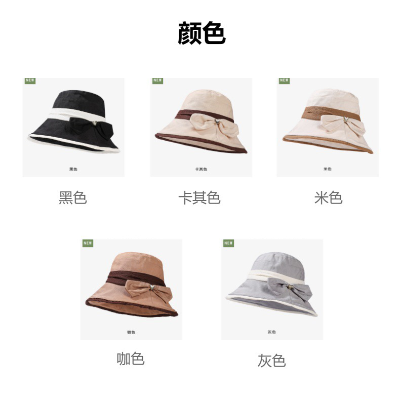 渔夫帽韩国拼色蝴蝶结透气防晒帽,减龄百搭户外大沿遮阳帽A14-1-3-M3427