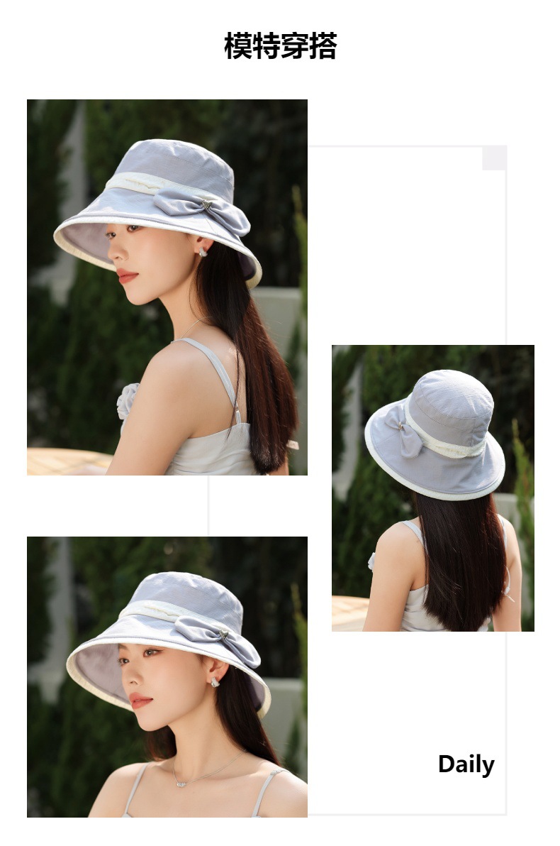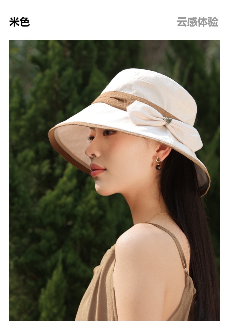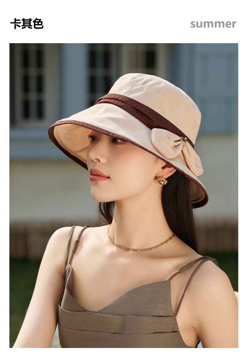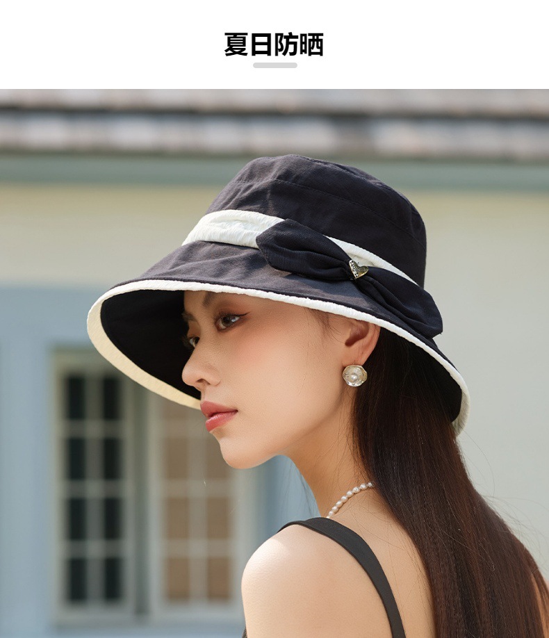 渔夫帽韩国拼色蝴蝶结透气防晒帽,减龄百搭户外大沿遮阳帽A14-1-3-M3427
