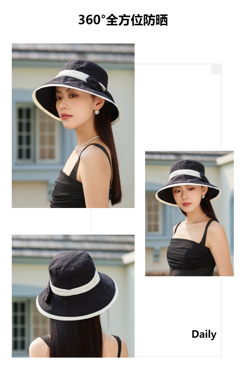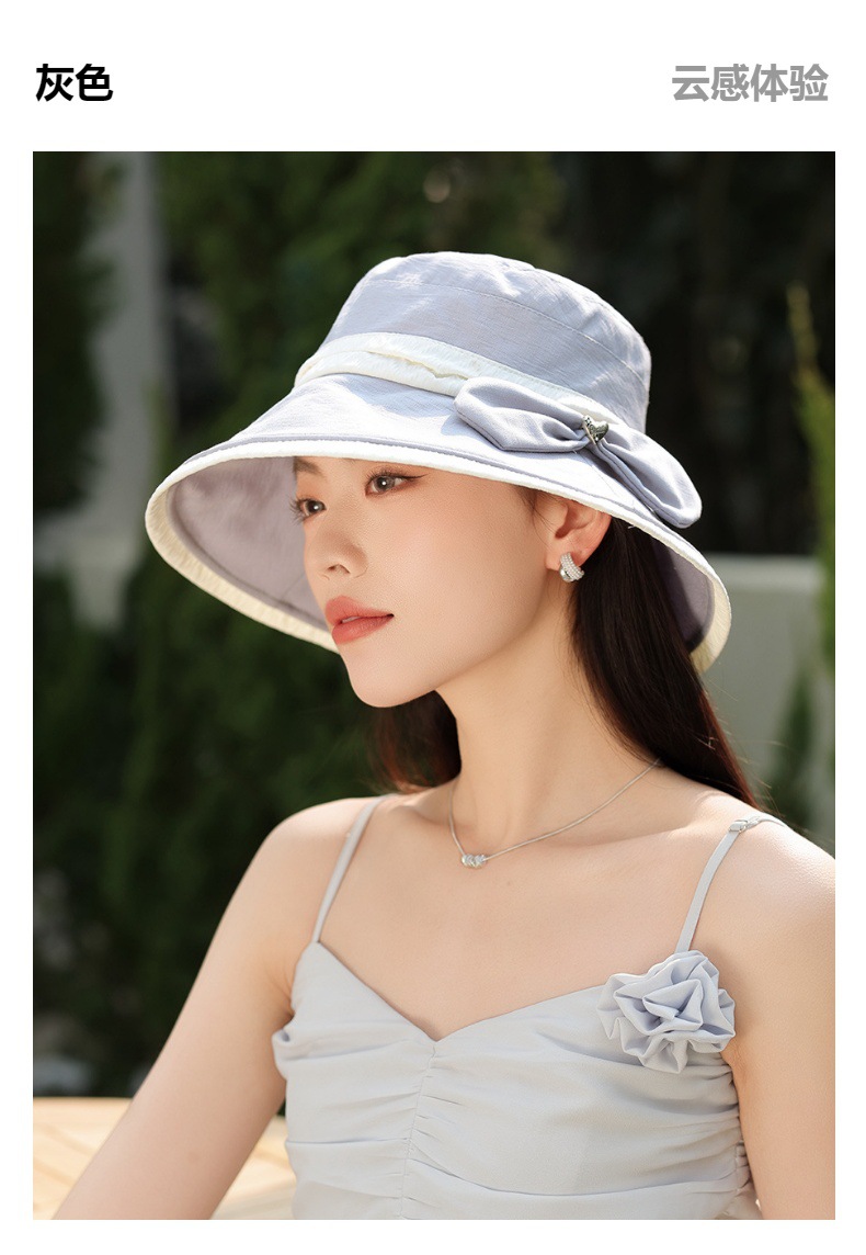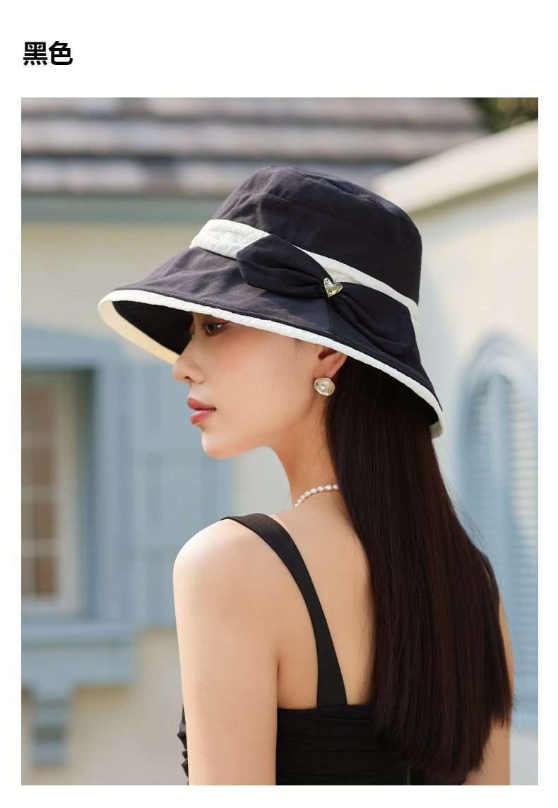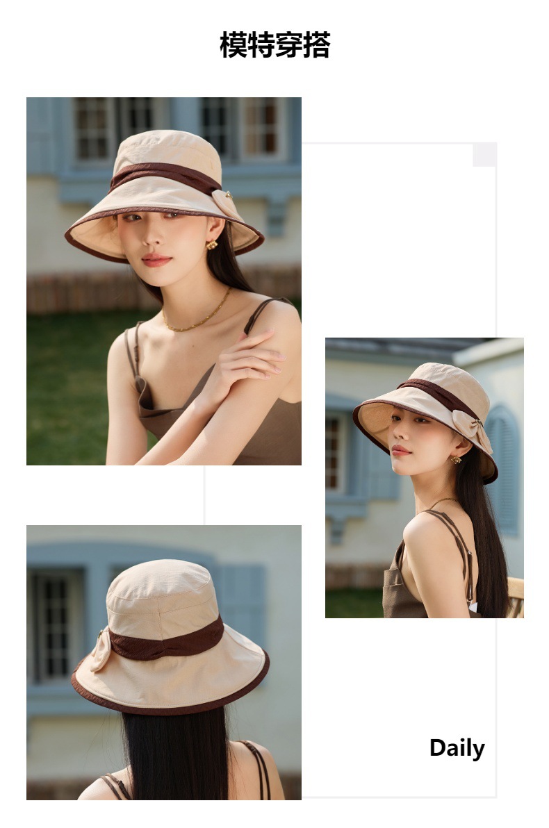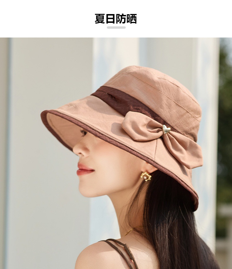 渔夫帽韩国拼色蝴蝶结透气防晒帽,减龄百搭户外大沿遮阳帽A14-1-3-M3427