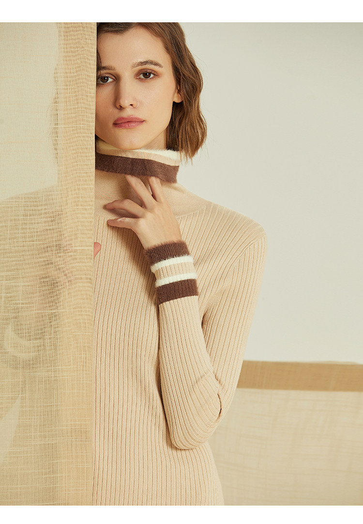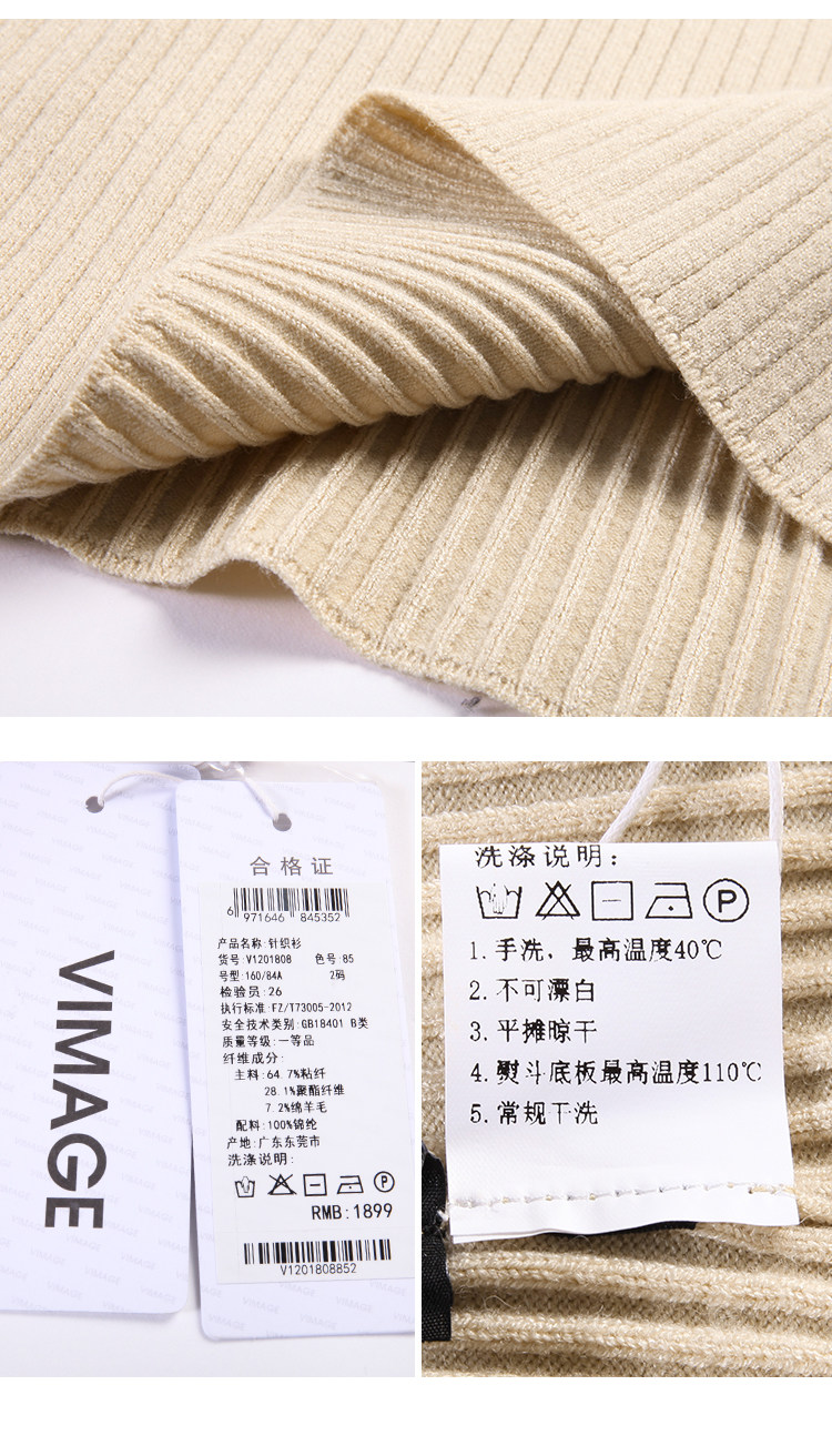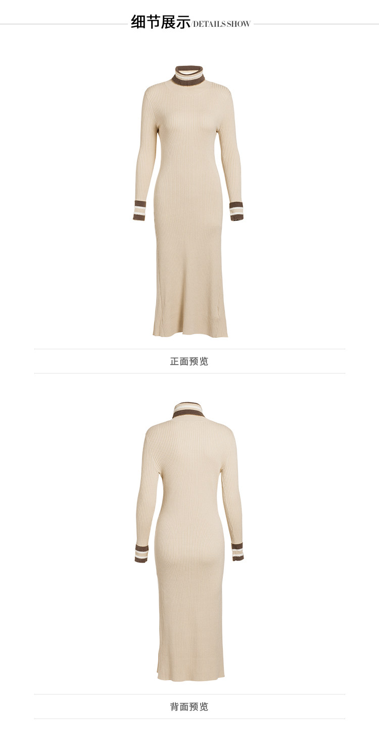 VIMAGE纬漫纪春款时尚通勤修身显瘦高领针织连衣裙女长款V1201808