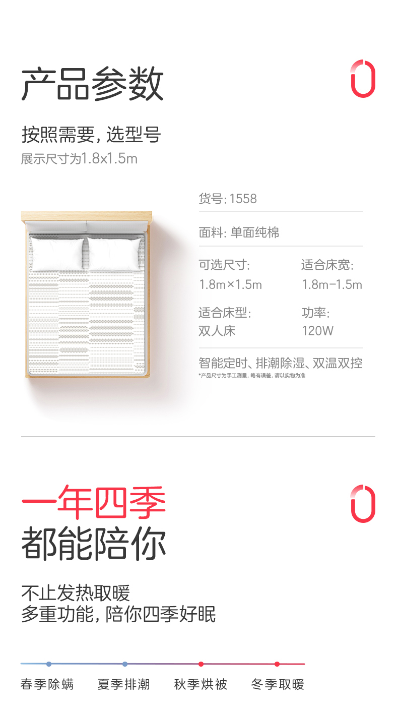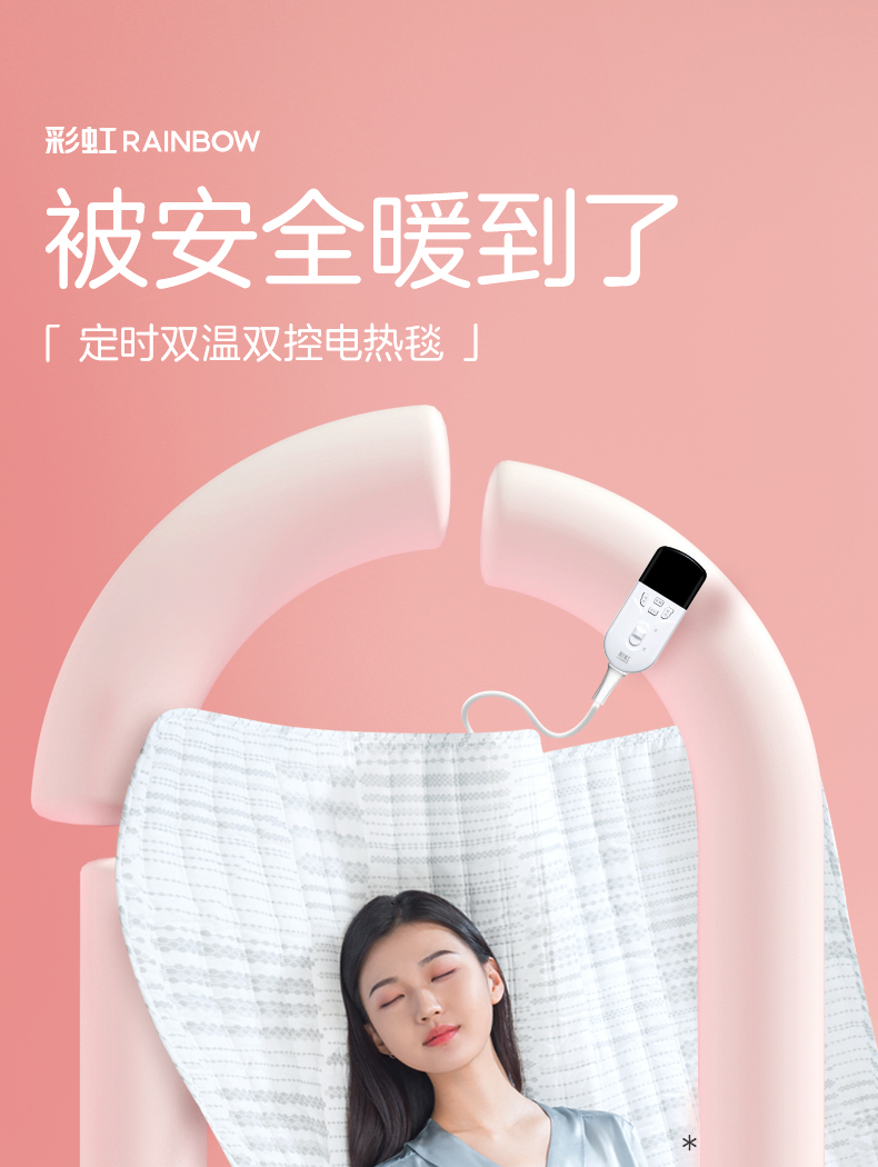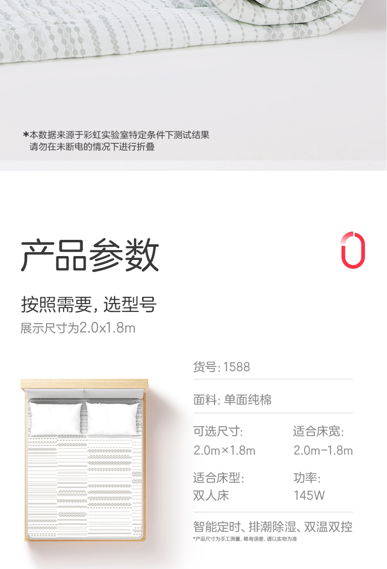 【Rainbow】彩虹电热毯(长1.8米*宽1.5米)双控双温电热毯双人单面纯棉 1558/1588【花色随机】