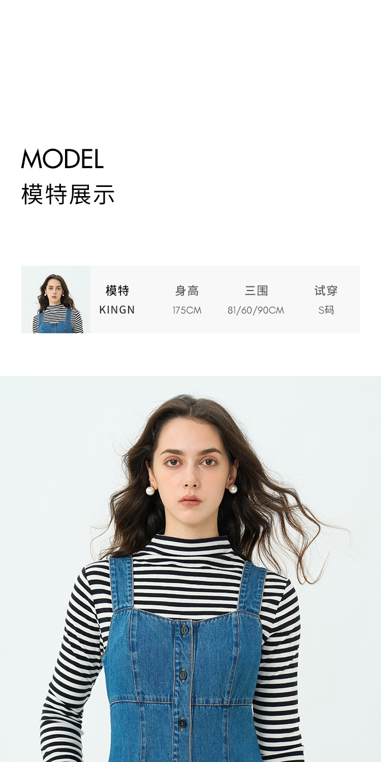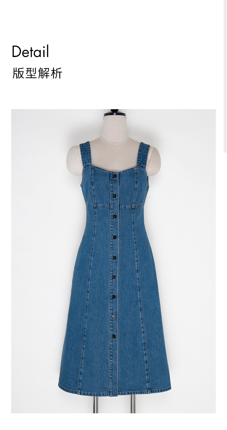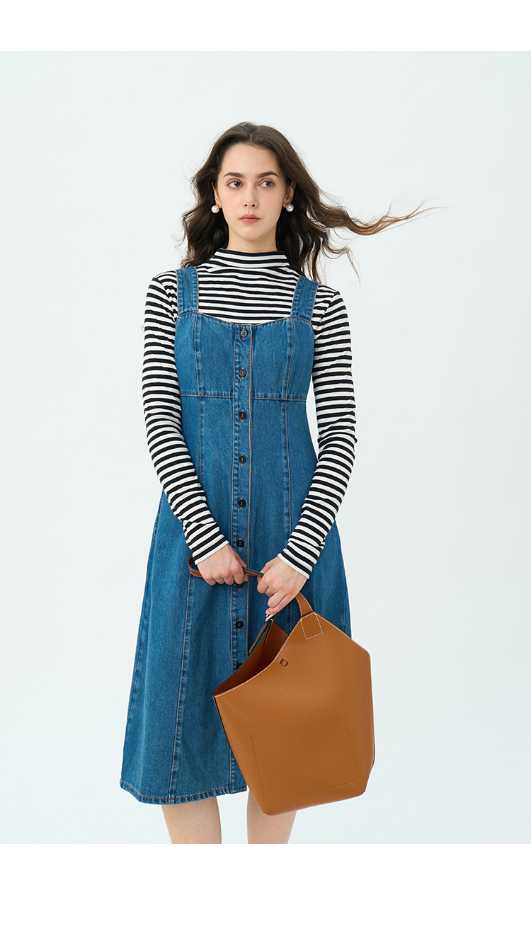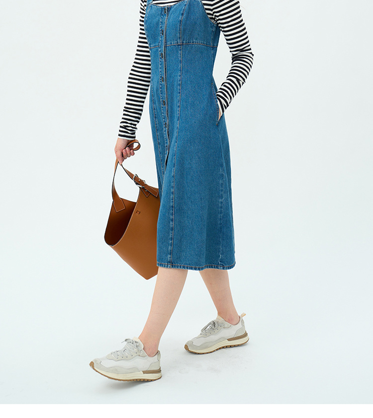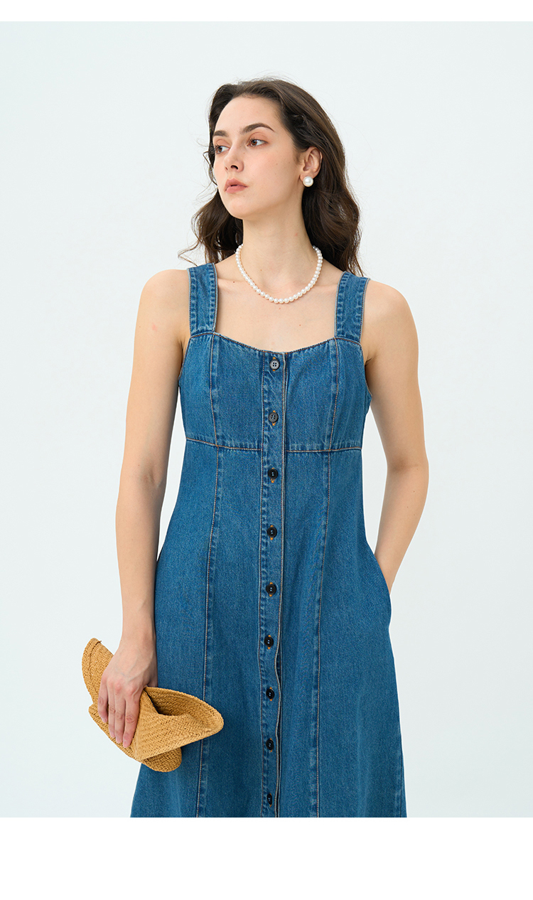 Heydress复古牛仔背带裙女春秋宽肩带A摆合体收腰时尚百搭连衣裙