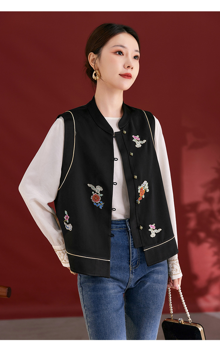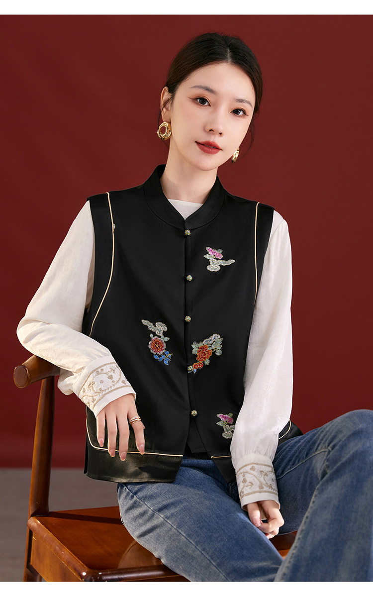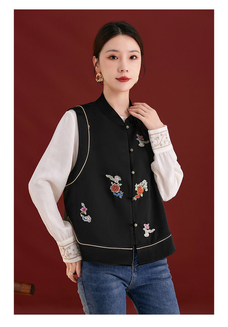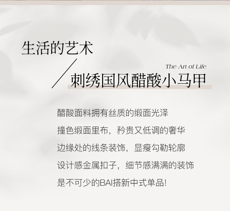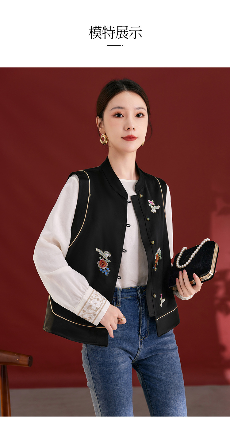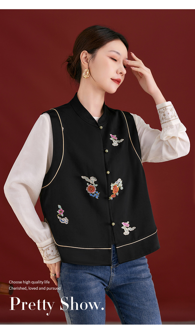 QS源头工厂秋季新款醋酸提花压皱面料重工刺绣马甲女新中式国风2367