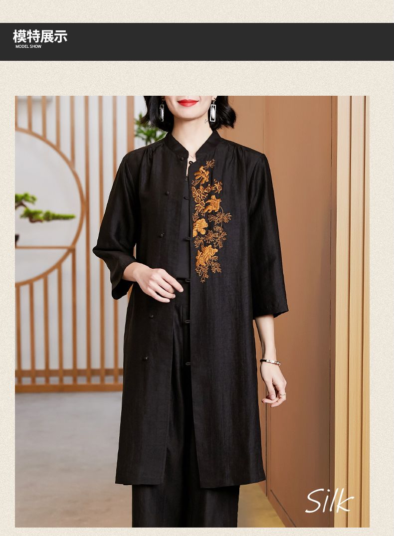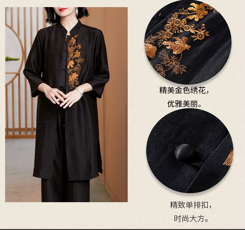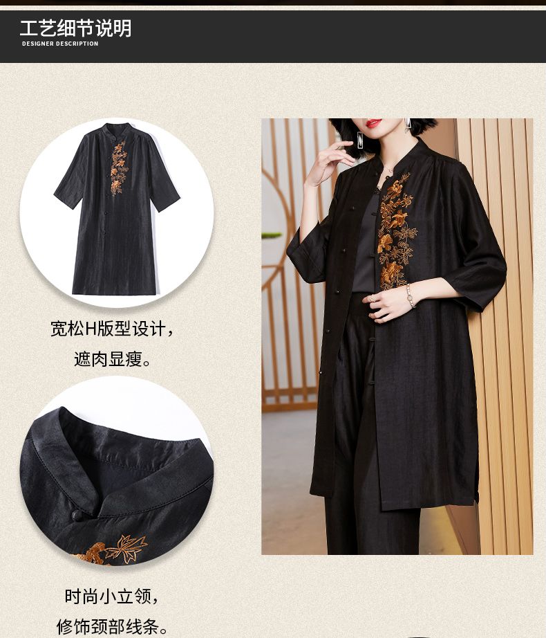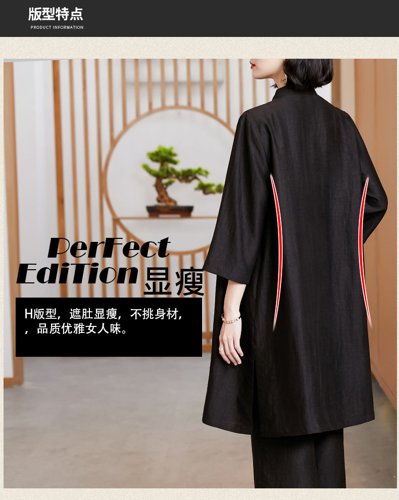 C08322 今年流行风衣外套女秋款外穿改良旗袍妈妈秋装开衫黑色裙子