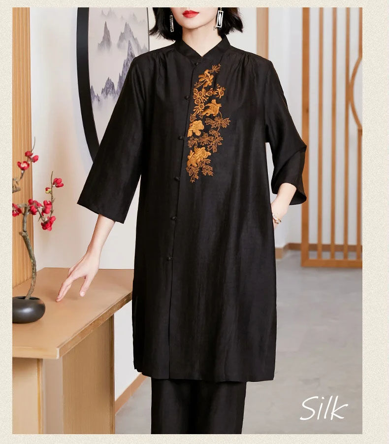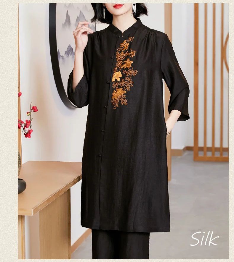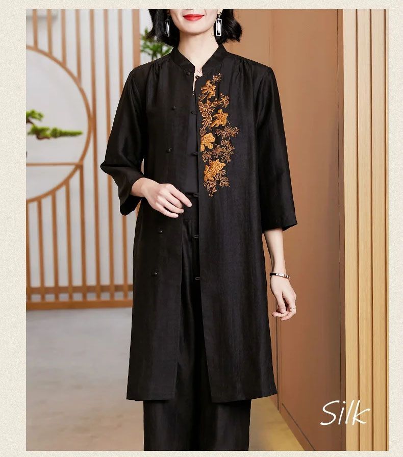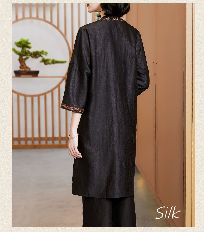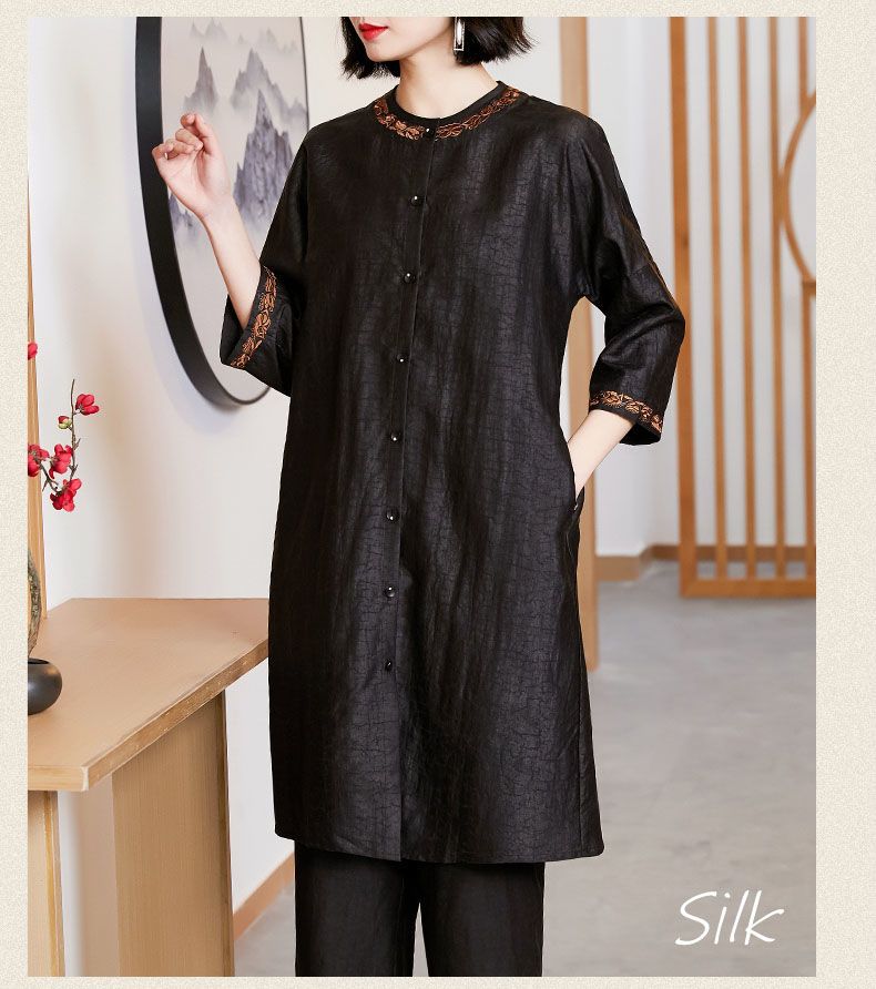 C08322 今年流行风衣外套女秋款外穿改良旗袍妈妈秋装开衫黑色裙子