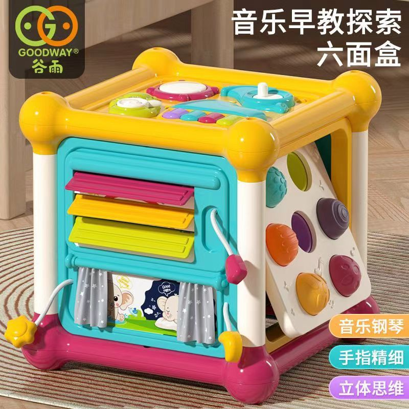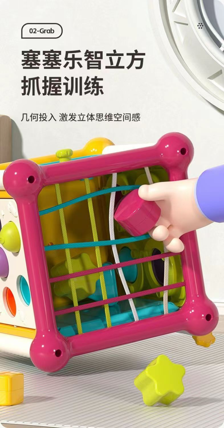【儿童塞塞乐智立方,手眼协调,抓握训练】谷雨蒙氏六面体婴儿玩具 0-1岁宝宝益智 早教6个月以上 儿童形状配对玩具-QQ