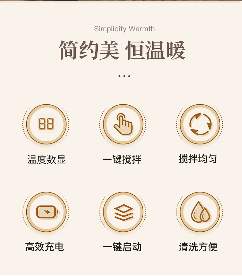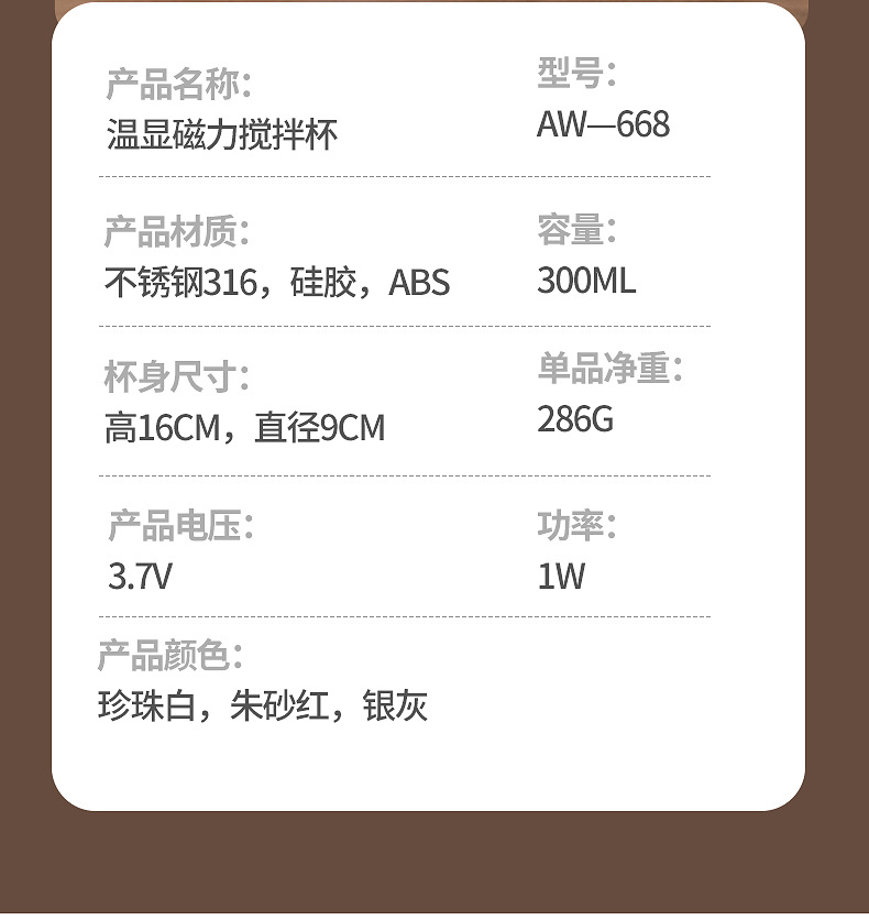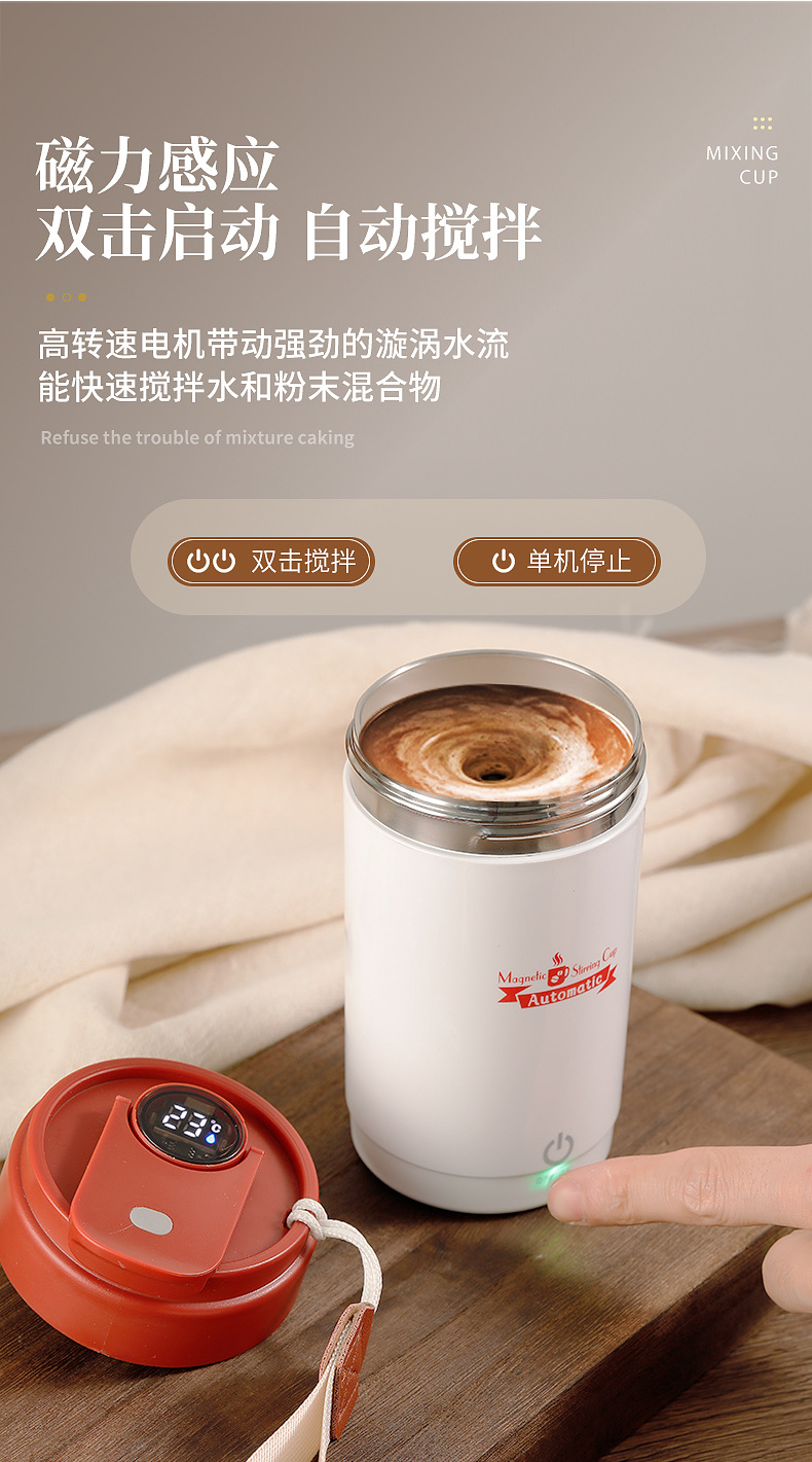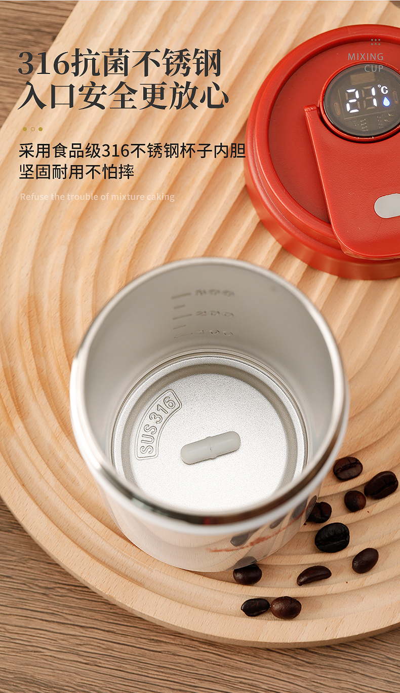 新款搅拌杯【轻松生活!一触可得】智能数显咖啡杯316便携磁力搅拌杯温度显示充电搅拌杯,磁力感应 双击启动自动搅拌。ry